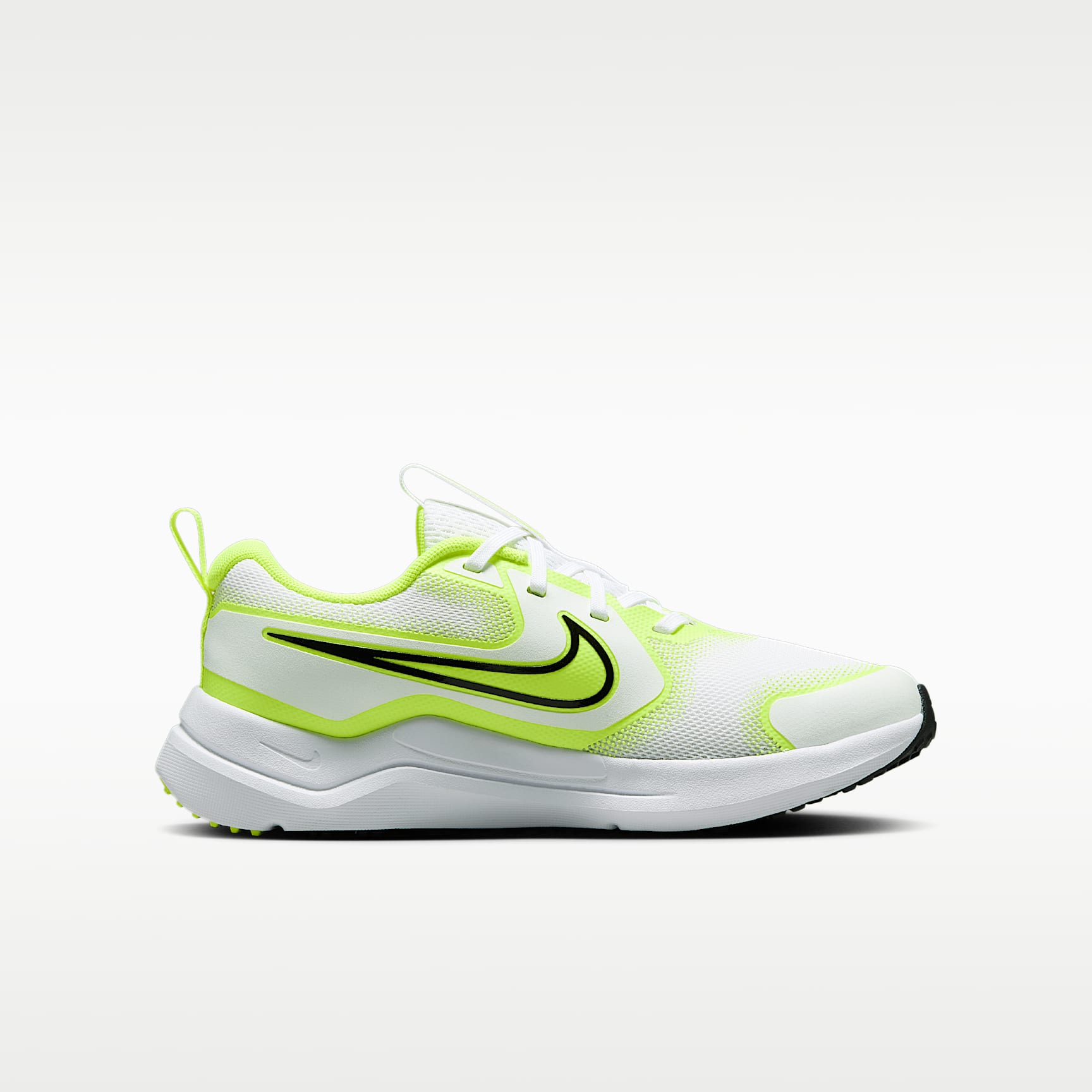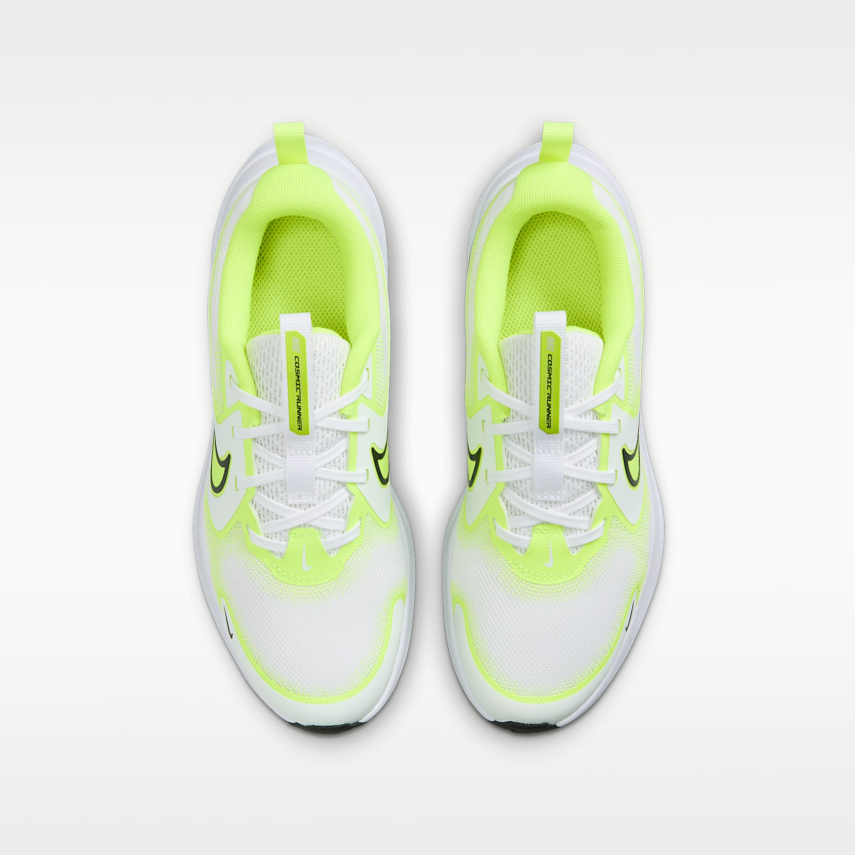 The world is your racetrack and slowing down isn't in your vocabulary. Loaded with stable cushioning and durability, the Nike Cosmic Runner helps support your every stride, so you can leave the competition in the dust. Breathability meets durability Lightweight mesh in the upper helps keep your feet cool. We reinforced the toes, sides and heels for added durability. Cushioning that keeps up Springy foam helps cushion your every stride, giving you the soft and supportive feel you need to go the distance. Ready, set, run Durable two-part rubber outsole gives you the grip you need to confidently run on multiple surfaces. Product details * Classic laces * Pull tabs on the tongue and heel