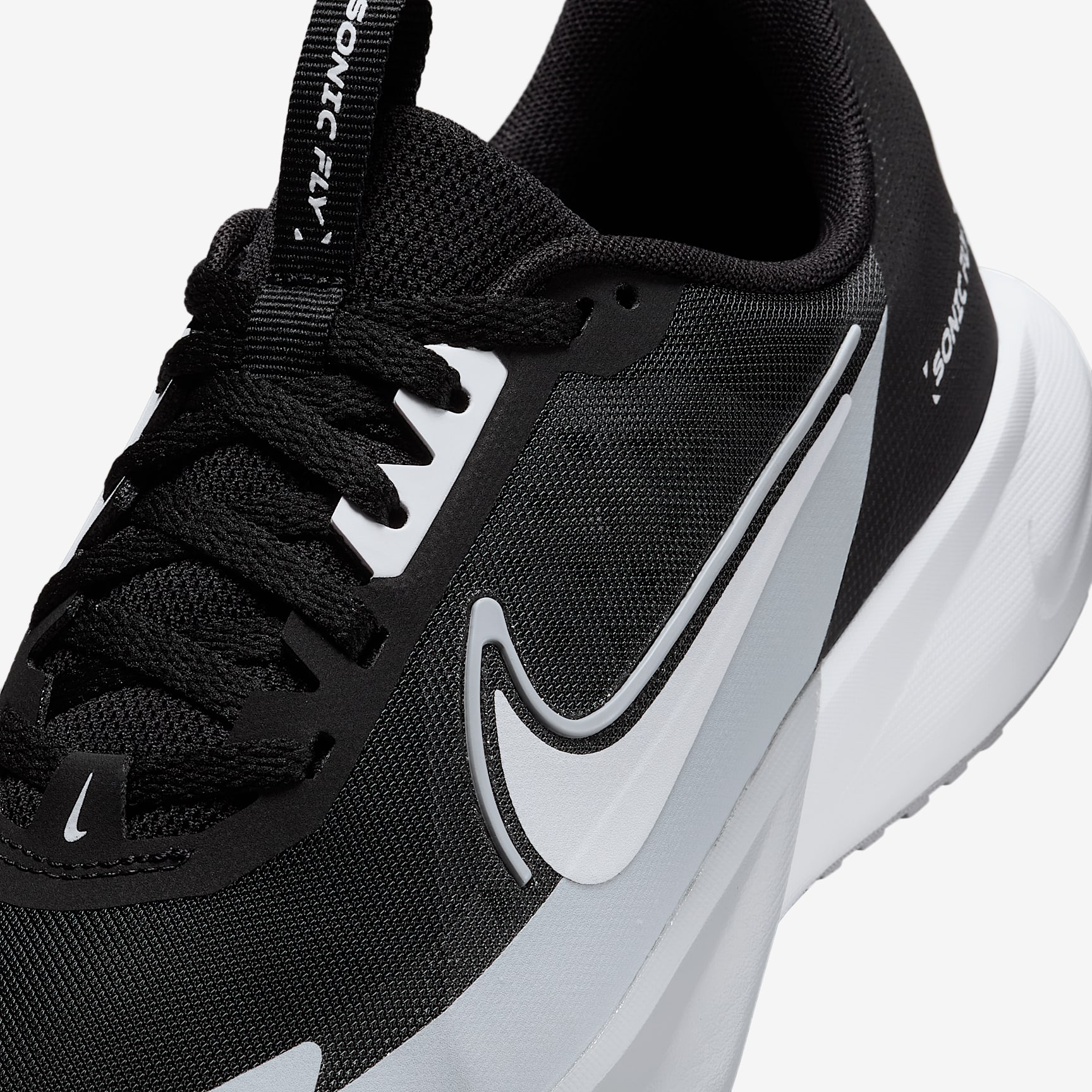 Why run when you can fly? Designed for record-breakers in the making, the Nike Sonic Fly pairs a lightweight design with soft, springy foam that helps add energy to every stride. Responsive cushioning We packed the midsole with soft and springy foam that absorbs impact and adds energy to every stride you take. Lightweight but durable Less weight means more speed. Mesh throughout the upper helps keep these shoes lightweight and breathable. We reinforced the toe and sides for added durability. Support you can feel Bands at the side of your feet work with the laces to add stability and a secure feel. Traction that keeps up The rubber outsole with a Waffle-inspired tread pattern helps provide durable traction. Product details * Classic laces * Pull tab on tongue