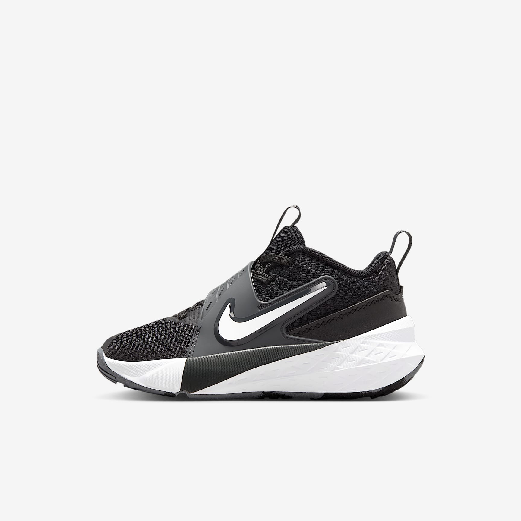 The Nike Team Hustle D is made for kids who love to hoop. Stretchy elastic laces and a strap closure make it easy for kids to secure their fit. Underfoot, plush foam and a durable rubber outsole give them the cushioning and grip they need to confidently play on outdoor courts. Easy to Secure Stretchy elastic laces pair with a hook-and-loop strap to help give kids a secure, contained fit. We added oversized loops to the tongue and heel to help make these easy to pull on. Blacktop Ready A flexible, full-length rubber outsole offers the durability and grip kids need to bring their best on outdoor courts and playgrounds. Plus, soft foam in the midsole cushions every step and jump they take. Keep Cool Breathable mesh in the upper helps keep little feet from overheating. Product Details * Elastic laces * Pull tabs on tongue and heel