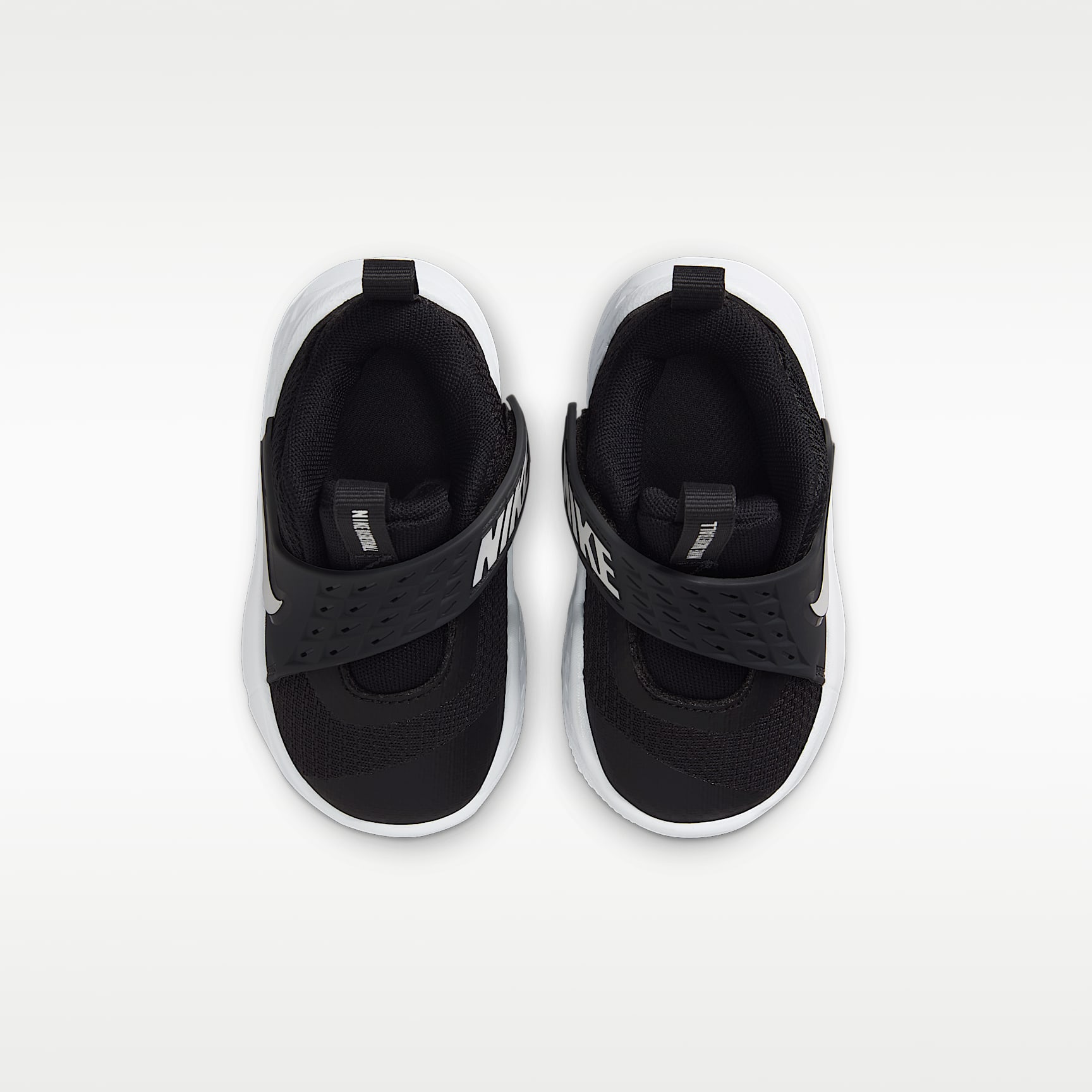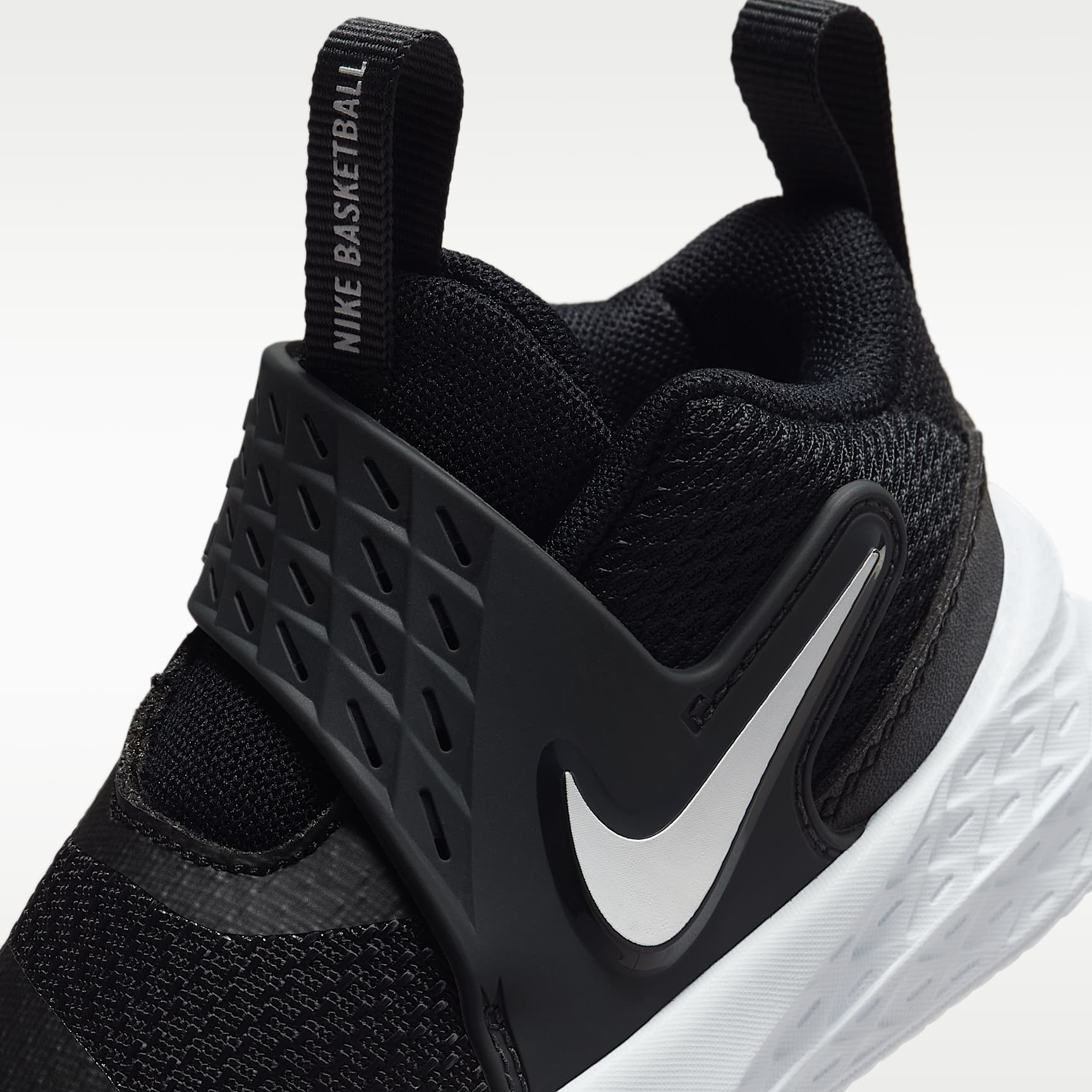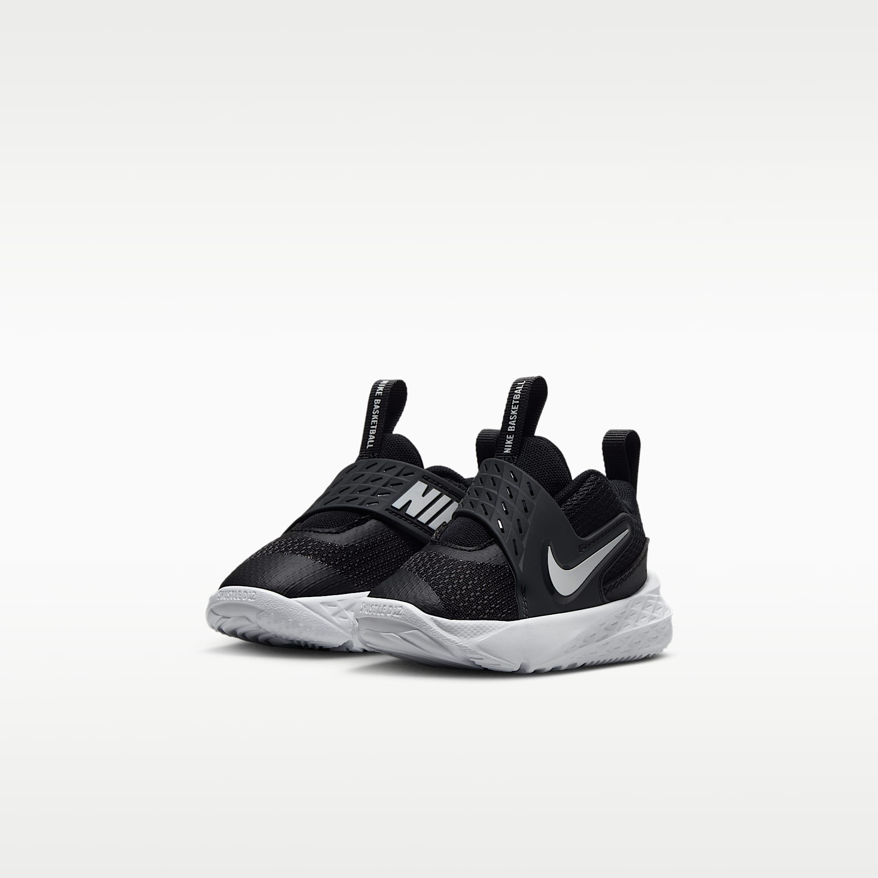 This Nike Team Hustle D is made for future hoopers. A strap closure system makes it easy to secure their fit fast. Underfoot, soft foam gives kids the cushioning they need to find their footing. Easy to Secure A wide opening, oversized pull tabs and a hook-and-loop strap help make it easy to slip these on little feet. Early Steps Sturdy foam outsole helps provide the flexibility and traction little feet need as they find their footing. Stay Cool Breathable mesh in the upper helps keep little feet from overheating.
