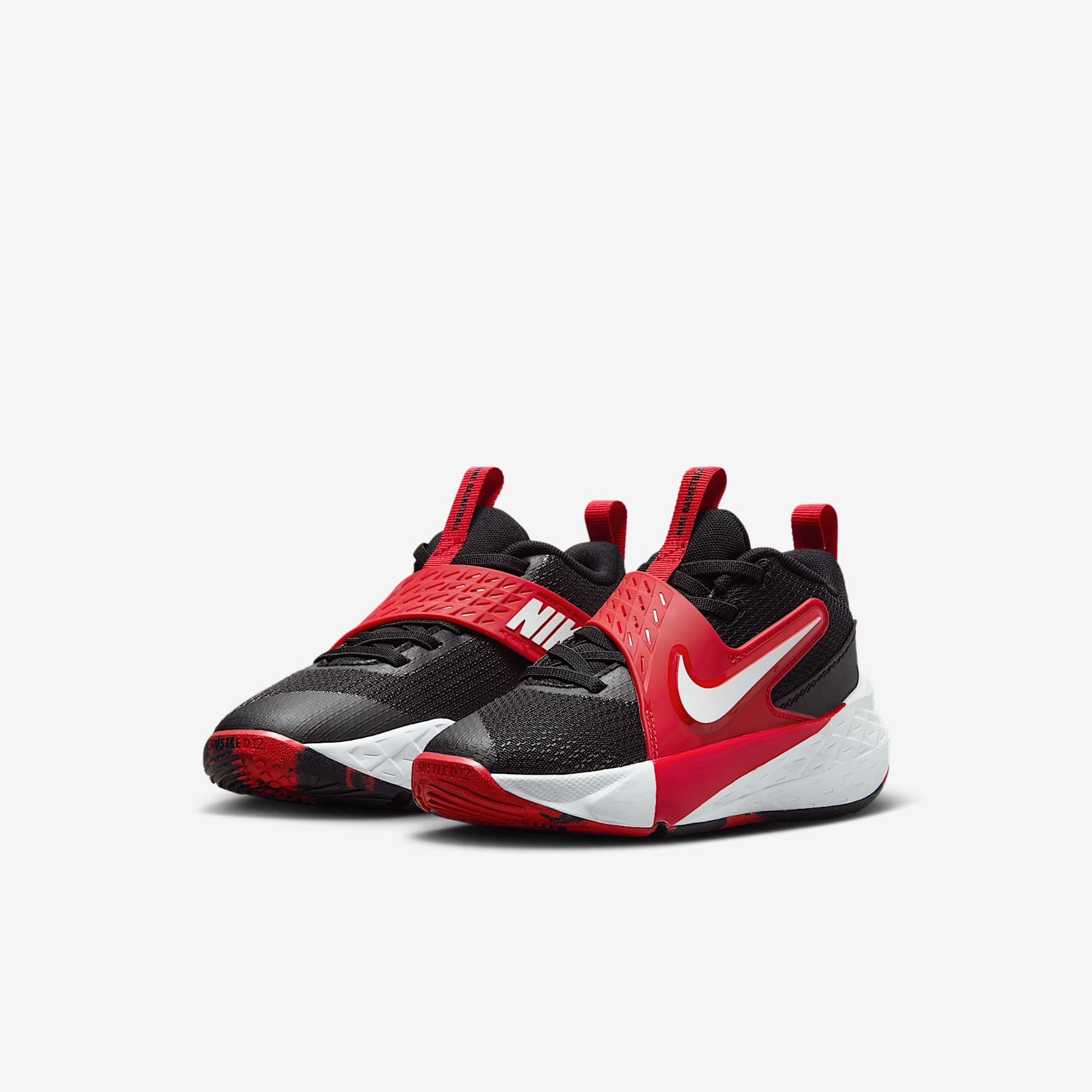 The Nike Team Hustle D is made for kids who love to hoop. Stretchy elastic laces and a strap closure make it easy for kids to secure their fit. Underfoot, plush foam and a durable rubber outsole give them the cushioning and grip they need to confidently play on outdoor courts. Easy to Secure Stretchy elastic laces pair with a hook-and-loop strap to help give kids a secure, contained fit. We added oversized loops to the tongue and heel to help make these easy to pull on. Blacktop Ready A flexible, full-length rubber outsole offers the durability and grip kids need to bring their best on outdoor courts and playgrounds. Plus, soft foam in the midsole cushions every step and jump they take. Keep Cool Breathable mesh in the upper helps keep little feet from overheating. Product Details * Elastic laces * Pull tabs on tongue and heel