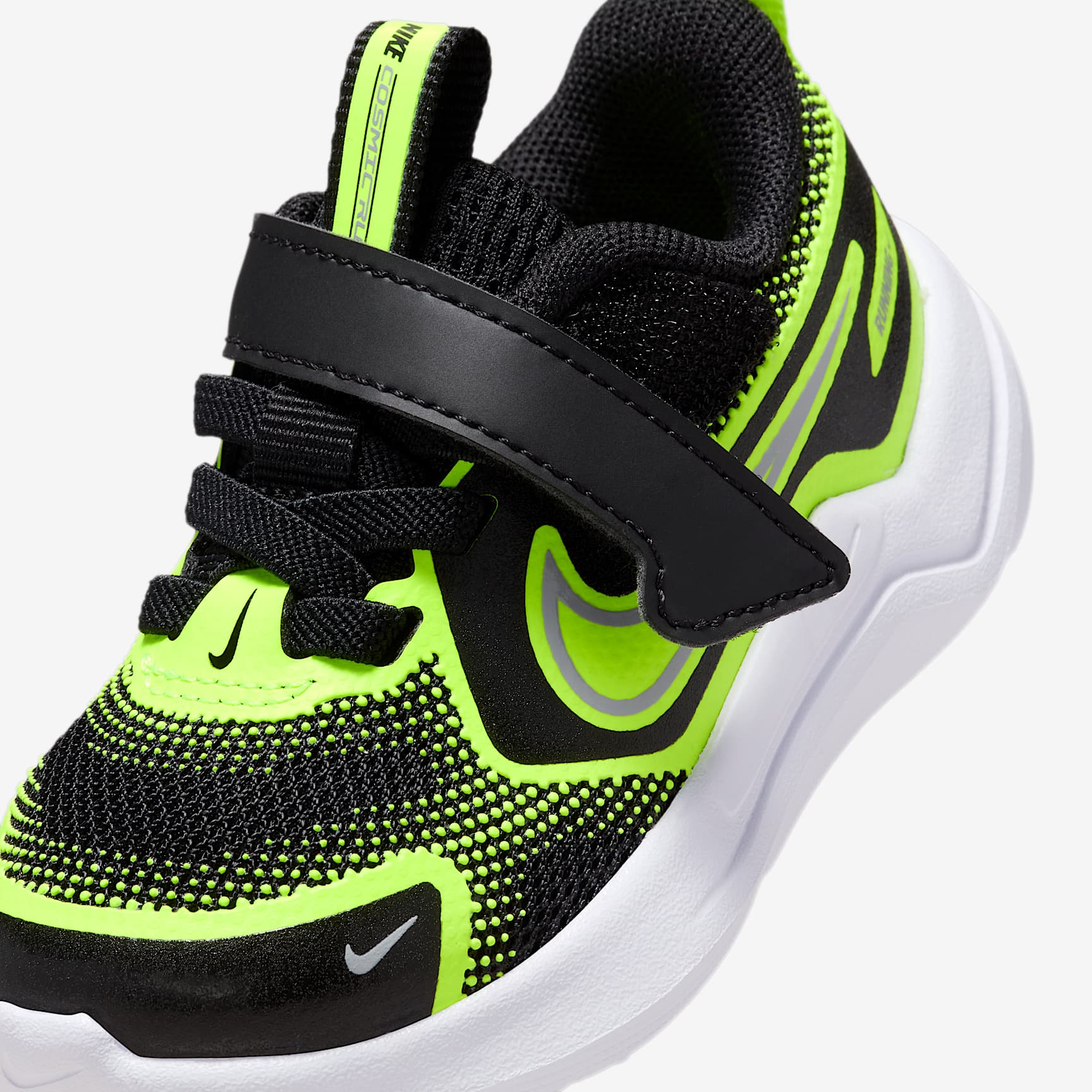 Meet the shoe built for kids who treat the world like their racetrack. Loaded with stable cushioning and durable features, the Nike Cosmic Runner helps support your little one's every step. Elastic laces and a hook-and-loop strap help make these easy to put on. Breathability Meets Durability Lightweight mesh in the upper helps keep little feet cool. We reinforced the toes, sides and heels for added durability. Cushioning That Keeps Up Springy foam helps cushion every step, giving little ones the soft and supportive feel they need to go the distance. Ready, Set, Run! Durable outsole helps give little ones the grip they need to confidently run on multiple surfaces. Product Details * Elastic laces * Pull tabs on tongue and heel
