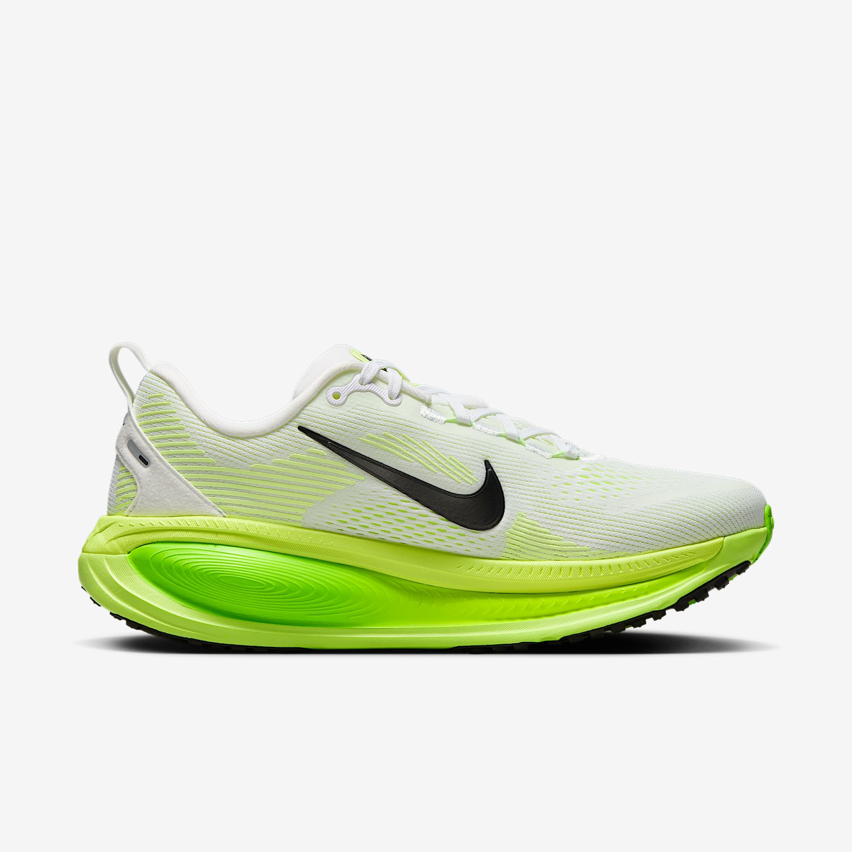 Maximum cushioning in the Vomero provides a comfortable ride for everyday runs. Our softest, most cushioned ride has lightweight ZoomX foam stacked on top of responsive ReactX foam in the midsole. Plus, a redesigned traction pattern offers a smooth heel-to-toe transition. Engineered Mesh Upper The upper is made of engineered mesh for soft breathability. Dual-Density Midsole Our dual-density midsole has ZoomX foam stacked on top of ReactX foam, 13% more responsive than previous React technology, for a comfortable ride. Pods Around Outsole We placed pods around the outsole to help enhance agility and smoother heel-to-toe transitions. Plush Padding A plush tongue and lining give you a comfortably snug feel. What’s New? Newly stacked foam midsole with premium ZoomX on top of ReactX foam amplifies cushioned comfort. Product Details * Weight: Approx. 263g/9.3oz (Women’s US 8) * Heel-to-toe drop: 10mm * MR-10 Last - Our best, most consistent fit * Not intended for use as Personal Protective Equipment (PPE)