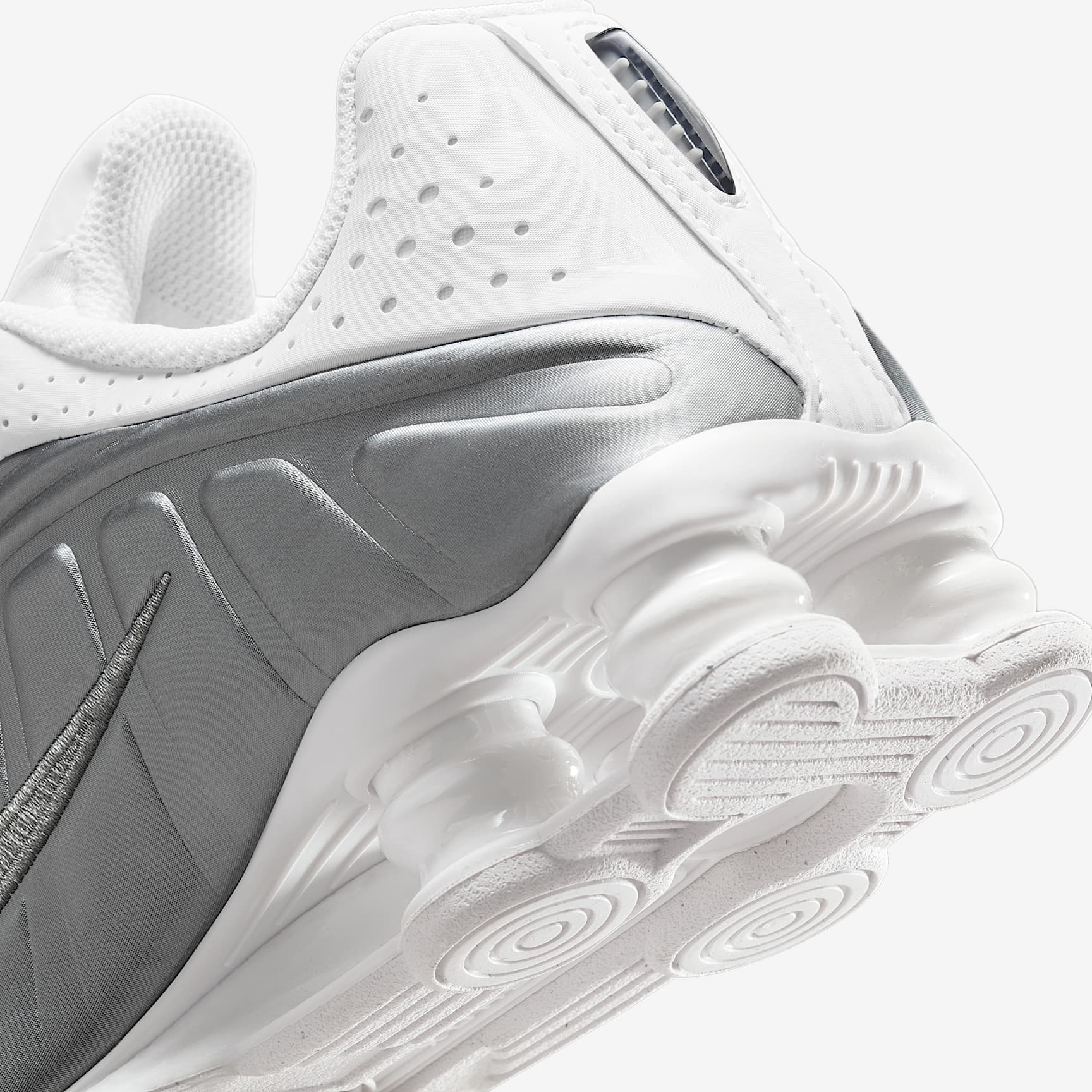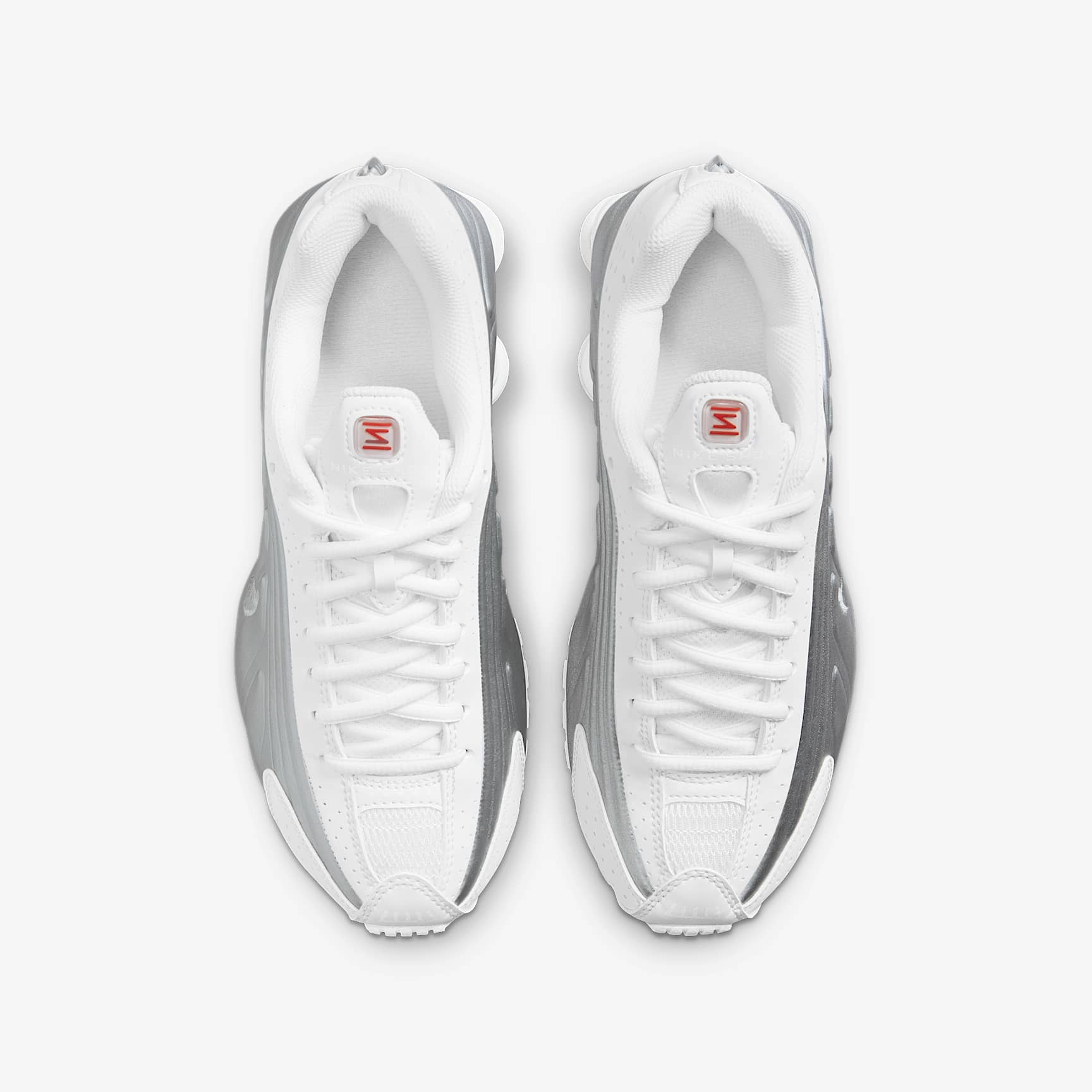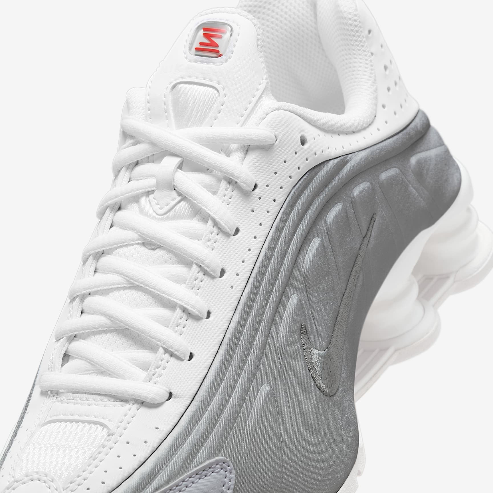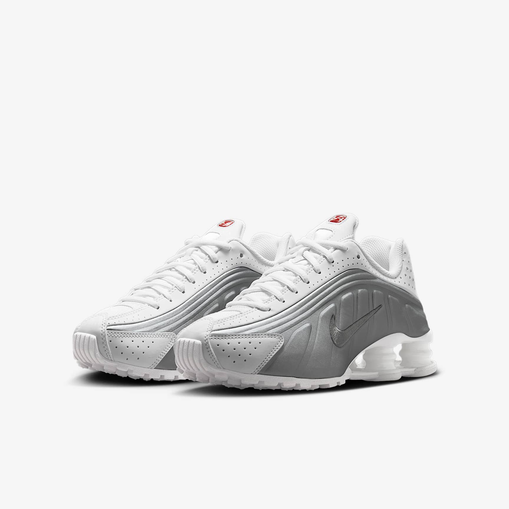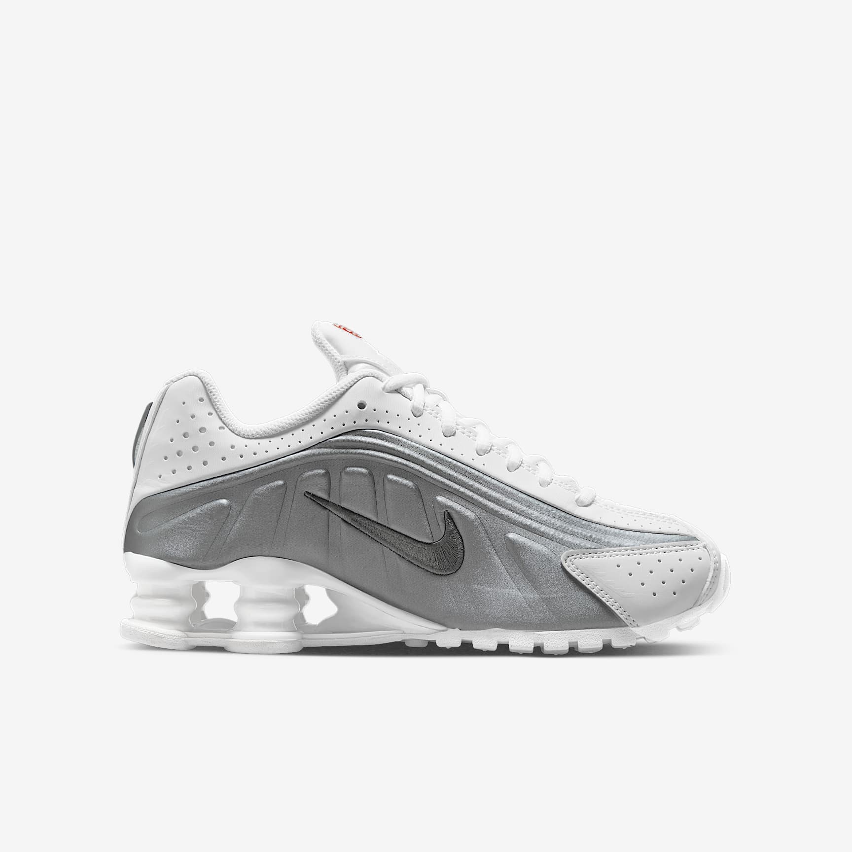 A recrafted version of the 2001 icon, this Nike Shox R4 replicates the original with its synthetic and textile upper, design lines and laser perforations. Nike Shox cushioning underfoot helps provide optimal comfort and a performance-inspired look. Benefits * Originally designed to support runners, Nike Shox columns help provide responsive cushioning. * Perforations in the synthetic leather help keep your foot cool. * Modified, circular Waffle outsole gives traction. Product Details * Classic laces * Rubber toe tip * Not intended for use as Personal Protective Equipment (PPE)