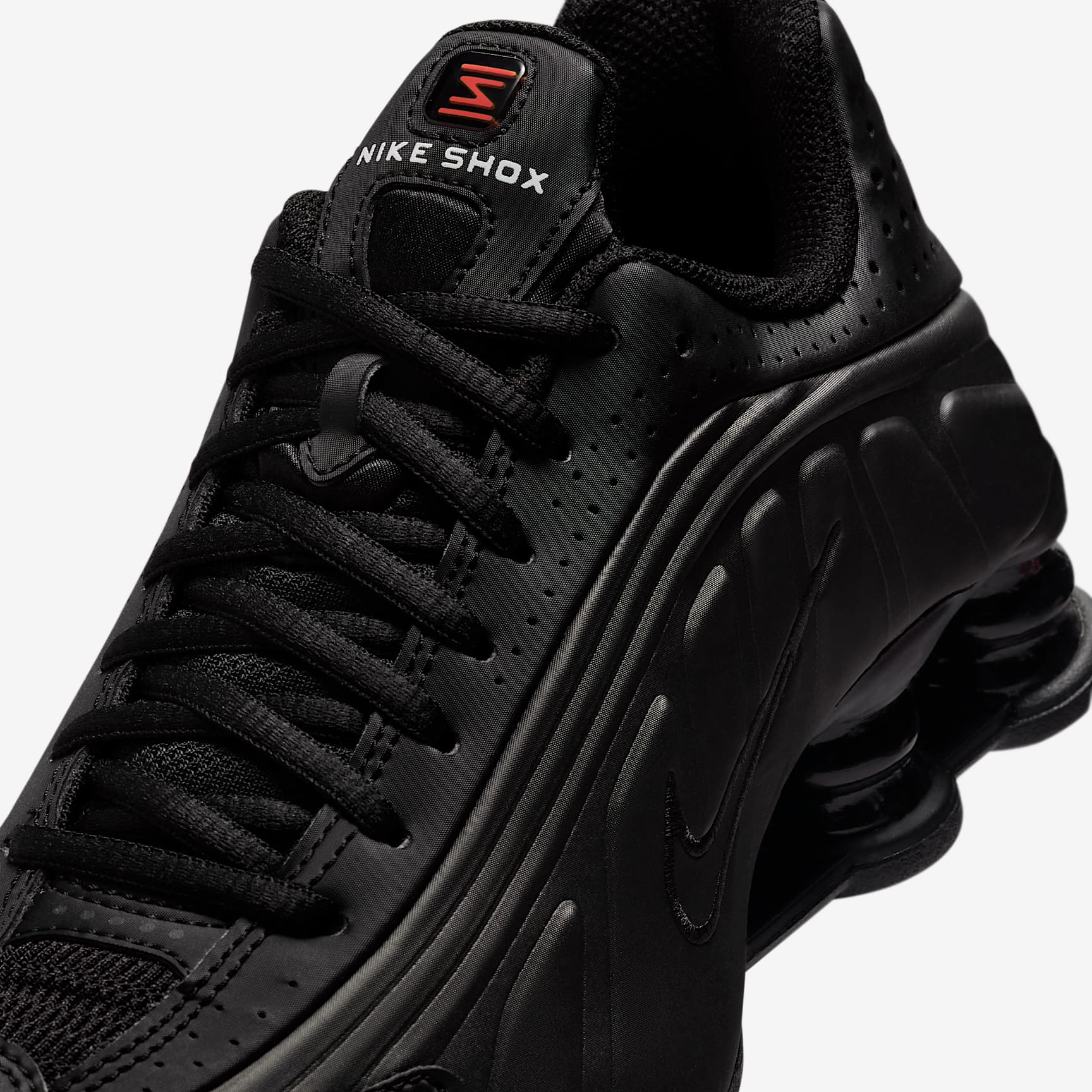 A recrafted version of the 2001 icon, this Nike Shox R4 replicates the original with its synthetic and textile upper, design lines and laser perforations. Nike Shox cushioning underfoot helps provide optimal comfort and a performance-inspired look. Benefits * Originally designed to support runners, the Nike Shox columns help provide responsive cushioning. * Perforations in the synthetic leather help keep your foot cool. * The modified, circular Waffle outsole gives traction. Product details * Classic laces * Rubber toe tip * Not intended for use as personal protective equipment (PPE)