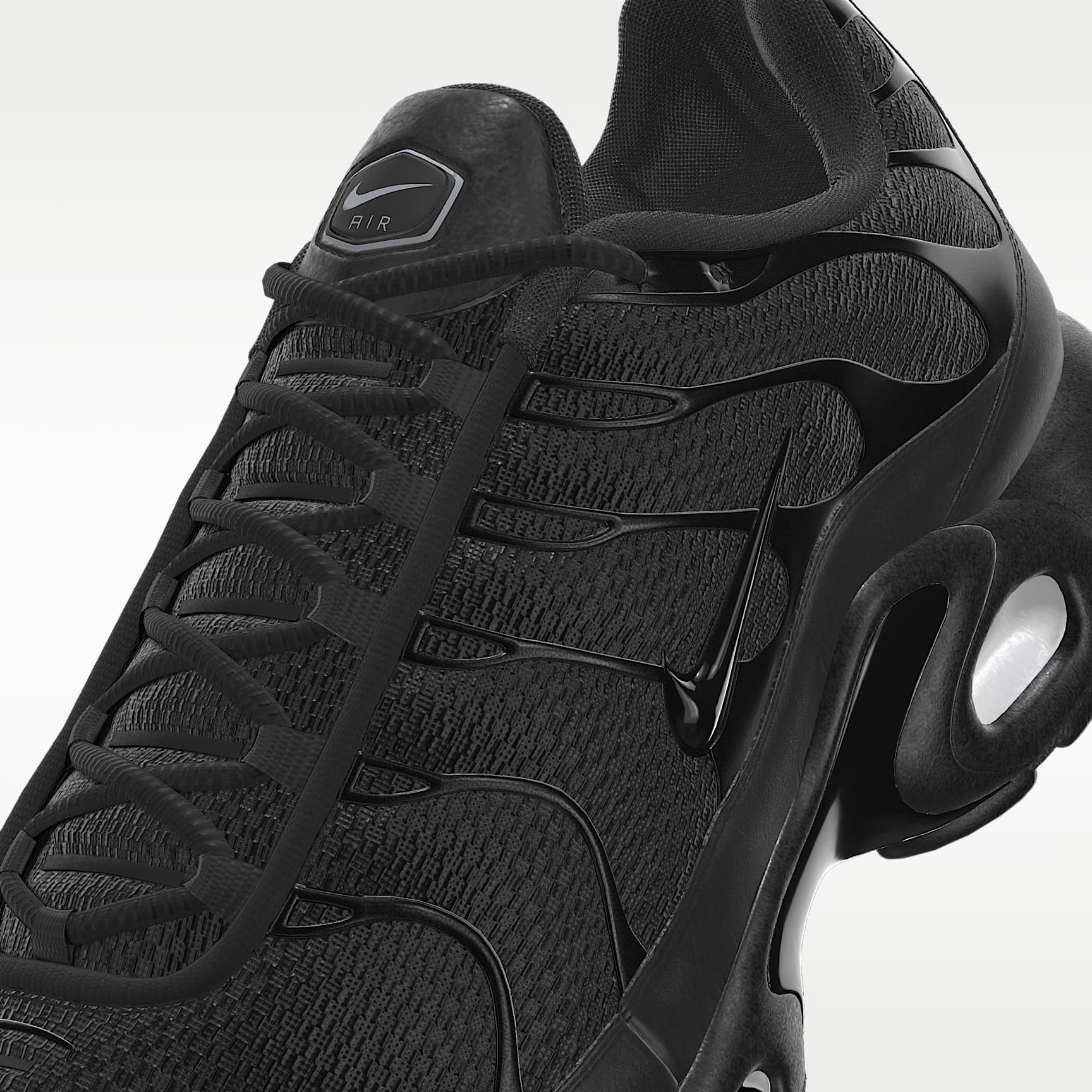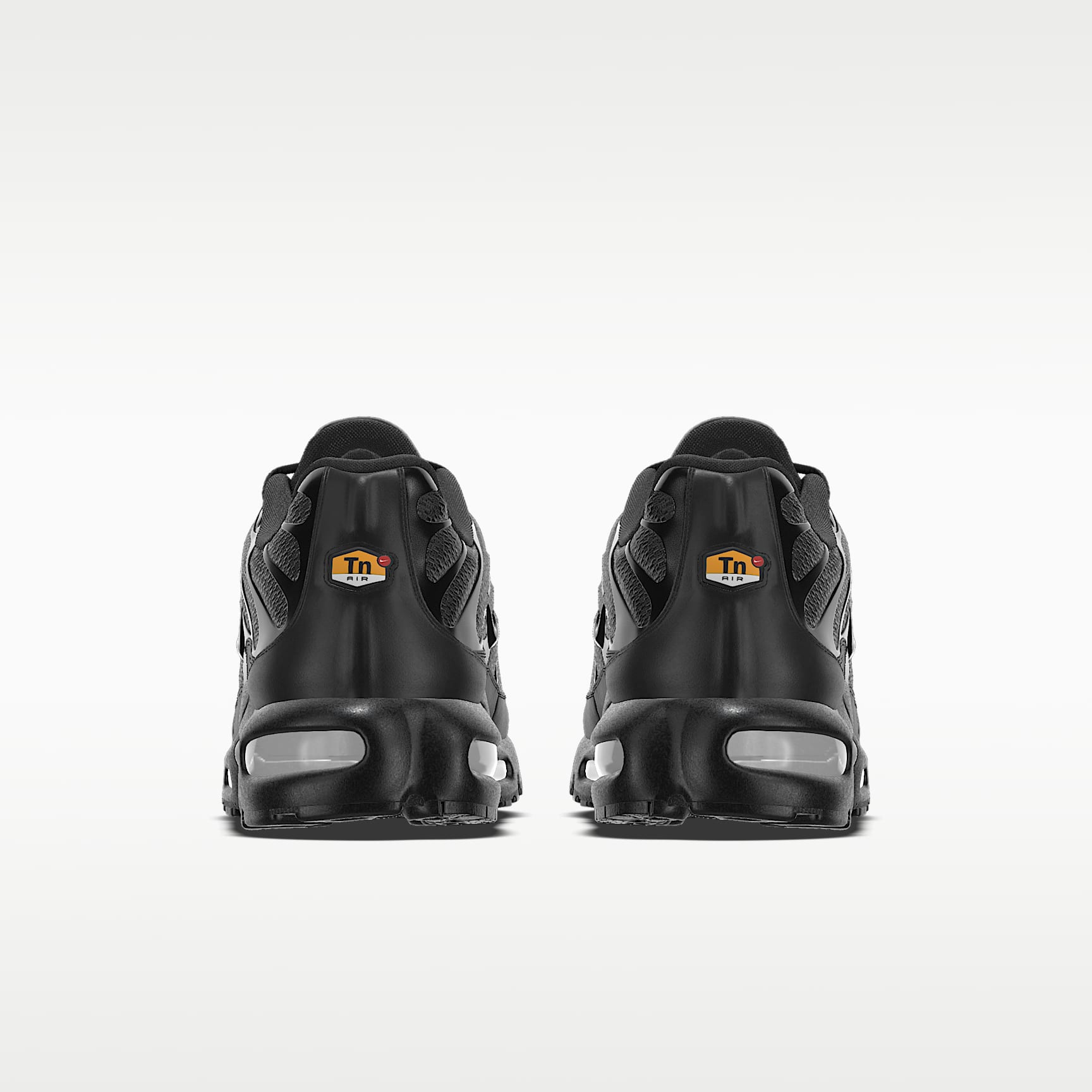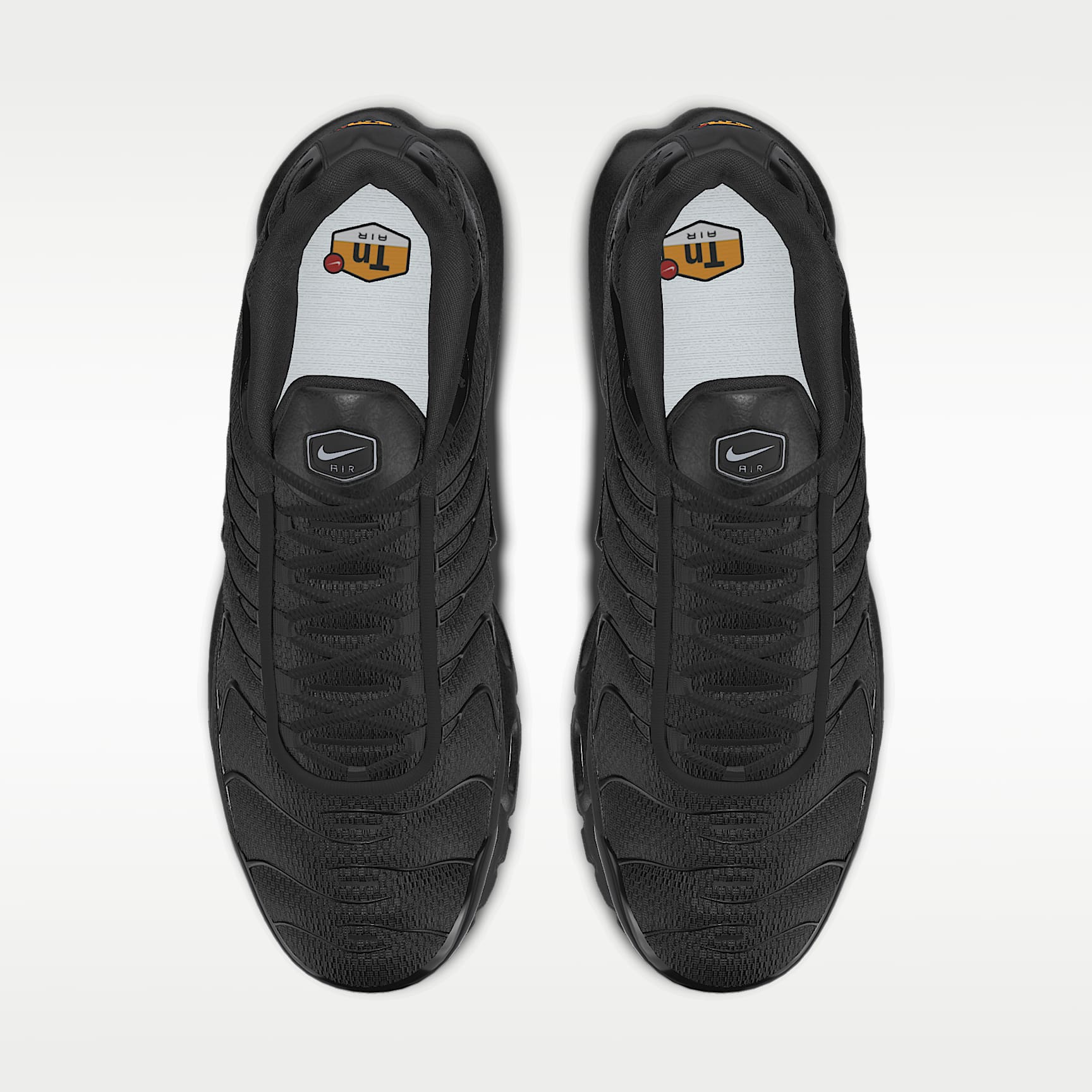 This tried-and-tested shoe is back in a variety of neutrals for versatile style. Add a bit of shine with metallic mesh on the upper and iridescent options on the plastic cage. After choosing between 7 different tongue labels, finish it off with personal text on each Air unit. The Air Max Plus is ready for your special touch. What's Your Base? Choose between smooth leather and metallic mesh for a look that's truly you. Colour-up Luxe neutrals, sporty classics or all of the above. What will you create? Express yourself Your initials? A nickname? Or something else that's so you. Get personal with up to 4 characters on each Air unit. Plus, your name is on the box. More benefits * Synthetic upper with lightweight mesh is breathable and durable. * Plastic cage and midfoot arch create a supportive feel. * Originally designed for performance running, Nike Air units provide lightweight cushioning that lasts. * Rubber outsole gives you excellent traction. Nike By You Details * Our Members are one of a kind, and your shoes are too. Each pair is proudly made one at a time, by hand. Good things are worth the wait. * With our 3D builder, watch your creation come alive as you experiment with all kinds of design choices. Nike Air Max Origins Revolutionary Air technology first made its way into Nike footwear in 1978. In 1987, the Air Max 1 debuted with visible Air technology in its heel, allowing fans more than just the feel of Air cushioning—suddenly they could see it. Since then, next-generation Air Max shoes have become a hit with athletes and collectors by offering striking colour combinations and reliable, lightweight cushioning.