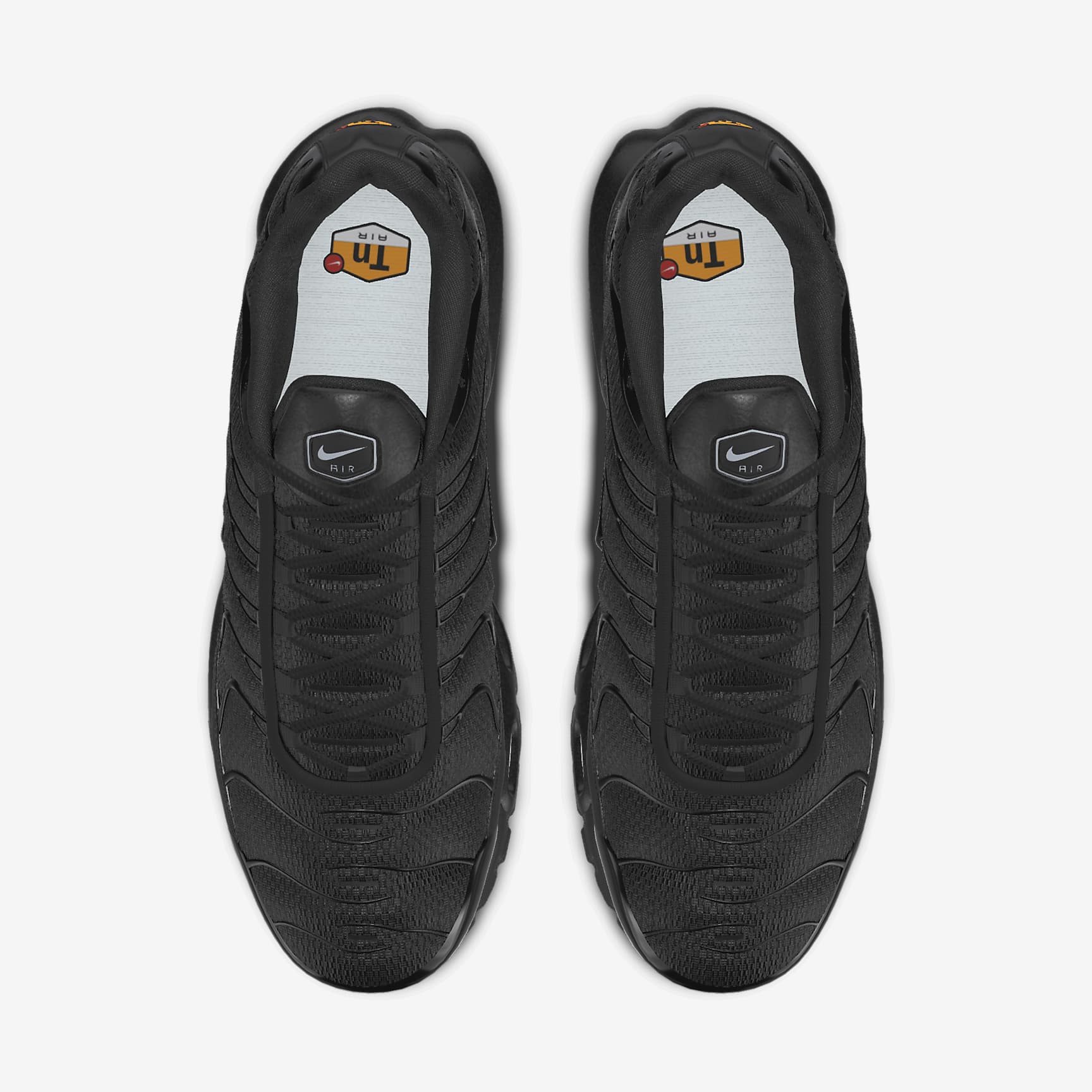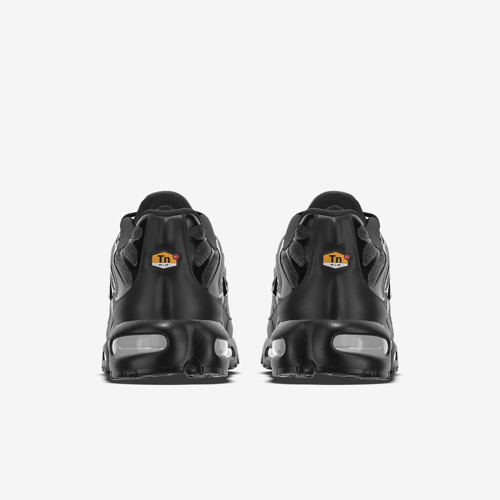 This tried-and-true shoe is back in a variety of neutrals for versatile style. Add a bit of shine with metallic mesh on the upper and iridescent options on the plastic cage. After choosing between 7 different tongue labels, finish it off with personal text on each Air unit. The Air Max Plus is ready for your special touch. What's Your Base? Choose between smooth leather and metallic mesh for a look that's truly you. Color Up Luxe neutrals, sporty classics or all of the above. What will you create? Express Yourself Your initials? A nickname? Or something else that's so you. Get personal with up to 4 characters on each Air unit. Plus, your name is on the box. More Benefits * Synthetic upper with lightweight mesh is breathable and durable. * Plastic cage and midfoot arch create a supportive feel. * Originally designed for performance running, Nike Air units provide lightweight cushioning that lasts. * Rubber outsole gives you excellent traction. Nike By You Details * Our members are one of a kind, and your shoes are, too. Each pair is proudly made one at a time, by hand. Good things are worth the wait. * With our 3-D builder, watch your creation come alive as you experiment with all kinds of design choices. Nike Air Max Origins Revolutionary Air technology first made its way into Nike footwear in 1978. In 1987, the Air Max 1 debuted with visible Air technology in its heel, allowing fans more than just the feel of Air cushioning—suddenly they could see it. Since then, next-generation Air Max shoes have become a hit with athletes and collectors by offering striking color combinations and reliable, lightweight cushioning.