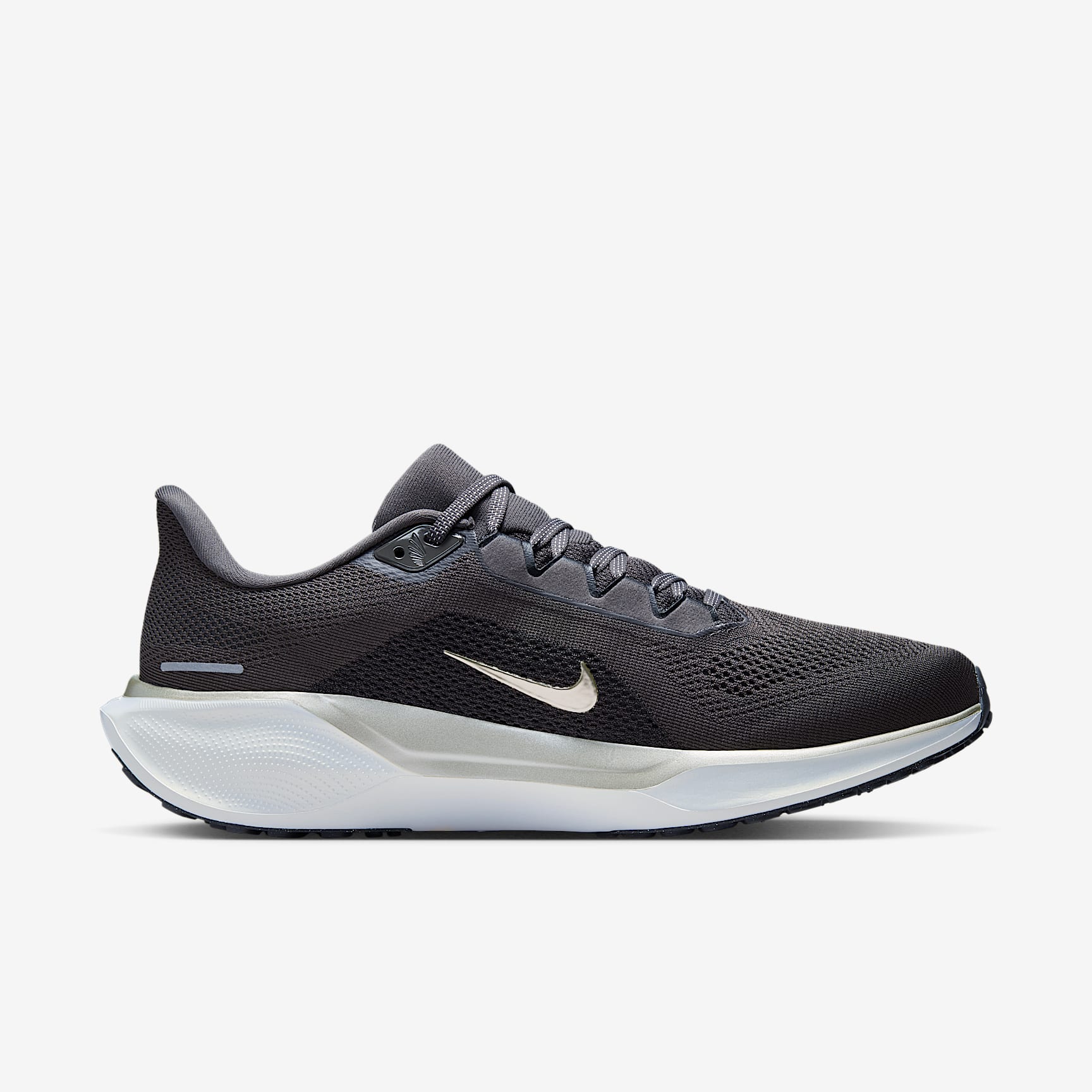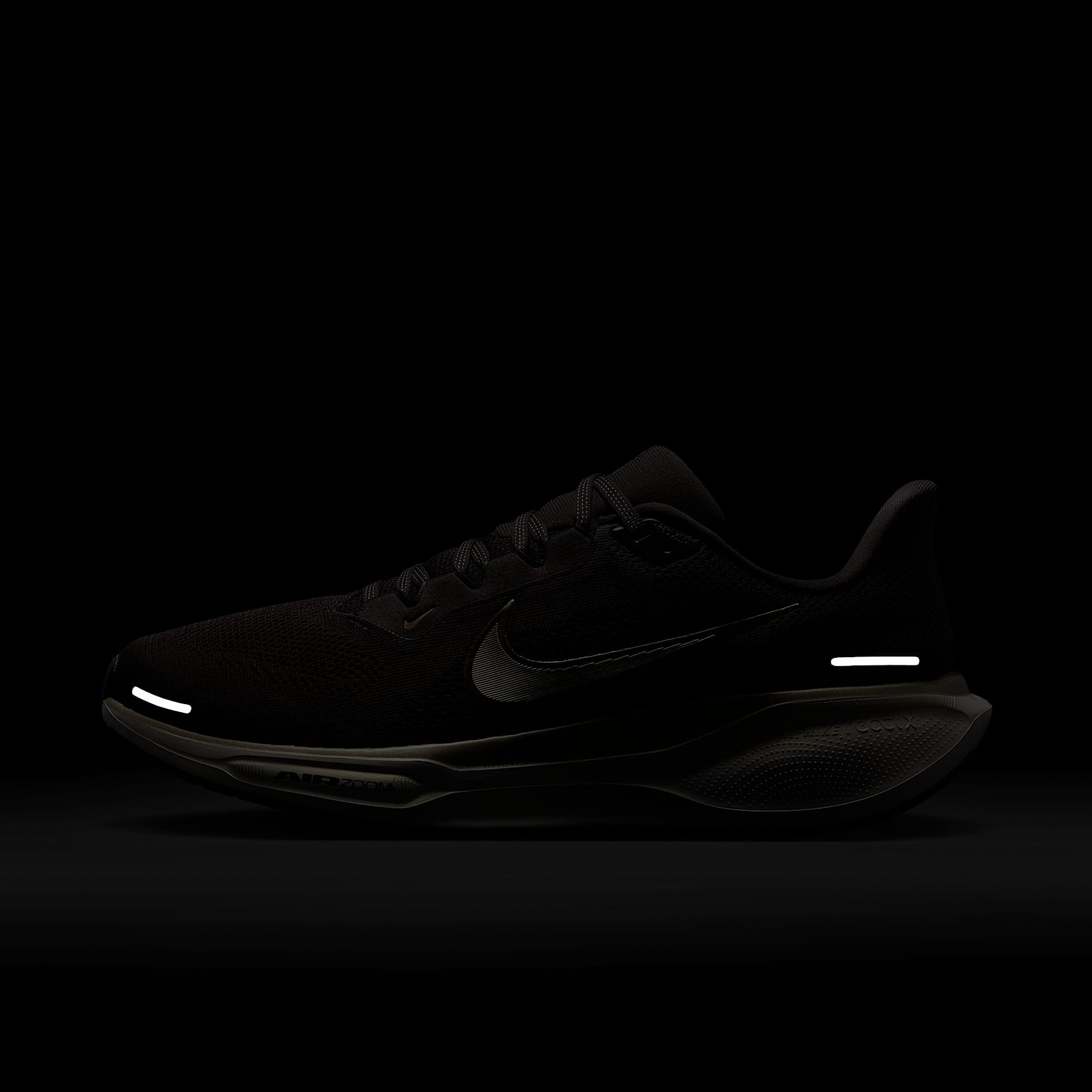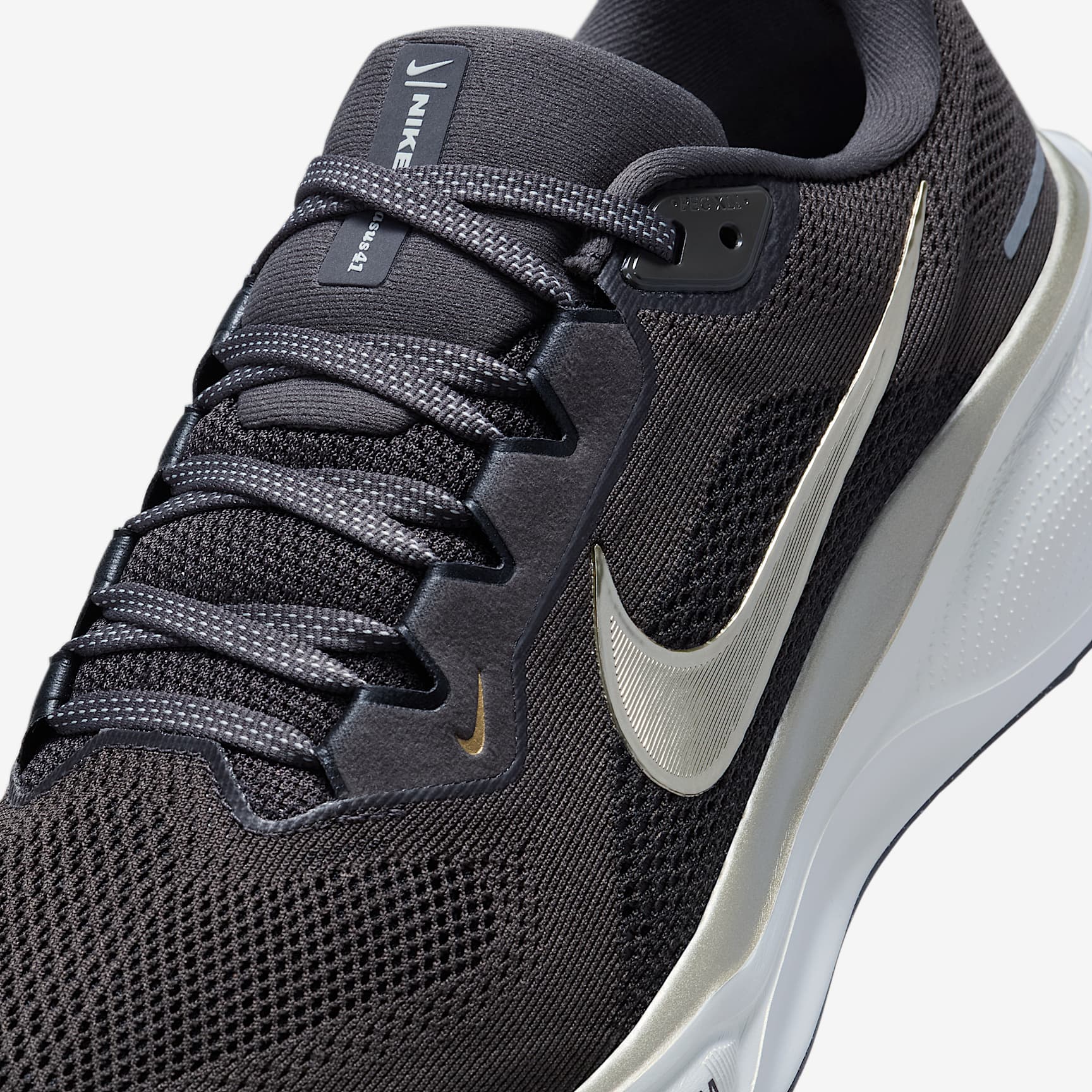 Responsive cushioning in the Pegasus provides an energised ride for everyday road running. Experience lighter-weight energy return with dual Air Zoom units and a ReactX foam midsole. Plus, improved engineered mesh on the upper decreases weight and increases breathability. This version focuses on what matters most for Jakob Ingebrigtsen: finishing first. Behind the Design Jakob's favourite colours and repeating lines nod to his mental approach. His tattoos and gold rings inspired details that'll shine when he goes into high gear. The Nordic stars on the insoles nod to his homeland. Springy cushioning We paired Nike ReactX foam with two Air Zoom units (one in the forefoot and one in the heel) to give you a bouncy, springy sensation and an energised feel at toe-off. Waffle-inspired traction The signature waffle-inspired rubber outsole provides traction and flexibility. Plush padding A plush collar, tongue and sockliner for a secure and comfortable fit What's new? * The ReactX foam midsole is 13% more responsive than previous React technology. * The engineered mesh upper is lighter and more breathable than the Pegasus 40. Product details * Weight: approx. 297g approx. (men's UK 9) * Heel-to-toe drop: 10mm * MR-10 last—our best, most consistent fit (same as Pegasus 40) * Not intended for use as personal protective equipment (PPE)