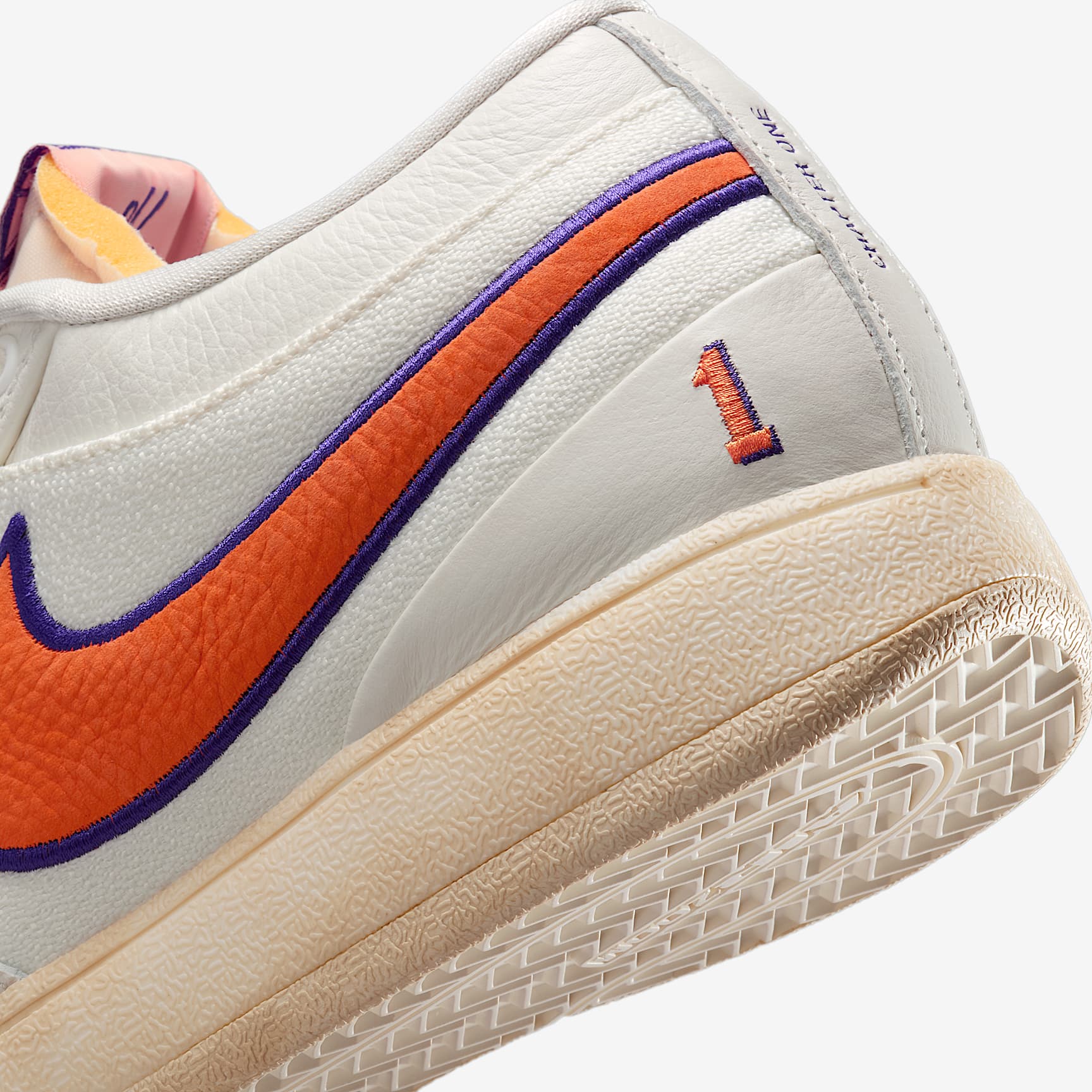 Play-off master classes, 70-pointers, game-winners. Book has become one of the game's greats, all while proudly wearing the orange, purple and white. This Book 1 celebrates his decade run in the Valley of the Sun with a leather upper and orange Swoosh logo. The aged midsole speaks to the 10 years since his arrival, with his No. 1 on the heel. To top it off, the tongue label inspired by his time at the Phoenix Suns completes the vintage vibe. Book smooth The outside is pure Book, with a workwear-inspired upper that adds durability, while genuine leather across the forefoot provides more reinforcement and a familiar, plush, broken-in feel out of the box. Stop and go A top-loaded Air Zoom unit in the heel provides a measure of responsive speed when taking off in the open floor and coming to sudden halts. Plant and pivot A top-loaded midfoot strong plastic plate helps keep your foot stable when making sudden movements like sharp plants, Book-like pivots and jabs in the post and opportunistic cuts. A strong plastic sidewall cage adds even more stability. Cut hard The multi-directional, herringbone-like pattern gives you sticky traction that's ideal for lateral cuts and quick changes in movement. Full-go foam The soft, responsive full-length foam can help you keep running and cutting in comfort.