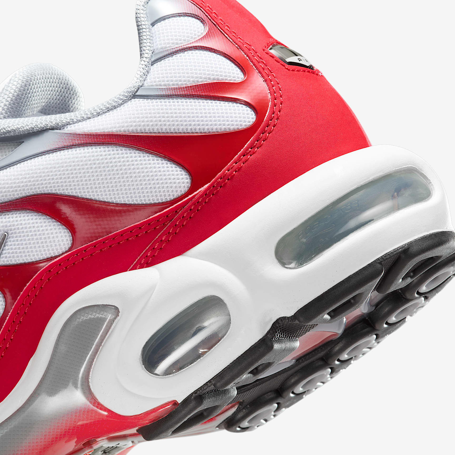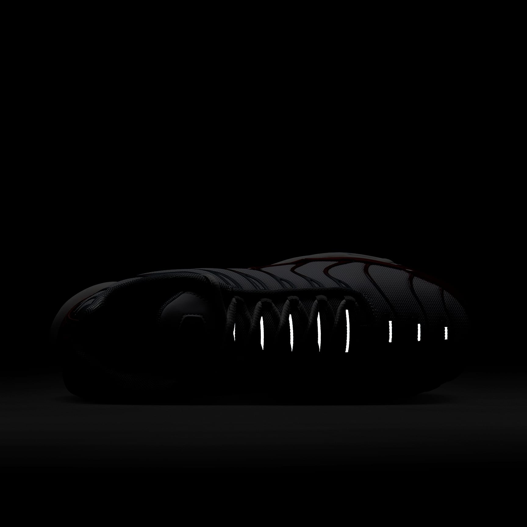 Let your attitude have the edge in the Air Max Plus. Its iconic caging adds heat to your look while airy mesh helps keep you cool. And the visible cushioning lets you celebrate your defiant style in comfort. Benefits * Mesh upper with synthetic leather accents is durable and breathable. * Midfoot arch band provides a supportive feel. * Originally designed for performance running, Max Air units provide lightweight cushioning that lasts. * Rubber outsole gives you durable traction. Product details * Foam midsole * Reflective design details * Not intended for use as personal protective equipment (PPE)