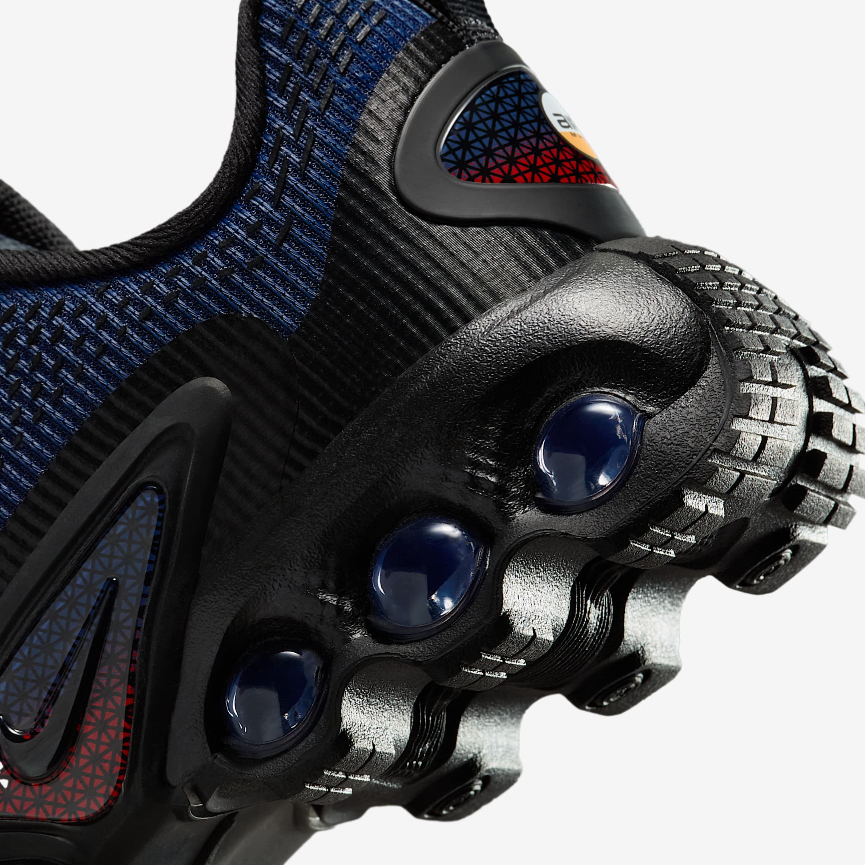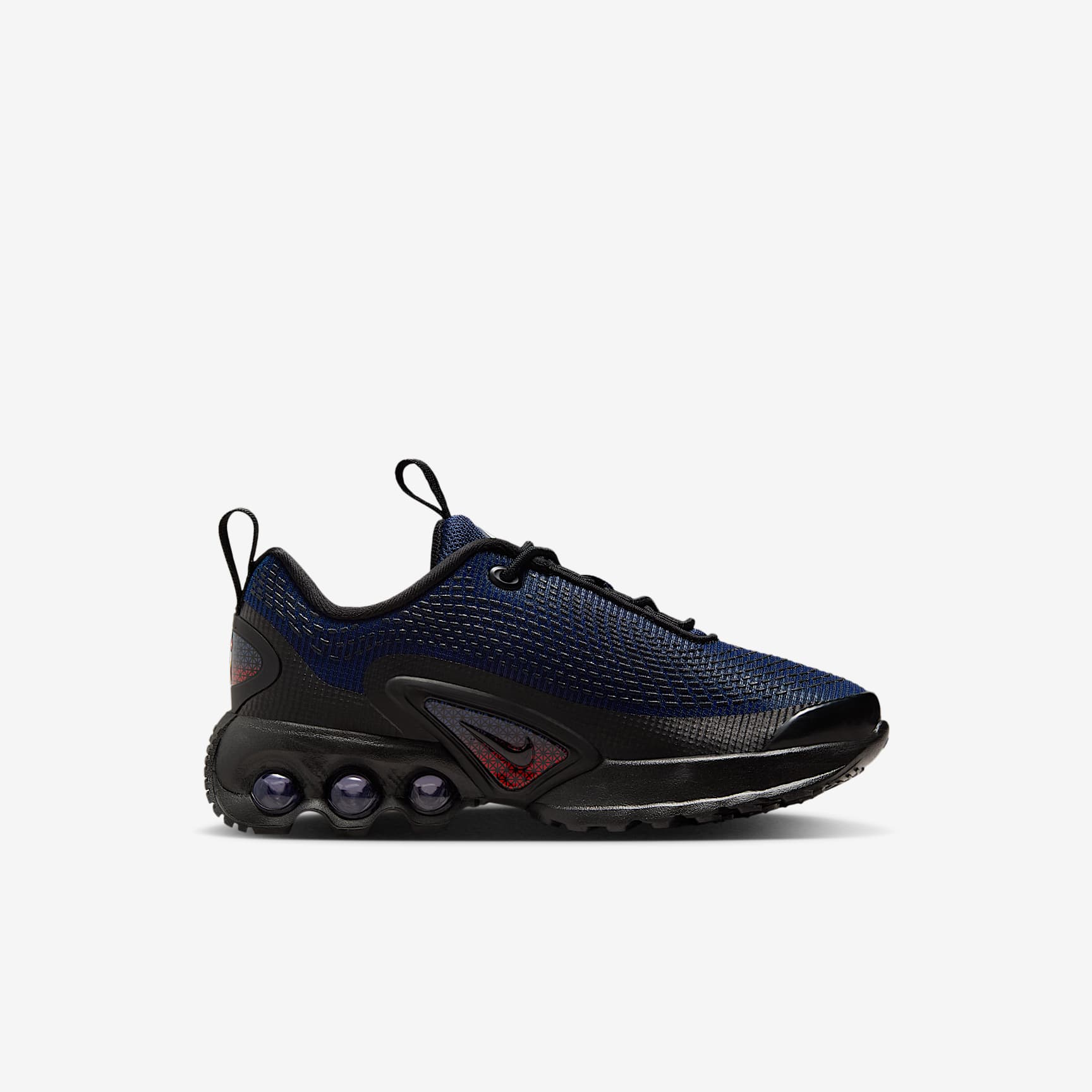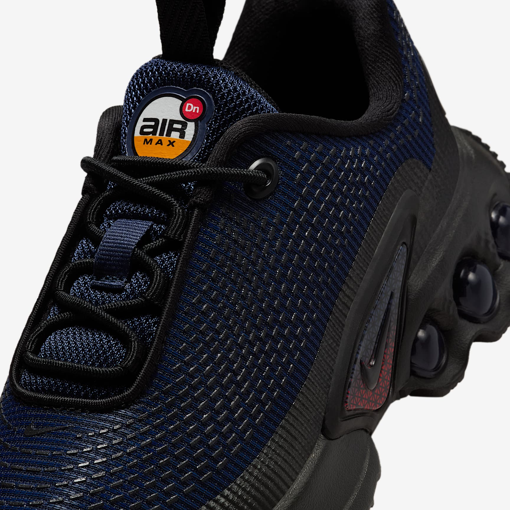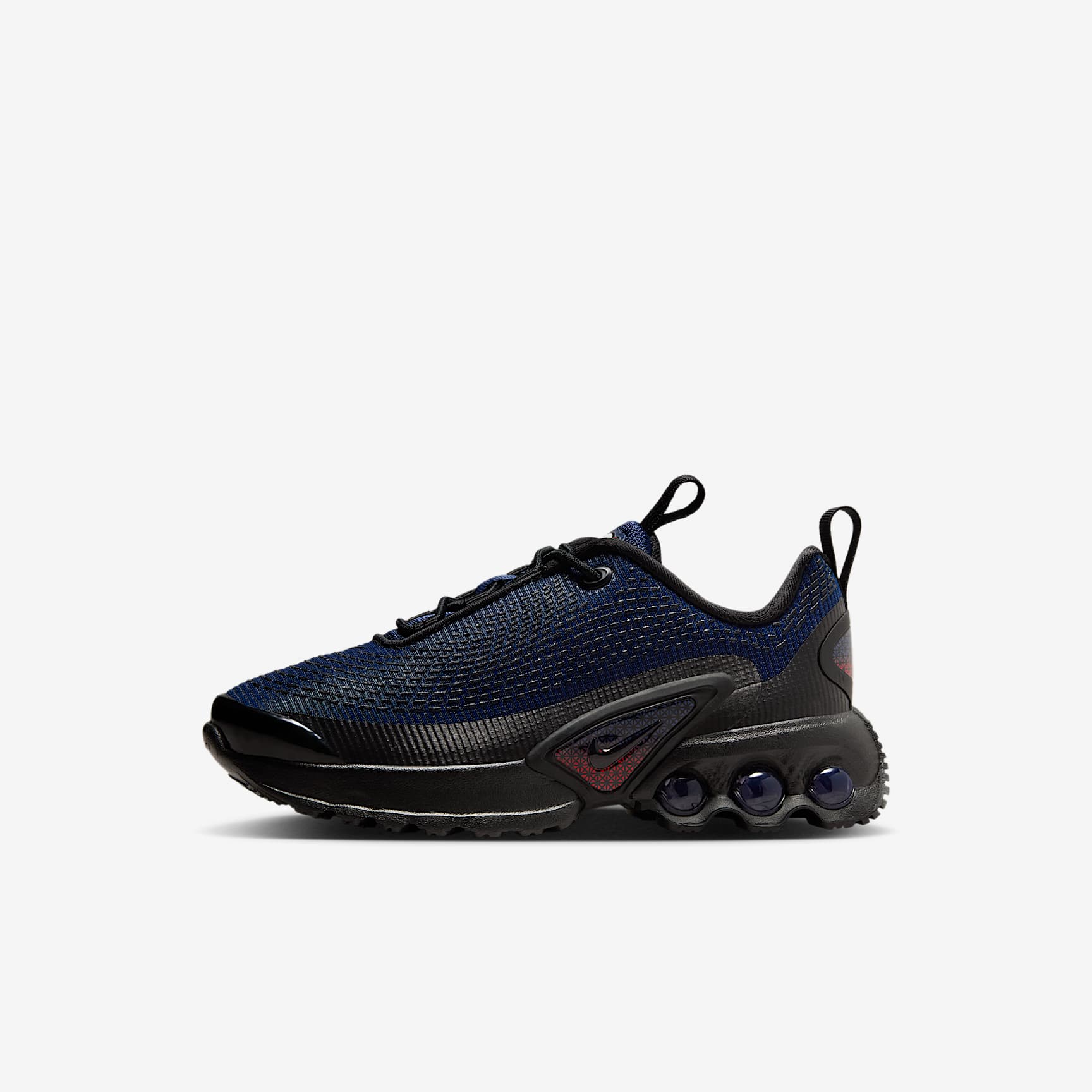 Introduce your little one to the next generation of Air technology. Designed to feel bouncy underfoot, the Air Max Dn features dynamic Air units for a futuristic design that's comfortable enough to wear all day. Elastic laces help make them easy to get on squirming feet. Maxxed Out motion Max Air units help cushion every step your little one takes, adding bounce to their day. Maxxed Out comfort Multilayered mesh on the upper is lightweight and breathable, with a dimensional print that adds a fun textured look. Underfoot, the plush foam creates a soft and supportive feeling. Maxxed Out energy Providing comfort from top to bottom, the design of this sneaker boasts performance-level bounce to help energise every move. Product details * Elastic laces * Rubber outsole * Matt accents Nike Air Max Origins Revolutionary Air technology first made its way into Nike footwear in 1978. In 1987, the Air Max 1 debuted with visible Air technology in its heel, allowing fans more than just the feel of Air cushioning—suddenly they could see it. Since then, next-generation Air Max shoes have become a hit with athletes and collectors by offering striking colour combinations and reliable, lightweight cushioning.