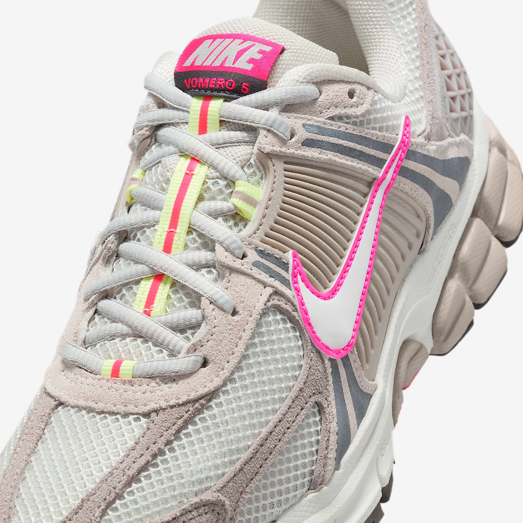 Carve a new lane for yourself in the Zoom Vomero 5—your go-to for depth, durability and easy styling. The richly layered design includes textiles, leather and plastic accents that nod to the Y2K aesthetic. Benefits * Real and synthetic leather on upper adds durability. * Mesh panels and ventilation ports on heel help keep it light and breathable. * Snappy and responsive, Air Zoom cushioning helps provide a quick-off-the-ground sensation. * Plastic caging on sides adds support. * Rubber outsole gives you durable traction. Product Details * Reflective details * Not intended for use as Personal Protective Equipment (PPE)