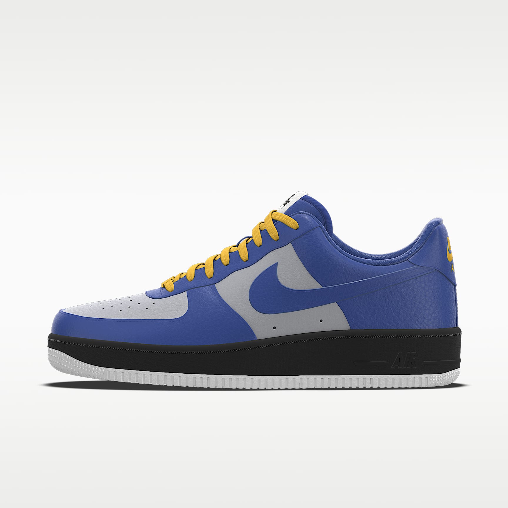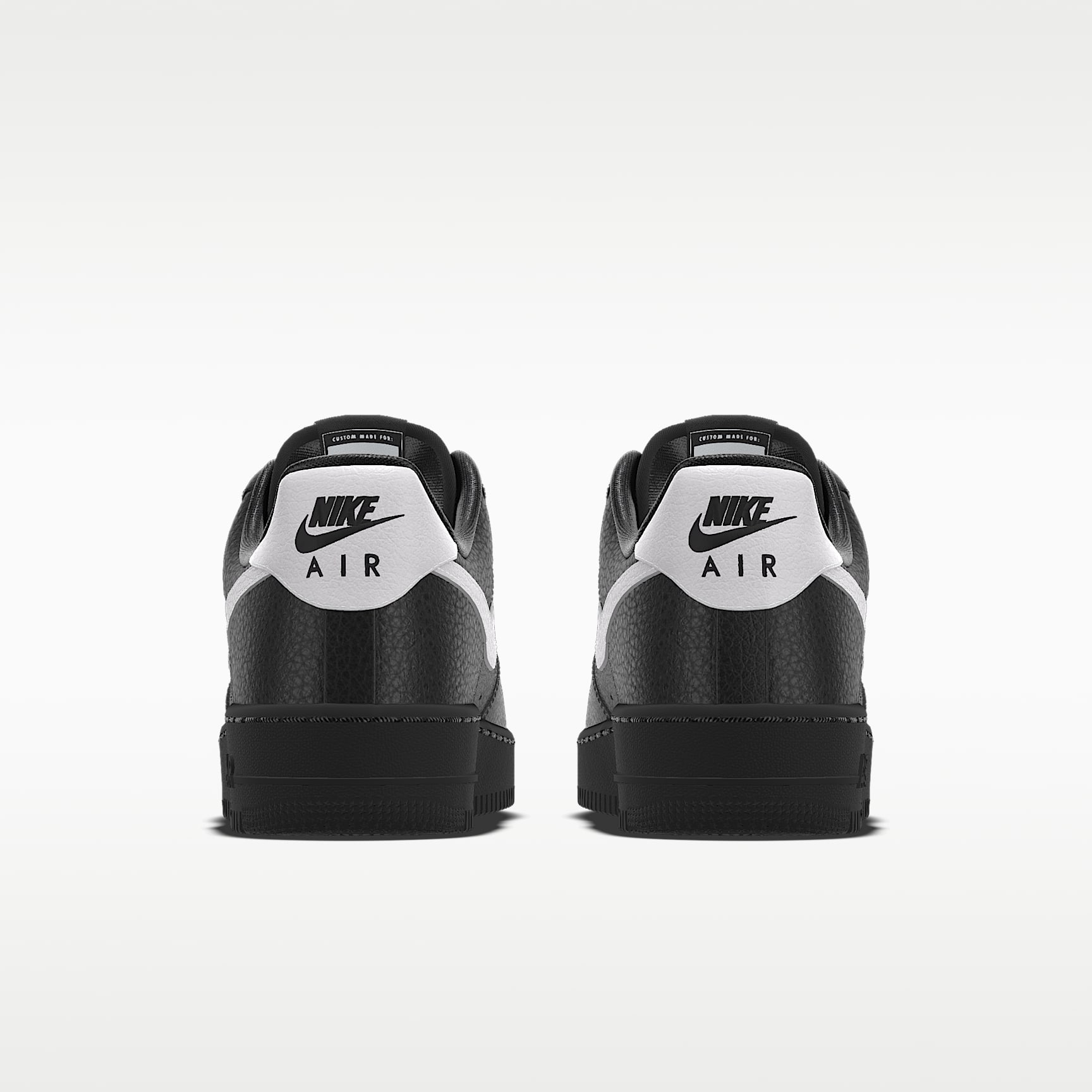 These AF1s are all about the details. Customize your label, laces and dubrae, and don't forget to leave your mark with personal text on the backtab. Between eight color choices and additional translucent and gum rubber options for the sole, this design is destined to be one of a kind—just like you. What's Your Base? Start with the leather upper, then choose between traditional, translucent and gum rubber for the midsole and outsole. Color Up Clean neutrals, luxe metallics, sporty classics or all of the above. What will you create? Express Yourself Your initials? A nickname? Or something else that's so you. Get personal with up to three characters on the backtab. Plus, your name is on the box. More Benefits * From tough stitching to pristine materials to the cupsole design, it delivers durable style that’s smoother than backboard glass. * Originally designed for performance hoops, the Air cushioning provides lasting comfort. * Rubber outsole with heritage hoops pivot circles adds traction and durability. Product Details * Our members are one of a kind, and your shoes are, too. Each pair is proudly made one at a time, by hand. Good things are worth the wait. * With our 3-D builder, watch your creation come alive as you experiment with all kinds of design choices.