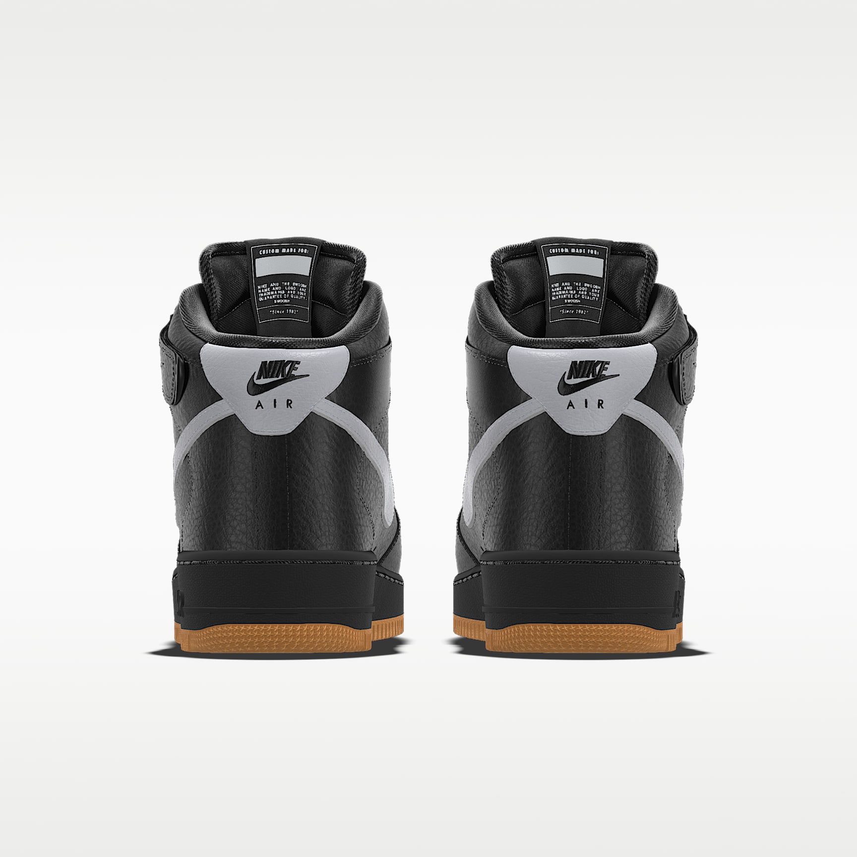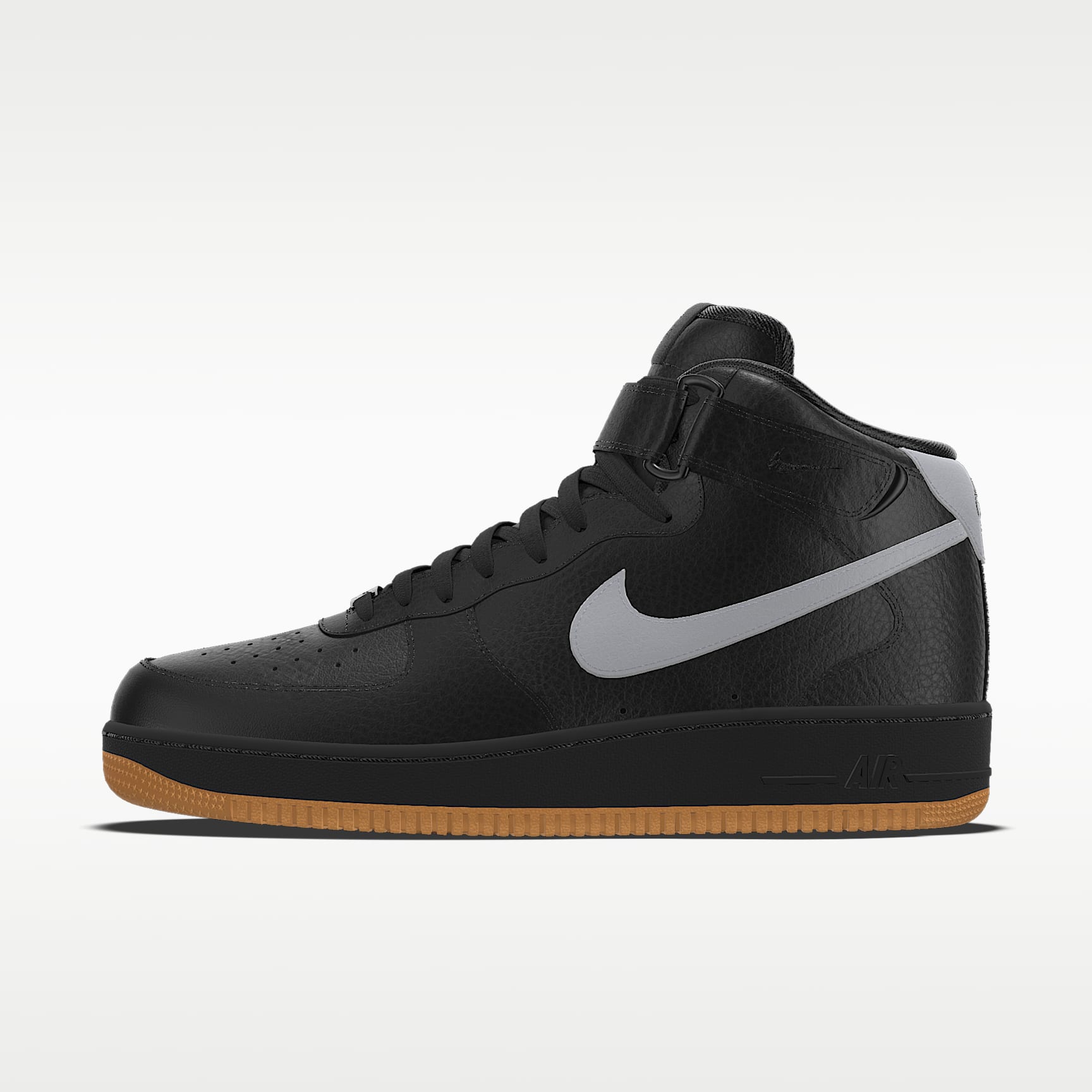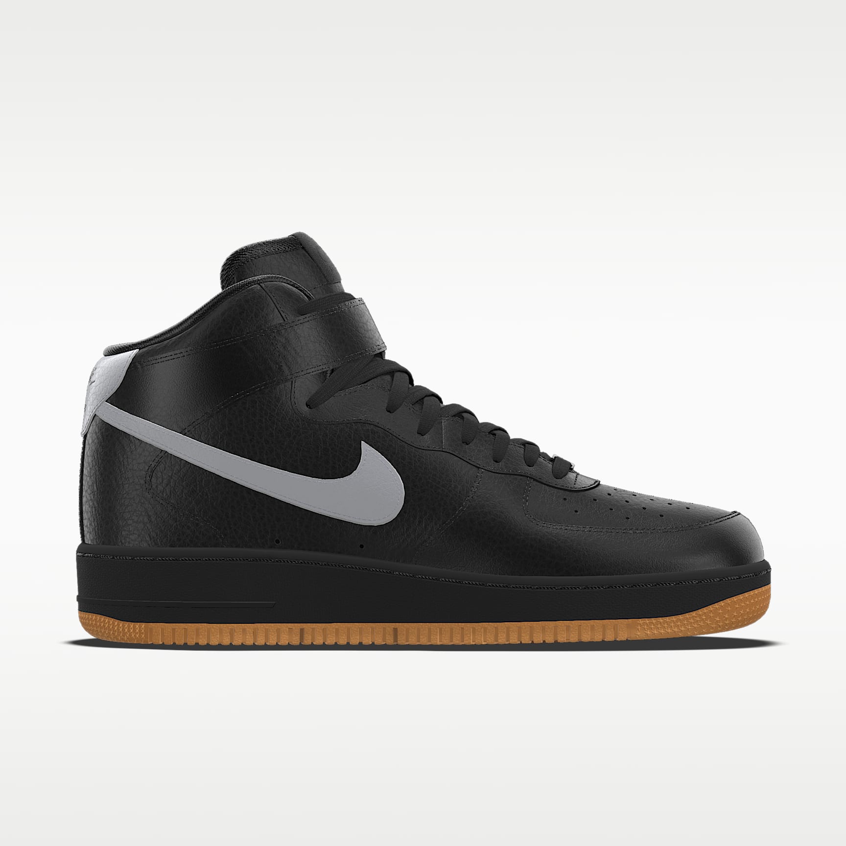 These AF-1s are all about the details. Customise your label, laces and dubrae, and don't forget to leave your mark with personal text on the backtab. Between 8 colour choices and additional translucent and gum rubber options for the sole, this design is destined to be one of a kind—just like you. What's Your Base? Start with the leather upper, then choose between traditional, translucent and gum rubber for the midsole and outsole. Colour-up Clean neutrals, luxe metallics, sporty classics or all of the above. What will you create? Express yourself Your initials? A nickname? Or something else that's so you. Get personal with up to 3 characters on the backtab. Plus, your name is on the box. More benefits * From tough stitching to pristine materials to the cupsole design, it delivers durable style that's smoother than backboard glass. * Originally designed for performance hoops, the Air cushioning provides lasting comfort. * Rubber outsole with heritage hoops pivot circles adds traction and durability. Product details * Our Members are one of a kind, and your shoes are too. Each pair is proudly made one at a time, by hand. Good things are worth the wait. * With our 3D builder, watch your creation come alive as you experiment with all kinds of design choices. Air Force 1 Debuting in 1982 as a basketball must-have, the Air Force 1 came into its own in the '90s. The clean look of the classic white-on-white AF-1 was endorsed from the basketball courts to the street and beyond. Finding its rhythm in hip-hop culture, releasing limited collabs and colourways, Air Force 1 became an iconic sneaker around the globe. And with over 2,000 iterations of this staple, its impact on fashion, music and sneaker culture can't be denied.