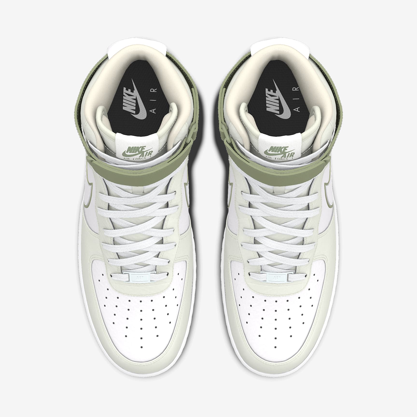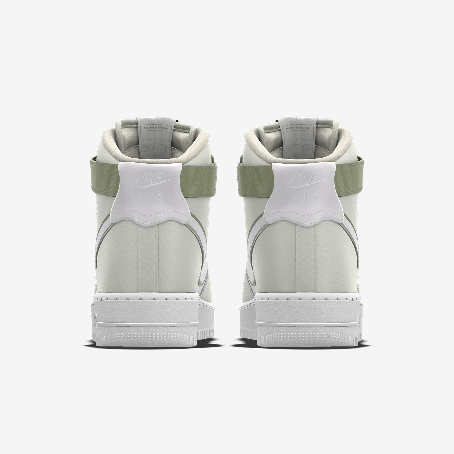 These AF-1s are all about the details. Customise your label, laces and dubrae, and don't forget to leave your mark with personal text on the backtab. Between 8 colour choices and additional translucent and gum rubber options for the sole, this design is destined to be one of a kind—just like you. What's your base? Start with the leather upper, then choose between traditional, translucent and gum rubber for the midsole and outsole. Colour-up Clean neutrals, luxe metallics, sporty classics or all of the above. What will you create? Express yourself Your initials? A nickname? Or something else that's so you. Get personal with up to 9 characters on the strap. Plus, your name is on the box. More benefits * From tough stitching to pristine materials to the cupsole design, it delivers durable style that's smoother than backboard glass. * Originally designed for performance hoops, the Air cushioning provides lasting comfort. * Rubber outsole with heritage hoops pivot circles adds traction and durability. Product details * Our Members are one of a kind, and your shoes are too. Each pair is proudly made one at a time, by hand. Good things are worth the wait. * With our 3D builder, watch your creation come alive as you experiment with all kinds of design choices. Air Force 1 Debuting in 1982 as a basketball must-have, the Air Force 1 came into its own in the '90s. The clean look of the classic white-on-white AF-1 was endorsed from the basketball courts to the street and beyond. Finding its rhythm in hip-hop culture, releasing limited collabs and colourways, Air Force 1 became an iconic sneaker around the globe. And with over 2,000 iterations of this staple, its impact on fashion, music and sneaker culture can't be denied.