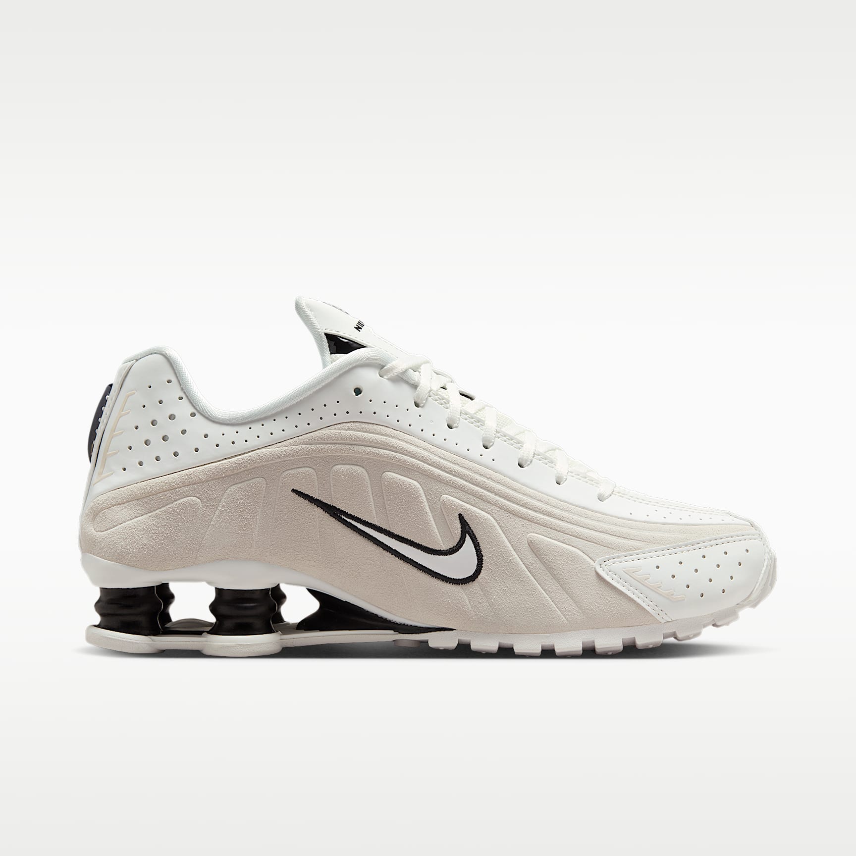 A recrafted version of the early 2000s icon, the Shox R4 keeps the original design lines and enhances its performance-inspired look with premium suede and leather. Nike Shox columns in the heel distribute weight to maximise comfort while providing bold style on the streets. Benefits * The suede and leather upper adds durability, while laser perforations allow breathability. * Nike Shox columns provide resilient cushioning. * The modified, circular Waffle outsole gives you durable traction. Product details * Not intended for use as personal protective equipment (PPE)