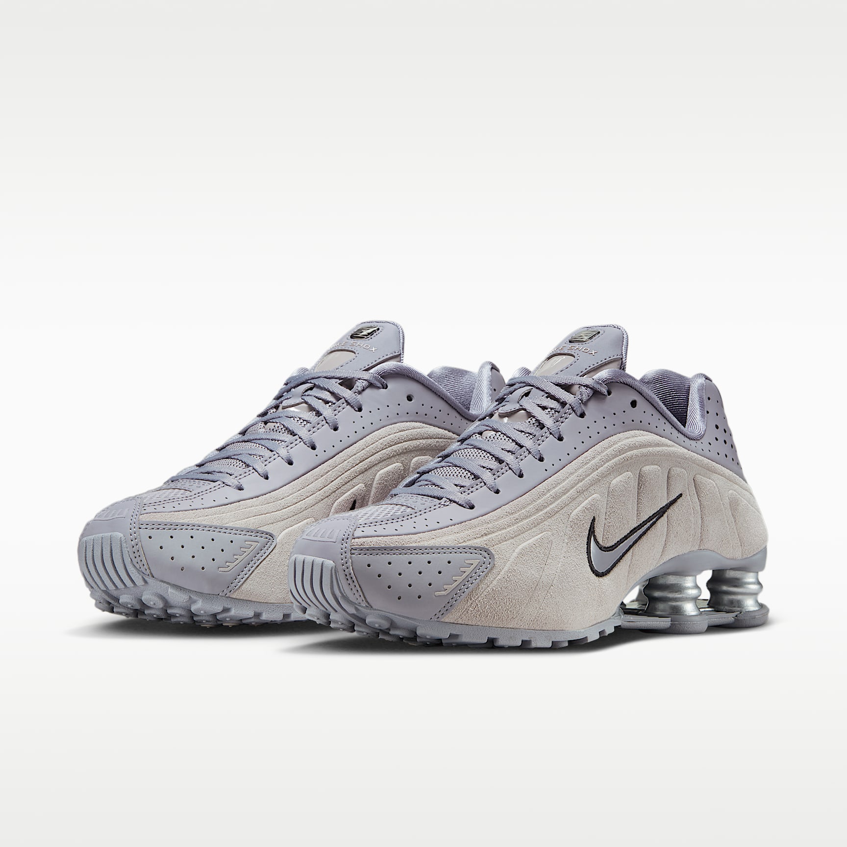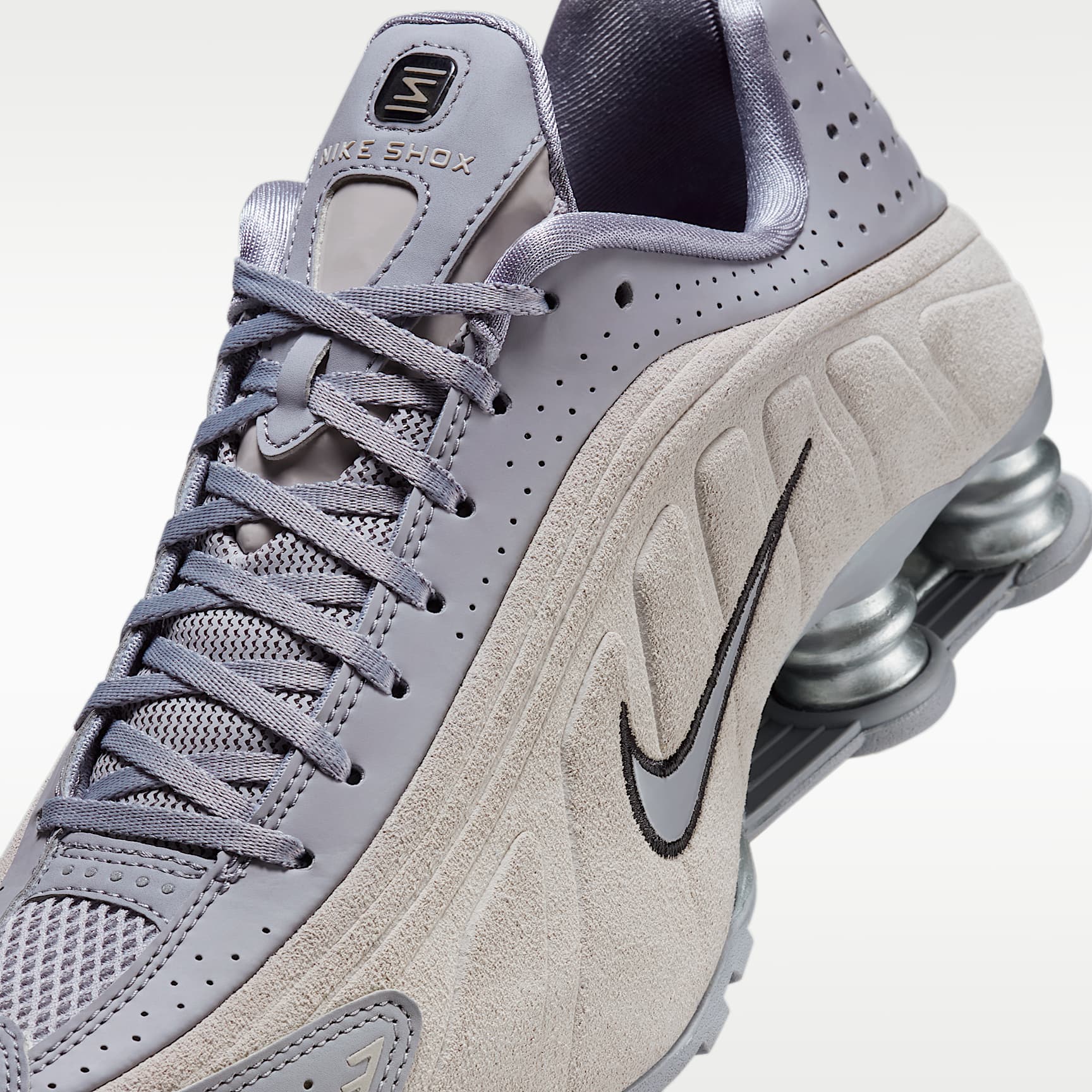 A recrafted version of the early 2000s icon, the Shox R4 keeps the original design lines and enhances its performance-inspired look with premium suede and leather. Nike Shox columns in the heel distribute weight to maximise comfort while providing bold style on the streets. Benefits * The suede and leather upper adds durability, while laser perforations allow breathability. * Nike Shox columns provide resilient cushioning. * The modified, circular Waffle outsole gives you durable traction. Product details * Not intended for use as personal protective equipment (PPE)
