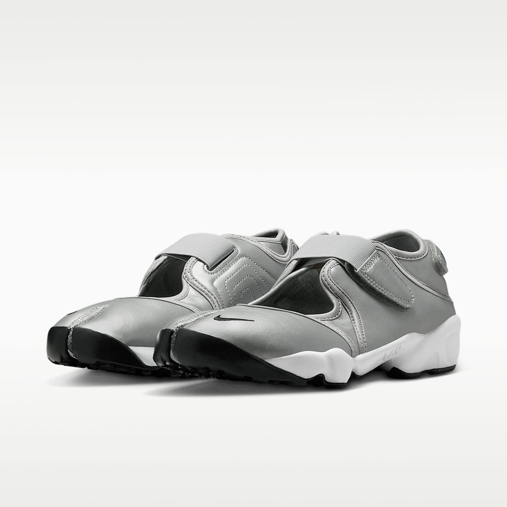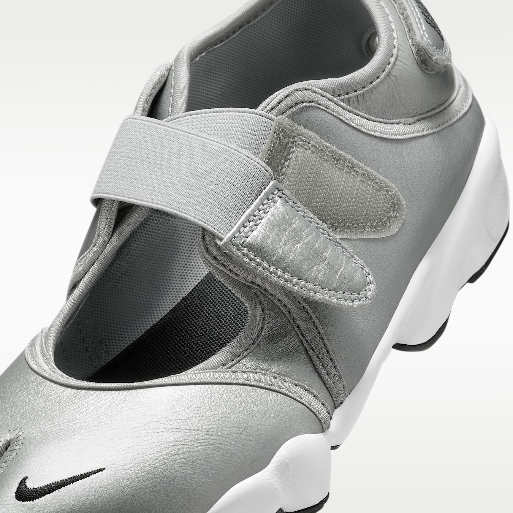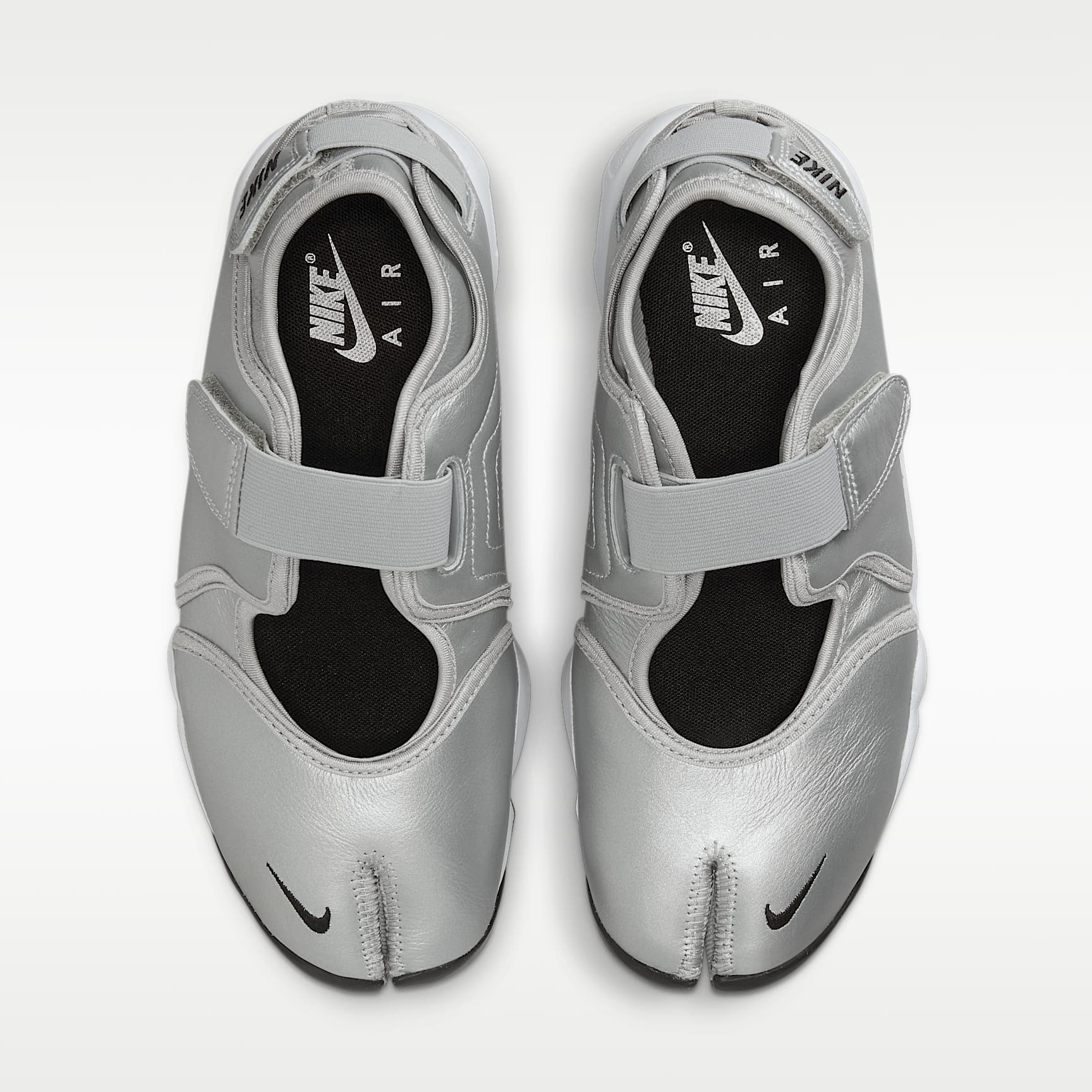 When you want to be barefoot but you need a shoe, go with the Air Rift. Adjustable straps let you easily slide in and customise the fit. The split-toe design, based on the '96 original, helps your feet feel like they're wearing nothing at all. Nike Air cushioning and a rubber sole provide comfort and traction wherever you go. Benefits * The leather upper is smooth and durable. * Hook-and-loop straps on the midfoot and heel give you a personalised fit. * A Nike Air unit in the heel is combined with plush foam for a soft feel. * Rubber detailing on the outsole features rugged tread for added durability and traction. Nike Air The first of its kind, Nike Air technology absorbs impact for cushioning with every step. It's been built to help reduce the weight of the shoe without sacrificing performance, supporting both the athlete and the lifespan of the shoe.