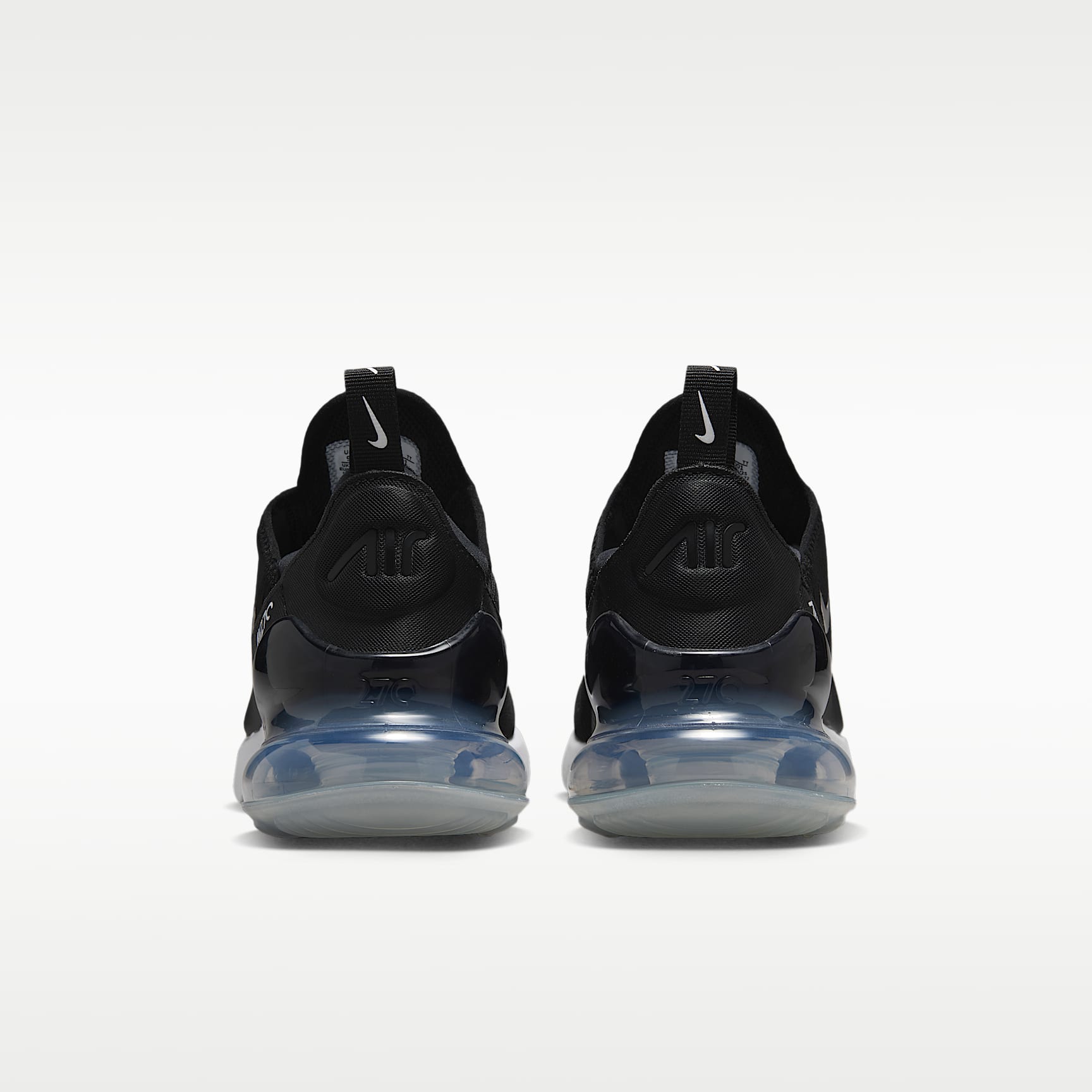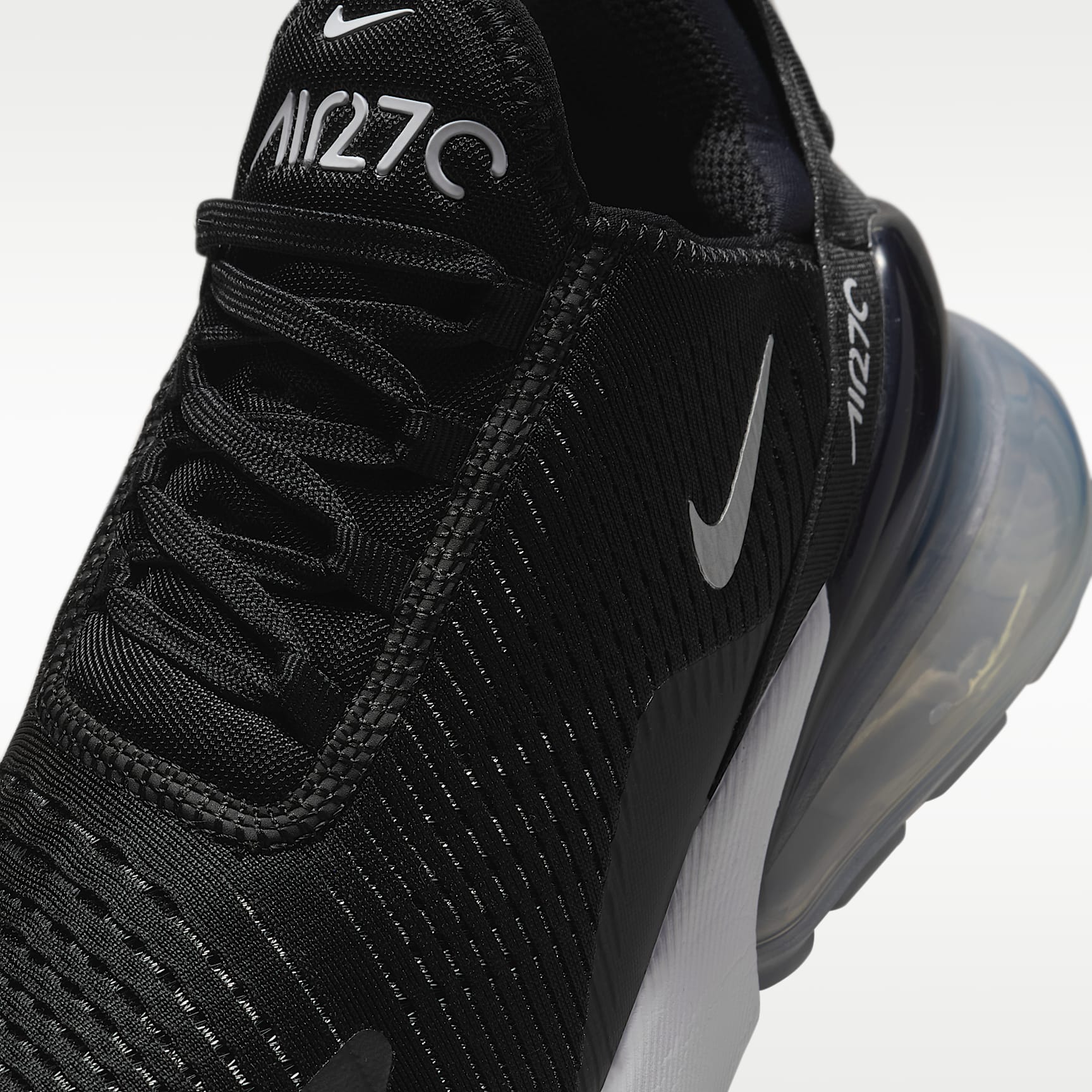 The Air Max 270 brings style, comfort and big attitude. The design draws inspiration from Air Max icons, showcasing Nike's greatest innovation with its large cushioning window and fresh array of colours. Benefits * The woven fabric on the upper provides a lightweight fit and airy feel. * Plush and comfortable, the Max Air cushioning has just the right amount of support. * The inner sleeve stretches for a personalised fit. * Rubber outsole adds traction and durability. Product details * Mesh details * Foam midsole
