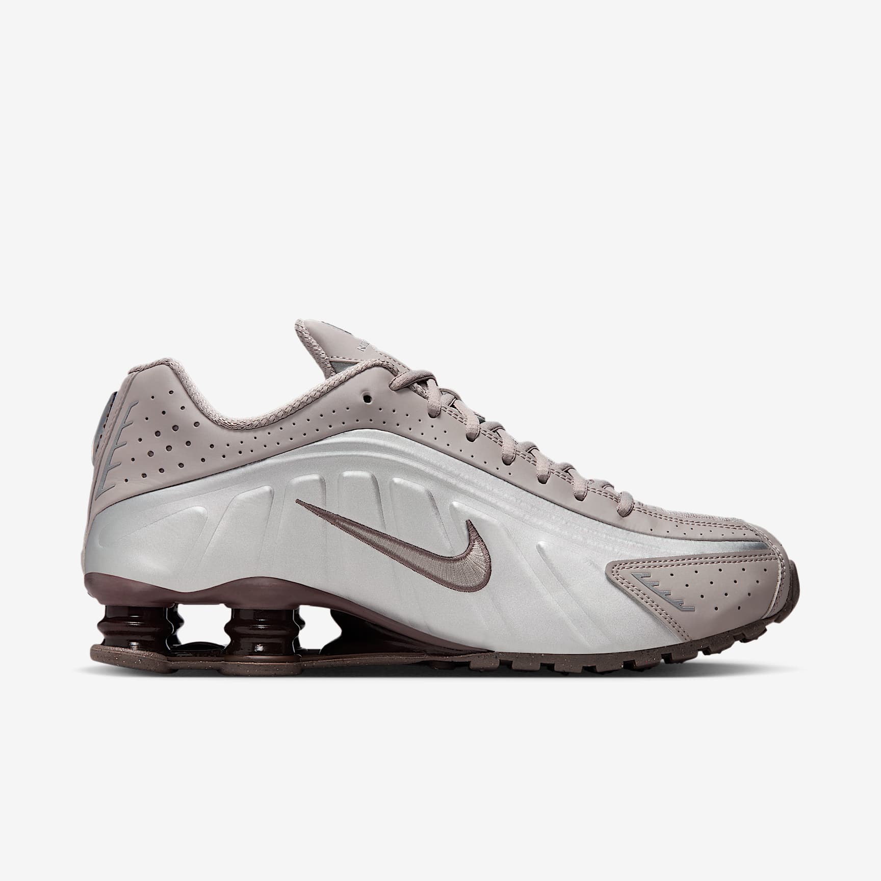A recrafted version of the early 2000s icon, the Nike Shox R4 replicates the original with its futuristic design lines and performance-like cushioning. Nike Shox columns in the heel distribute weight to maximize comfort while providing a bold look on the streets. Benefits * Synthetic and textile upper is soft and durable. * Nike Shox technology features resilient, flexible columns that compress and regain shape for outstanding cushioning. * Modified, circular Waffle outsole offers great traction. * Laser perforations throughout provide ventilation. Product Details * Foam midsole * Rubber outsole * Not intended for use as Personal Protective Equipment (PPE)