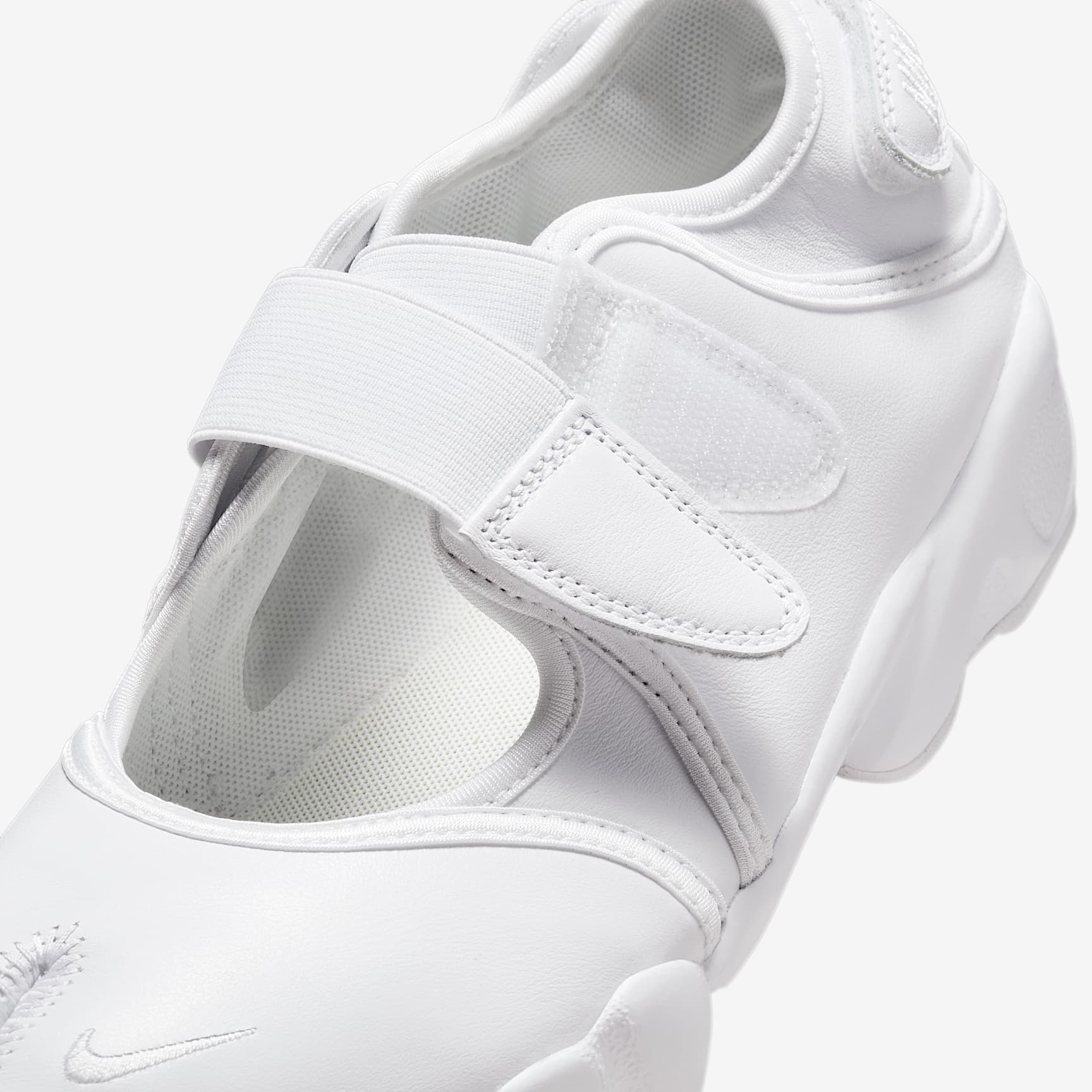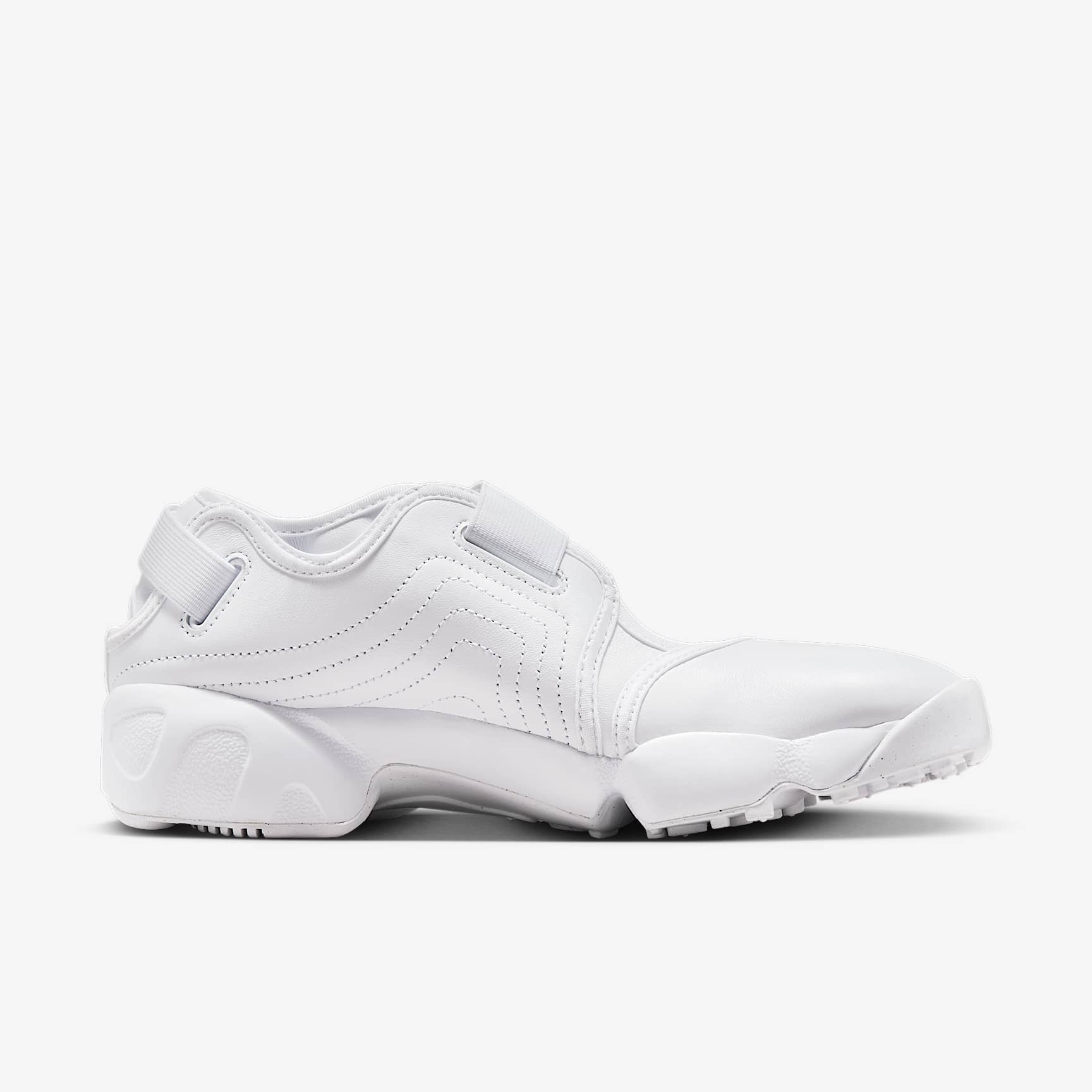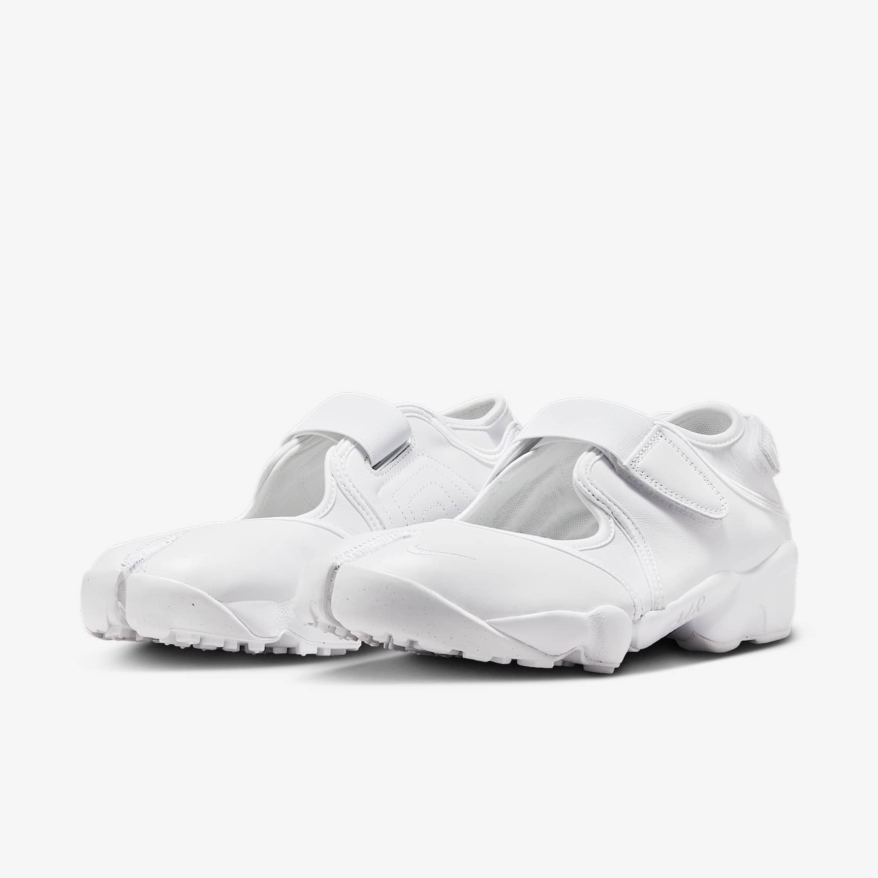 When you want to be barefoot but you need a shoe, go with the Air Rift. Adjustable straps let you easily slide in and customise the fit. The split-toe design, based on the '96 original, helps your feet feel like they're wearing nothing at all. Nike Air cushioning and a rubber sole provide comfort and traction wherever you go. Benefits * The leather upper is smooth and durable. * Hook-and-loop straps on the midfoot and heel give you a personalised fit. * A Nike Air unit in the heel is combined with plush foam for a soft feel. * Rubber detailing on the outsole features rugged tread for added durability and traction. Nike Air The first of its kind, Nike Air technology absorbs impact for cushioning with every step. It's been built to help reduce the weight of the shoe without sacrificing performance, supporting both the athlete and the lifespan of the shoe.