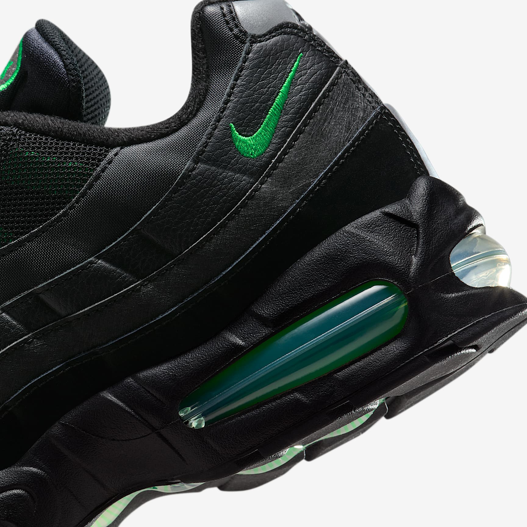 Taking inspiration from the human body and '90s athletics aesthetics, the Air Max 95 mixes unbelievable comfort with fast-paced style. The wavy side panels add natural flow to any outfit while visible cushioning in the heel and forefoot delivers performance comfort. Benefits * The upper combines real and synthetic leather with airy textiles for a layered look built to last. * The visible Max Air cushioning provides lightweight cushioning. * Flex grooves in the midsole/outsole let you move freely. * Inspired by the human anatomy, the midsole/outsole represent the spine, upper panels are the muscles and the laces are the shoe's ribs. Product details * Foam midsole * Rubber outsole Air Max 95 There are layers to the Air Max 95. Sporting a grooved design, these were the first Nike shoes to don a forefoot Air unit. And debuting with a black sole, unheard of at the time, these kicks looked fresh no matter where you stepped.