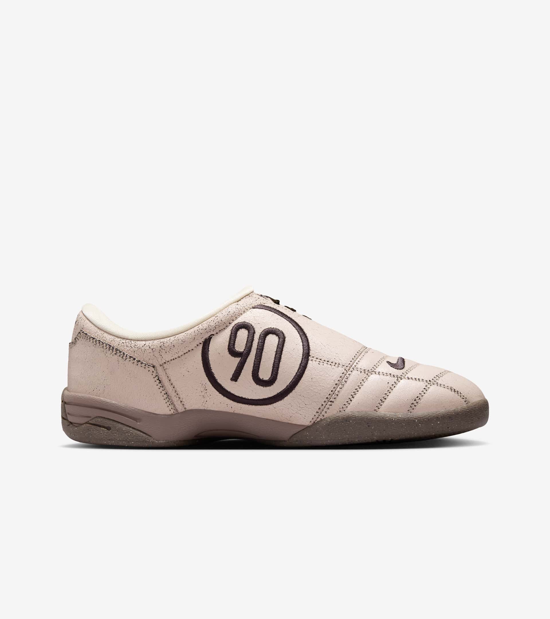 Born on the pitch in 2000, the Total 90 left a lasting legacy on the beautiful game. Now it's back and ready for the street with authentic football style, reloaded for today. This modern edition swaps the studs for a flat rubber sole but keeps the iconic quilted upper and asymmetrical lacing of the original. A Pearl White leather and suede upper combines with Shadow Brown accents and a dark gum sole to create a striking rendition you can't ignore. SKU: IH2090-200