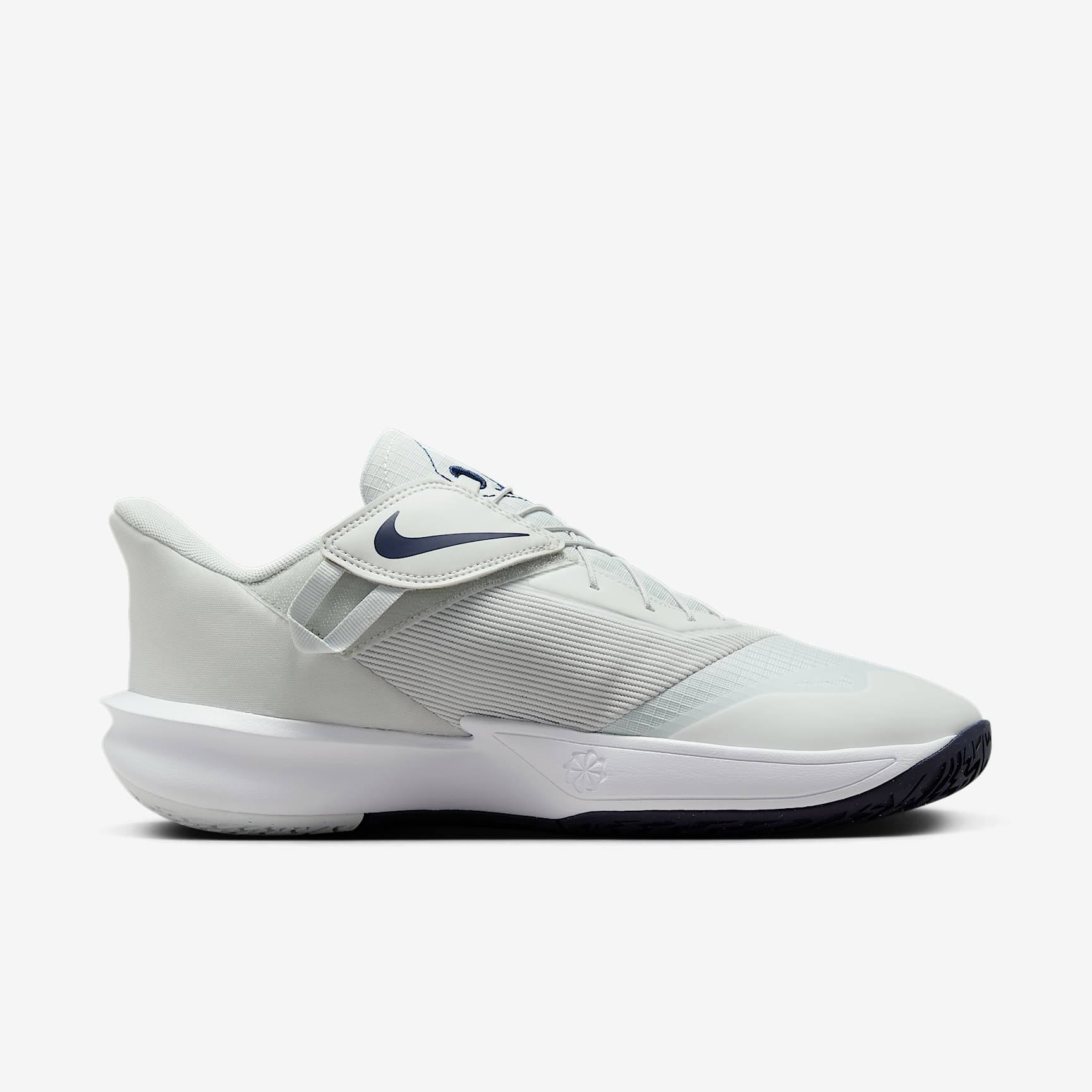 Step onto the floor with full confidence, and take your best shot in the Nike Precision 7—a game-ready basketball shoe for everyone. Made with Nike EasyOn technology, it has a collapsible heel and large midfoot strap to help you tighten the laces and secure the fit using one hand. Fasten the strap in a matter of seconds, check in and make the plays that swing the outcome in your favor. All-Game Comfort Plush foam on the collar and tongue enhances the feeling of comfort around the ankle and over the top of the foot—areas where you want no distractions. It helps strike a sound balance between ground control when changing sudden direction and comfort when racing from one end of the floor to the other. The breathable mesh upper helps keep you contained. Cushion for the Push The sculpted midsole feels soft and supportive, providing cushioning for the game's nonstop movement. Stick and Move Herringbone traction provides multidirectional grip, great for players who rely on their quickness and cutting ability. The rubber wraps up the sides in the forefoot to give you traction on your edges. More Benefits * Lace positioning and midfoot webbing loops help you stay secure. * Low collar provides mobility at the ankle. * Visible cutout in the foam helps reduce weight. Product Details * No-sew overlays * Molded Swoosh logo