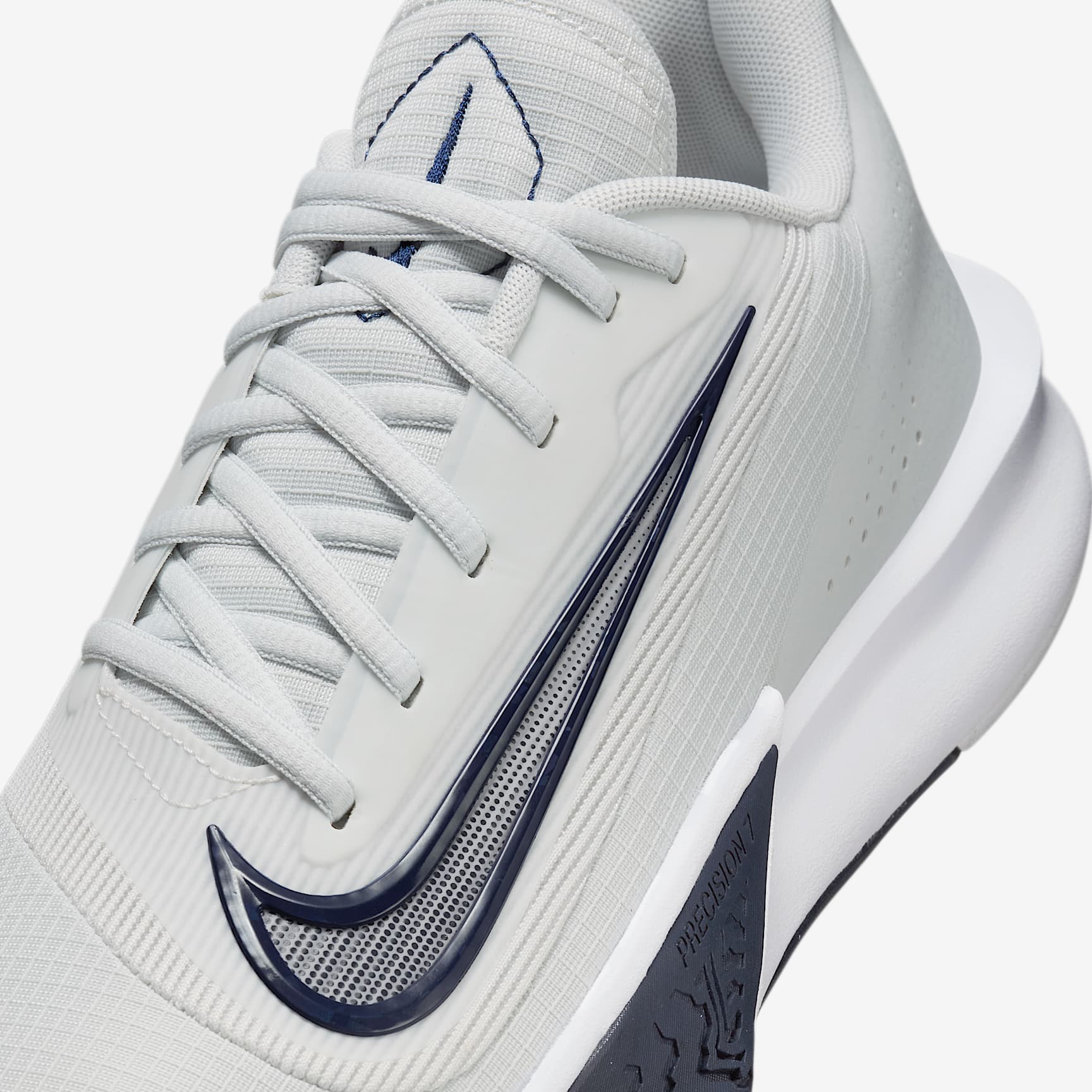 Score at will at the rim or from deep in the Nike Precision 7. Crafted with a combination of ground control, comfort and on-court traction, it's perfect for instant impact plays when your name is called for the next casual game. Check in and make the plays that swing the outcome in your favour. All-game comfort The plush foam on the collar and tongue enhances the feeling of comfort around the ankle and over the top of the foot—areas where you want no distractions. It helps strike a sound balance between ground control when changing sudden direction and comfort when racing from one end of the floor to the other. Cushion for the push The sculpted foam midsole feels soft and supportive, providing cushioning for the game's non-stop movement. Stick and move Herringbone traction provides multi-directional grip, great for players who rely on their quickness and cutting ability. The rubber wraps up the sides in the forefoot to give you traction on your edges. More benefits * Low collar provides mobility at the ankle. * Visible cut-out in the foam helps reduce weight. Product details * Mesh upper * No-sew overlays * Moulded Swoosh logo