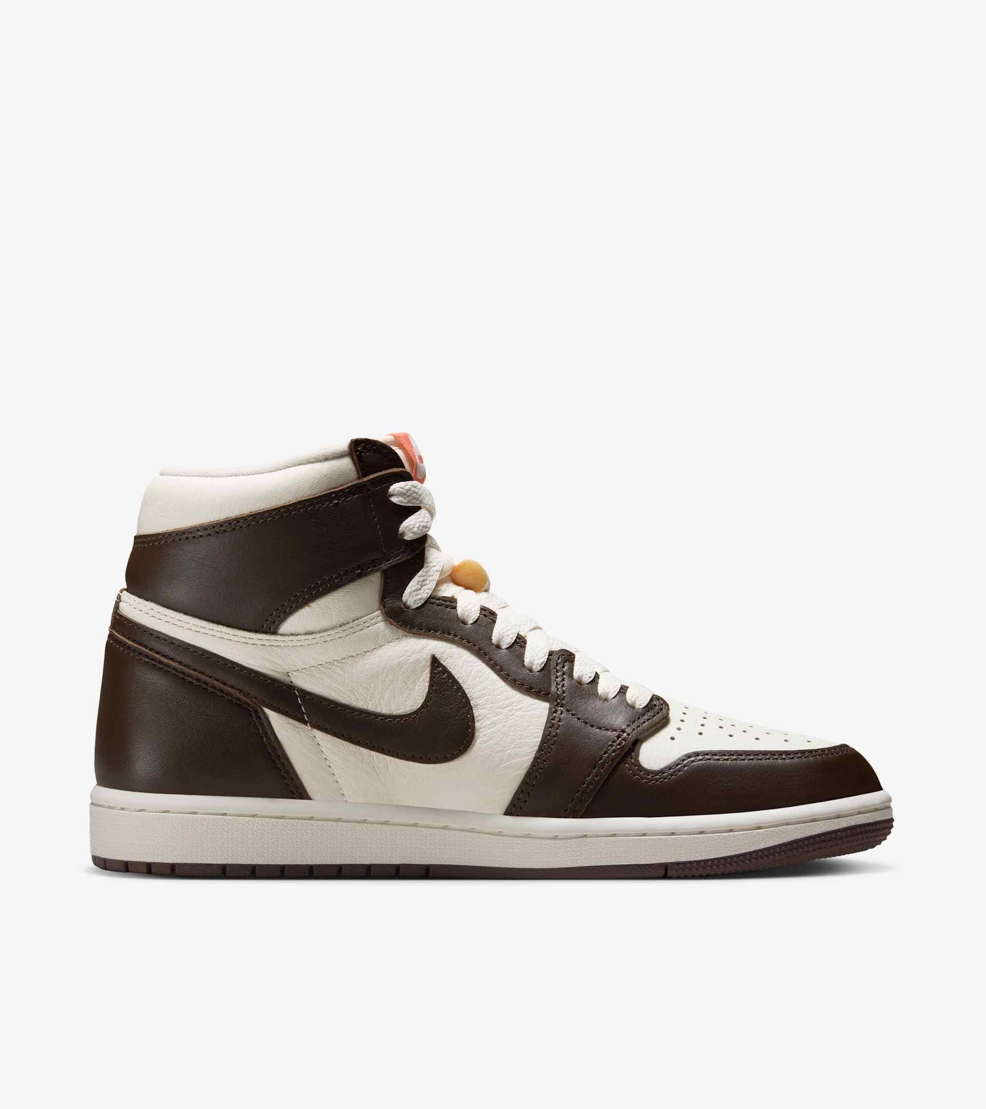 Right on time, this autumn-inspired AJ1 pairs premium leather and earthy hues to finish off your autumn fits with an iconic Jordan-Brand spin. Baroque Brown overlays add richness and warmth against the smooth Sail leather upper, while Light Madder Root accents sneak in a subtle pop of colour to punctuate the season. A Wings logo on the collar and woven Nike Air tongue label hook it back to the original. The classic lightweight cushioning, padded collar and pristine finishes let you take this seasonal sneaker and rock it all year long. SKU: FD2596-200