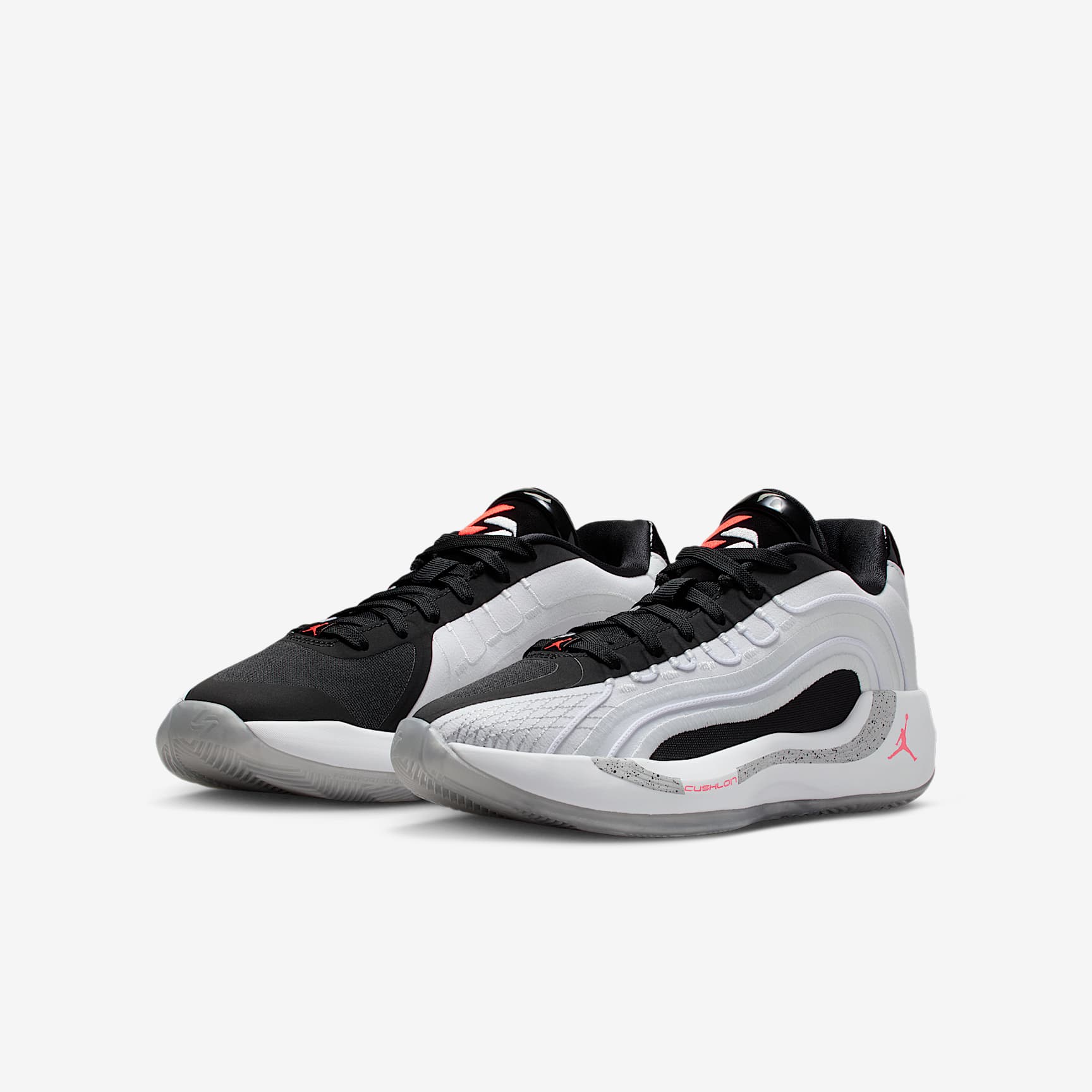 For Luka's fourth, we had to channel Jordan's fourth. In a nod to an iconic colourway, this Luka 4 puts Jordan heritage front and centre. Classic white and black mixes with speckled grey cement for an iconic look. Add in Cushlon foam and an Air Zoom unit, and you have all the comfort and stability you need. It's game over. Stability to help you keep 'em off balance To keep 'em off balance, you got to have balance. Flightwire technology from the Luka 1 helps provide the stability and supportive containment you need to stay in control. Propulsive power to keep you moving This Luka's got Air. We added a snappy and responsive Air Zoom unit to the forefoot of this shoe, helping give you a quick-off-the-ground sensation. Comfort to keep you in the game The full-length Cushlon foam underfoot makes for a comfortable ride. Add in a flexible upper and you've got shoes that stay comfortable even when you're making hard jab steps and quick cuts. More benefits * The heart underneath the tongue reflects a tribute to his daughter that Luka draws on all his shoes. * A compass on the outsole nods to how Luka plays on court.