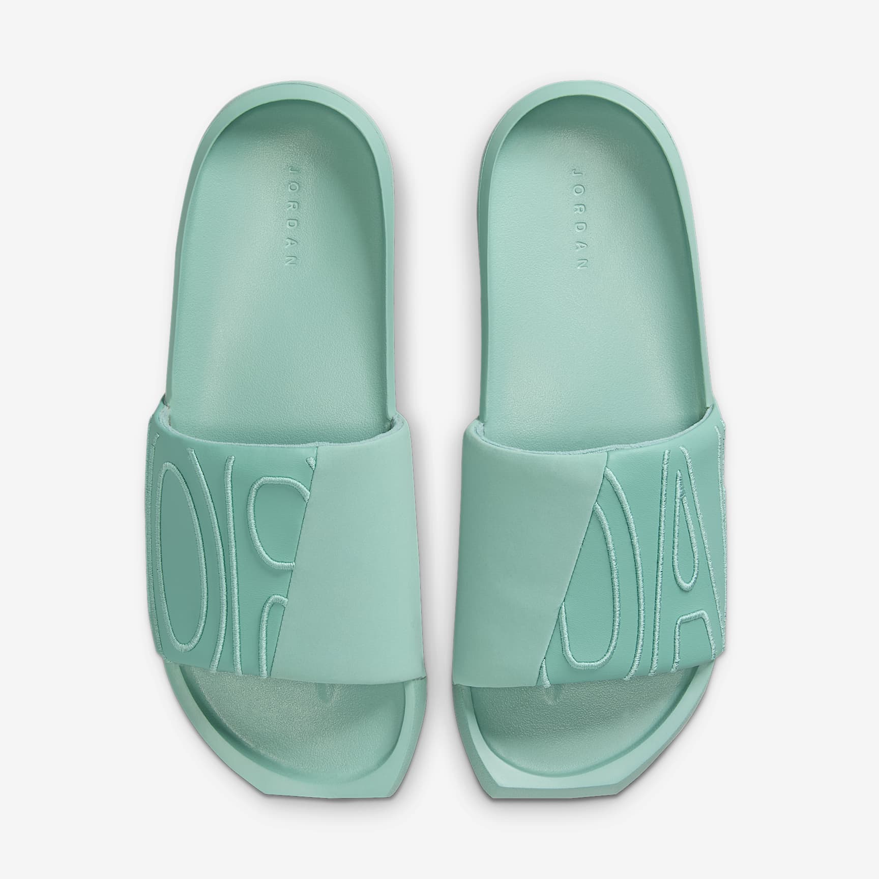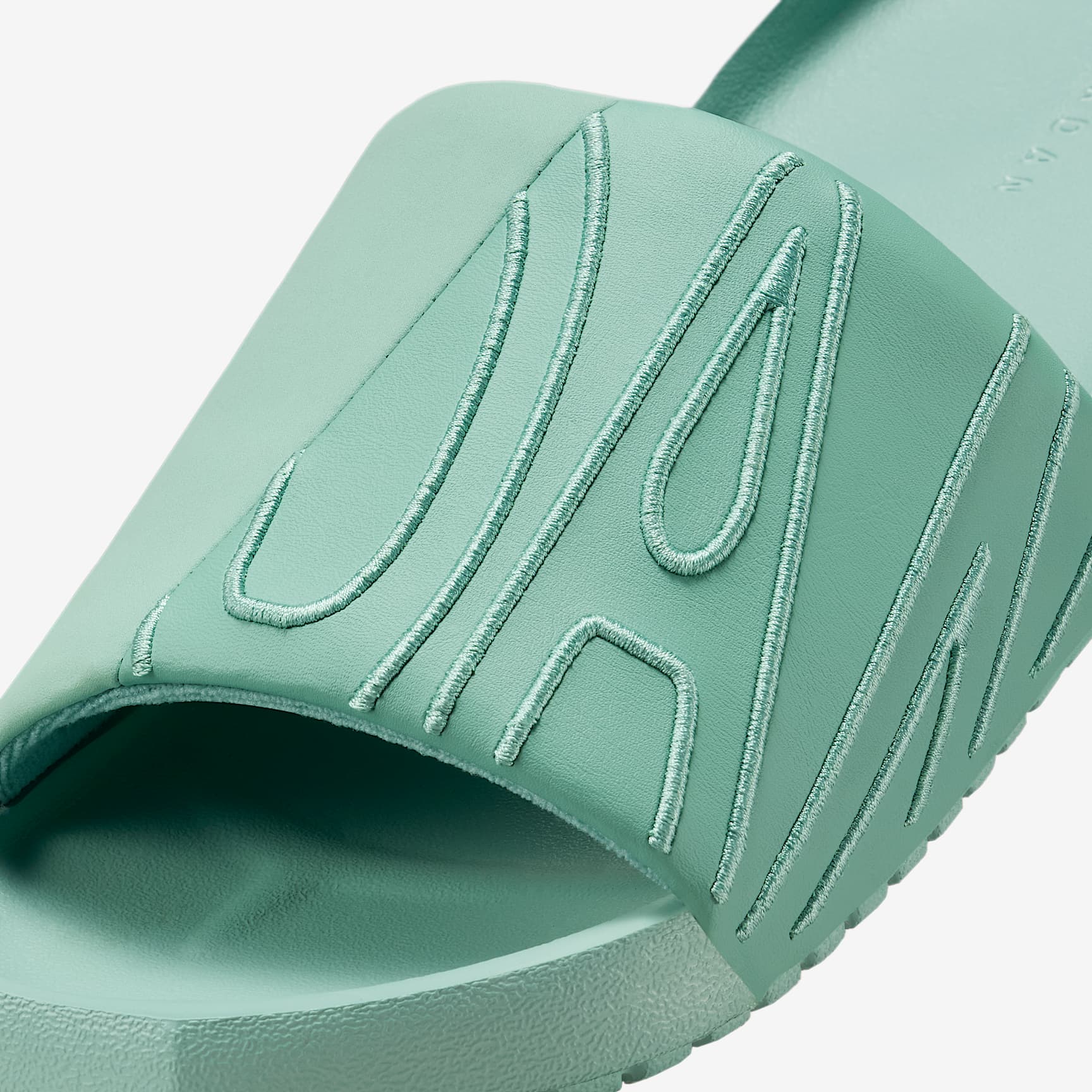 SUMMERTIME FAVOURITE. Go beyond the flip-flop in the Jordan NOLA Slide, an instant warm-weather favourite. Featuring a moulded foam footbed with a squared-off toe, it's light and airy with an easy, slip-in strap. Distinct Lines The squared-off toe shape offers versatility. The moulded foam has a ridge that makes a barrier for your toes. Slip-In Comfort The fixed strap creates a comfortable fit with a mix of synthetic patent and matte leathers. Soft and Durable The foam is soft and pliable for comfort, yet durable for long-lasting wear. It's moulded with traction inspired by the AJ1. More Benefits * Deep heel cup is moulded for a stable, comfortable fit. * Raised toe bar helps provide grip as you walk. * "Jordan" is debossed in the heel.
