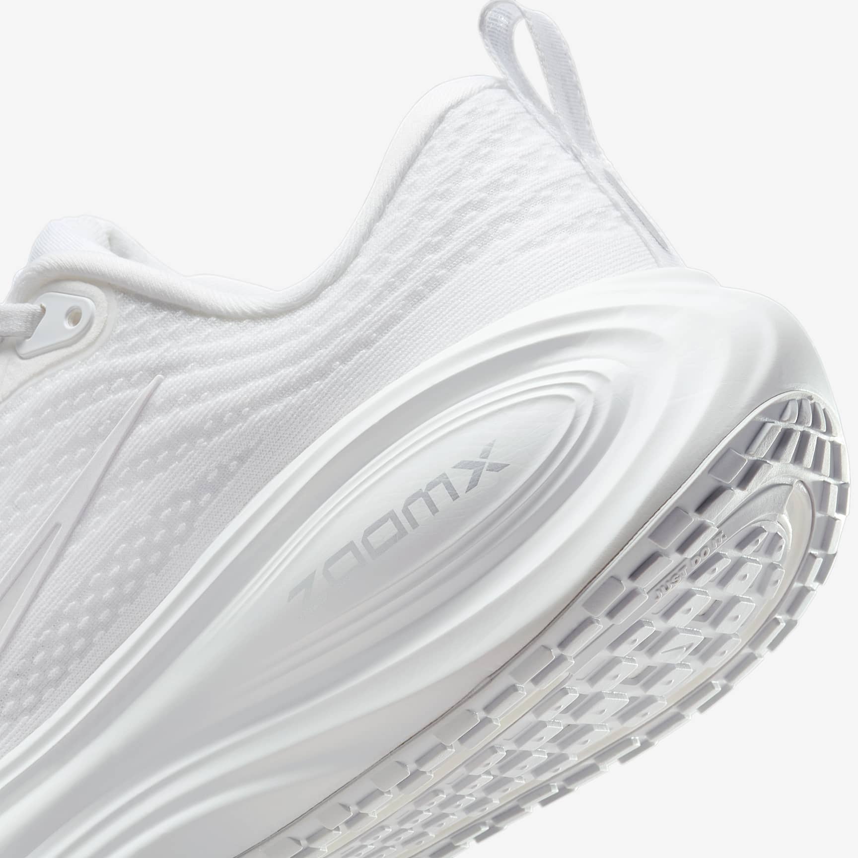 A tall stack of responsive, light foam offers next-level cushioning. Take maximum cushioning to the next level with the Vomero Plus. It provides an ultra-comfortable ride for everyday runs thanks to a mountainous stack of full-length ZoomX foam, the most responsive foam in the industry. Plus, the engineered mesh upper is made from soft, breathable yarn for a comfortable fit. ZoomX foam midsole The ultra-responsive ZoomX foam midsole delivers Nike's highest energy return. Soft upper An engineered mesh upper provides soft breathability. Durable Traction The high-abrasion rubber outsole offers durable traction. Product Details * Weight: Approx. 242g/8.5 oz (Women's US 8) * Heel-to-toe drop: 10mm * Webbed lace loops for an adjustable fit * Reflective design details * Not intended for use as personal protective equipment (PPE)