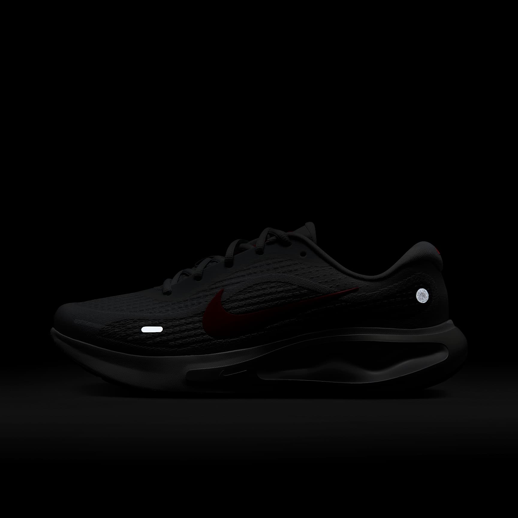 Enjoy every step, route and jaunt in the Nike Journey Run. It'll have you striding and smiling on punishing pavements, thanks to an extra-high foam stack and super-soft ComfiRide cushioning. It's so comfortable that you'll already be looking forward to lacing 'em up again. Engineered mesh upper An engineered mesh upper helps your feet feel secure. Extra cushion Extra cushioning in the heel and soft touch points in the tongue and collar add comfort to every step. Grippy traction A rubber outsole provides grippy traction for your miles. Product details * Reflective design details * Not intended for use as personal protective equipment (PPE)
