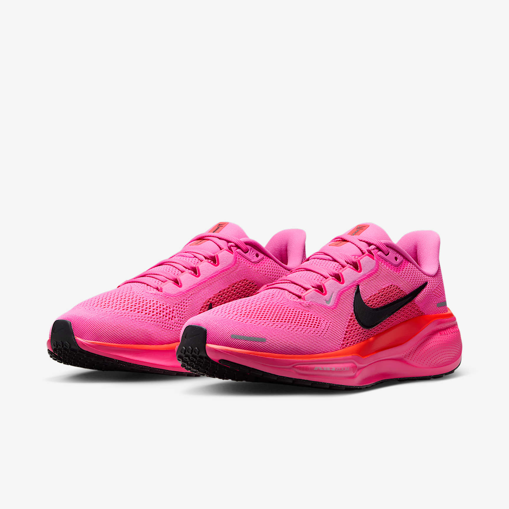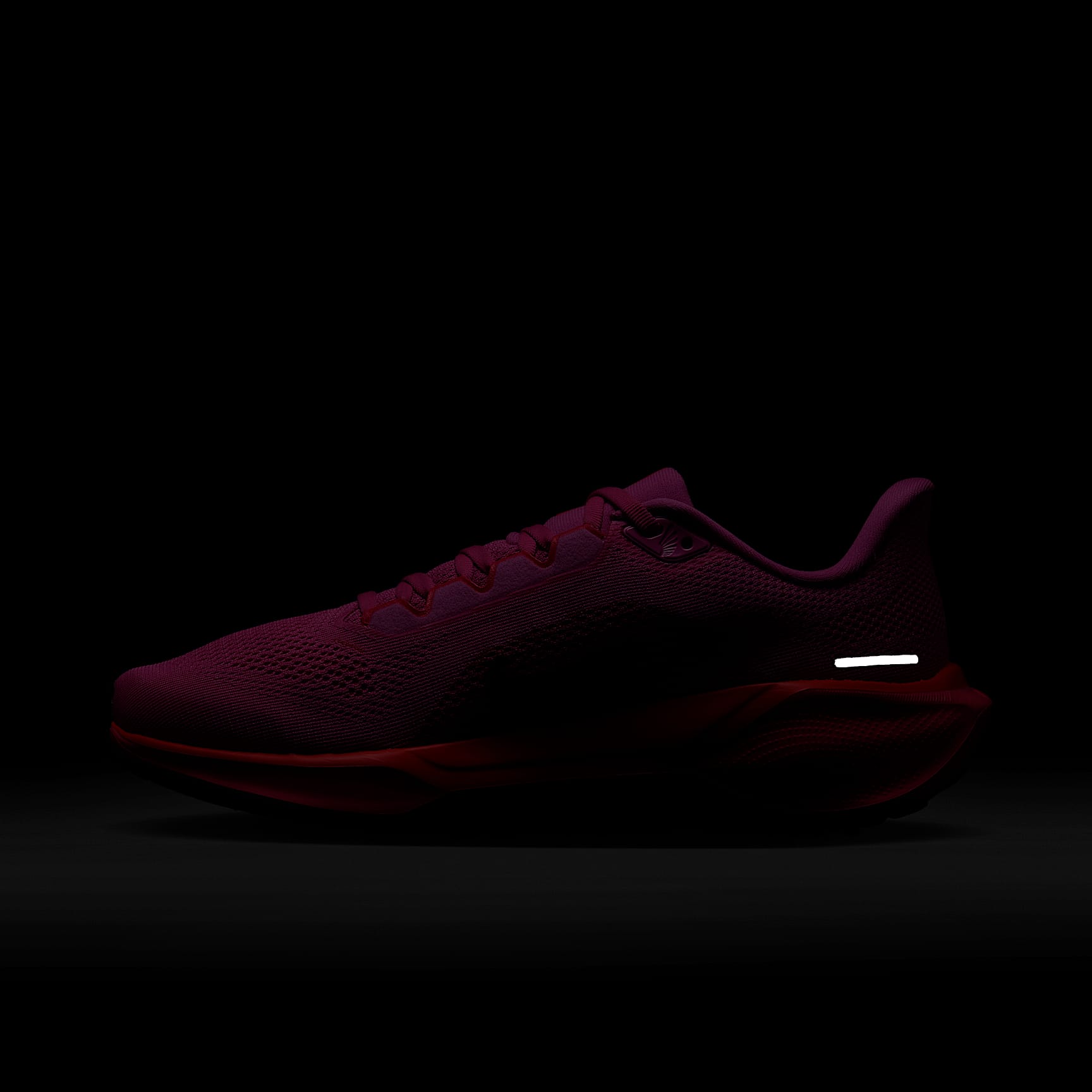 Springy foam plus snappy Air Zoom units equals our most energised ride. Responsive cushioning in the Pegasus provides an energised ride for everyday road running. Experience lighter-weight energy return with dual Air Zoom units and a ReactX foam midsole. Plus, improved engineered mesh on the upper decreases weight and increases breathability. Responsive Ride ReactX foam midsole surrounds forefoot and heel Air Zoom units for an energised ride. It's 13% more responsive than previous React technology. Waffle-inspired traction The signature Waffle-inspired rubber outsole provides traction and flexibility. Plush padding A plush collar, tongue and sockliner provide a secure and comfortable fit. What's new? * A ReactX foam midsole * A lighter, more breathable engineered mesh upper Product details * Weight: approx. 251g (women's size 5.5) * Heel-to-toe drop: 10mm * MR-10 last—our best, most consistent fit (same as Pegasus 40) * Reflective design details * Not intended for use as personal protective equipment (PPE)