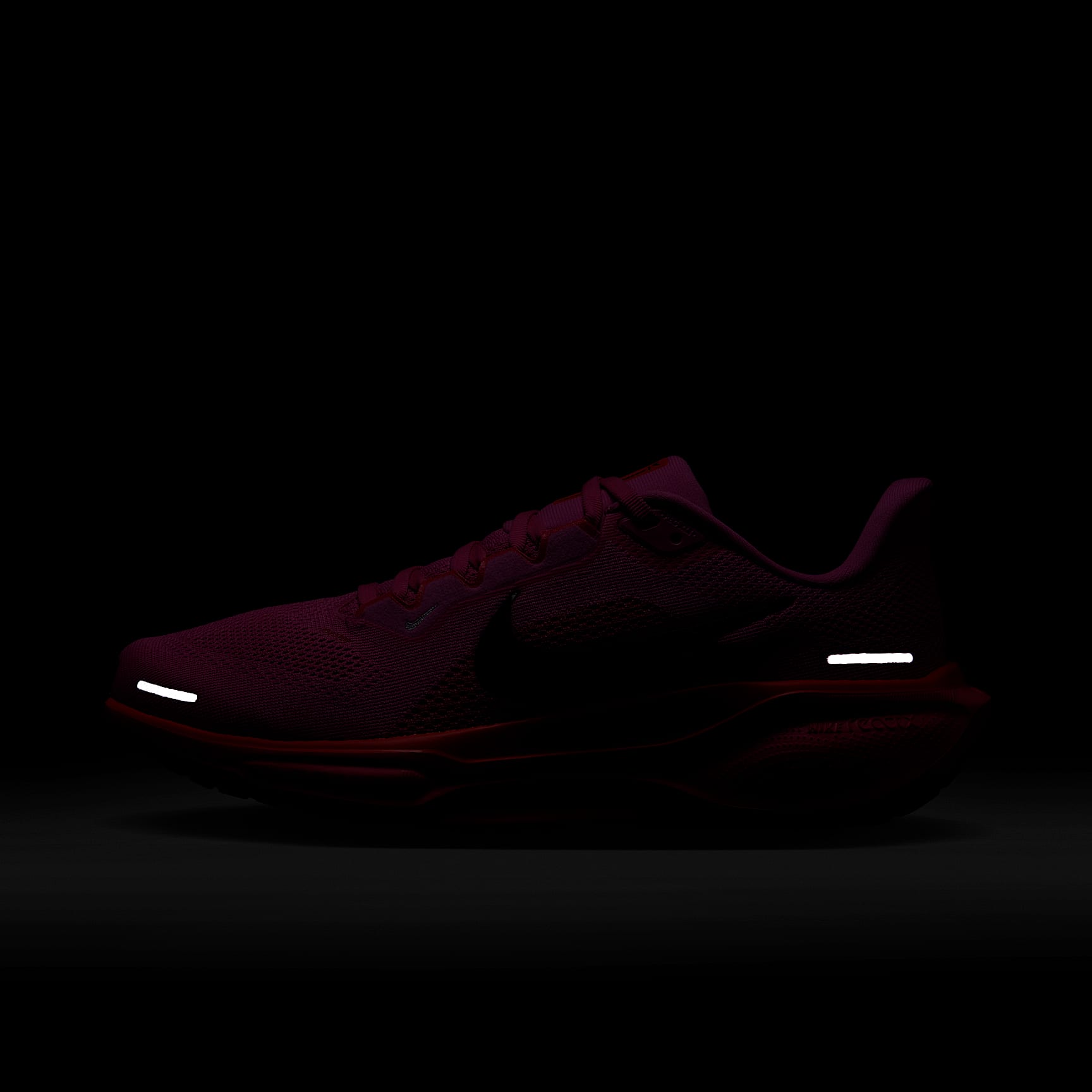 Springy foam plus snappy Air Zoom units equals our most energised ride. Responsive cushioning in the Pegasus provides an energised ride for everyday road running. Experience lighter-weight energy return with dual Air Zoom units and a ReactX foam midsole. Plus, improved engineered mesh on the upper decreases weight and increases breathability. Responsive Ride ReactX foam midsole surrounds forefoot and heel Air Zoom units for an energised ride. It's 13% more responsive than previous React technology. Waffle-inspired traction The signature Waffle-inspired rubber outsole provides traction and flexibility. Plush padding A plush collar, tongue and sockliner provide a secure and comfortable fit. What's new? * A ReactX foam midsole * A lighter, more breathable engineered mesh upper Product details * Weight: approx. 251g (women's size 5.5) * Heel-to-toe drop: 10mm * MR-10 last—our best, most consistent fit (same as Pegasus 40) * Reflective design details * Not intended for use as personal protective equipment (PPE)