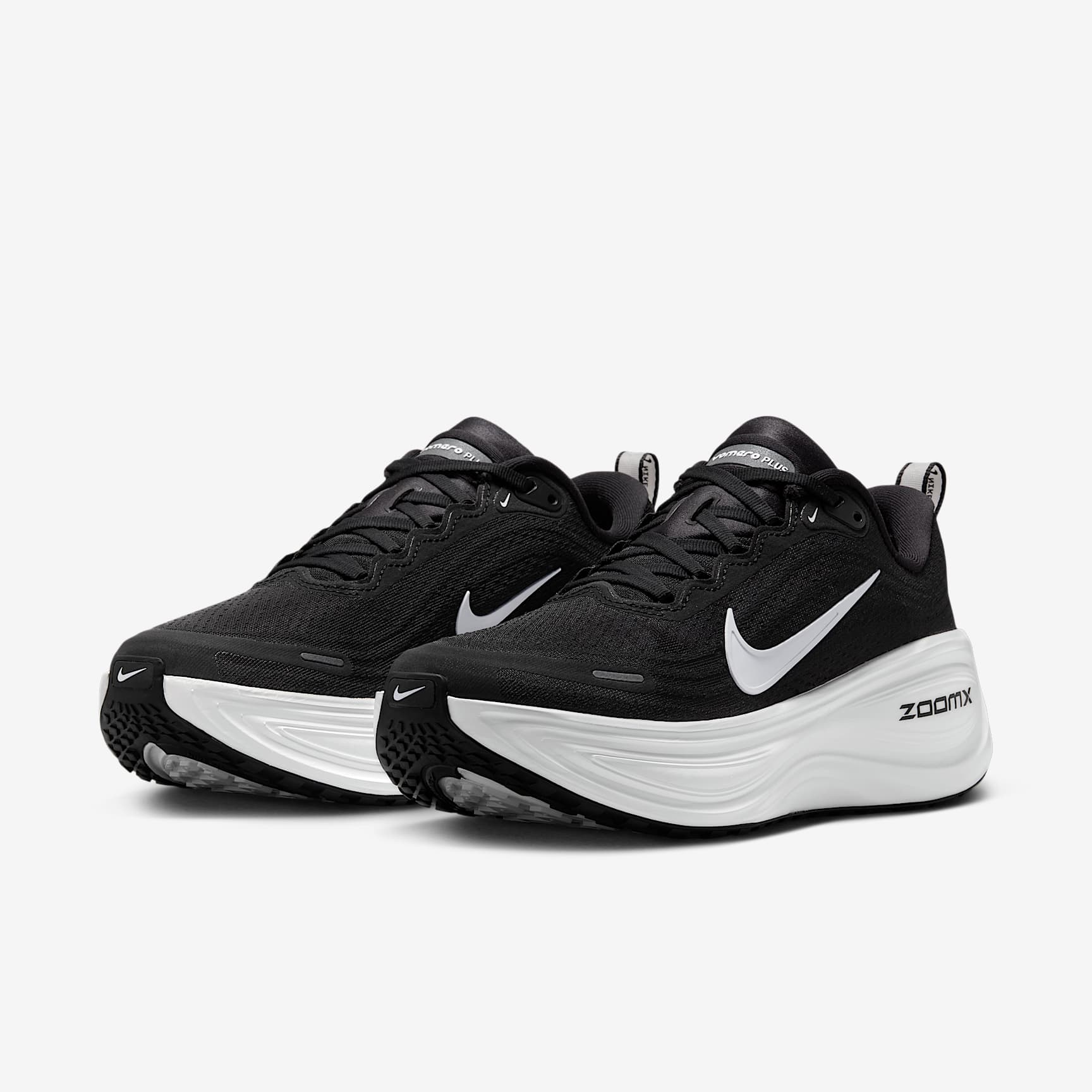 A tall stack of responsive, light foam offers next-level cushioning. Take maximum cushioning to the next level with the Vomero Plus. It provides an ultra-comfortable ride for everyday runs thanks to a mountainous stack of full-length ZoomX foam, the most responsive foam in the industry. Plus, the engineered mesh upper is made from soft, breathable yarn for a comfortable fit. ZoomX foam midsole The ultra-responsive ZoomX foam midsole delivers Nike's highest energy return. Soft upper An engineered mesh upper provides soft breathability. Durable Traction The high-abrasion rubber outsole offers durable traction. Product Details * Weight: Approx. 242g/8.5 oz (Women's US 8) * Heel-to-toe drop: 10mm * Webbed lace loops for an adjustable fit * Reflective design details * Not intended for use as personal protective equipment (PPE)