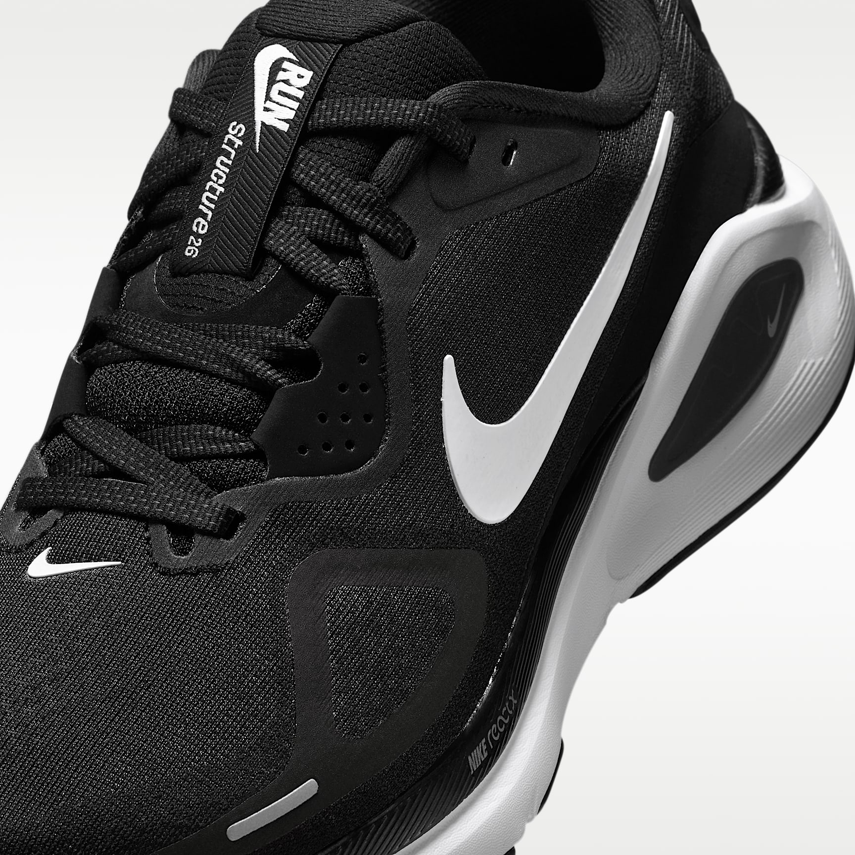 Full-length foam plus arch support equals our most steady ride. The supportive cushioning in the Structure 26 provides steadiness for everyday runs. A full-length ReactX midsole delivers a cushioned yet stable transition from heel to toe-off. Plus, a tried-and-tested midfoot support system wraps around your arch and heel to provide a firm platform. Plush upper The plush collar and tongue, along with the engineered mesh upper, provide comfort, support and an improved fit. Midfoot support Our midfoot support system helps to slow the rate of ankle eversion and provides a stable platform for transition and toe-off. ReactX foam The full-length ReactX midsole delivers cushion, comfort and increased energy return. It's 13% more responsive than previous React technology. What's new? * With ReactX foam underfoot and a higher stack height for stability and support * Lighter, more flexible rubber in the forefoot of the outsole for cushioning * High-abrasion rubber in the heel for increased durability Product Details * Weight: 262g approx. (women's size 6) * Heel-to-toe drop: 10mm * Reflective design details * Not intended for use as Personal Protective Equipment (PPE)