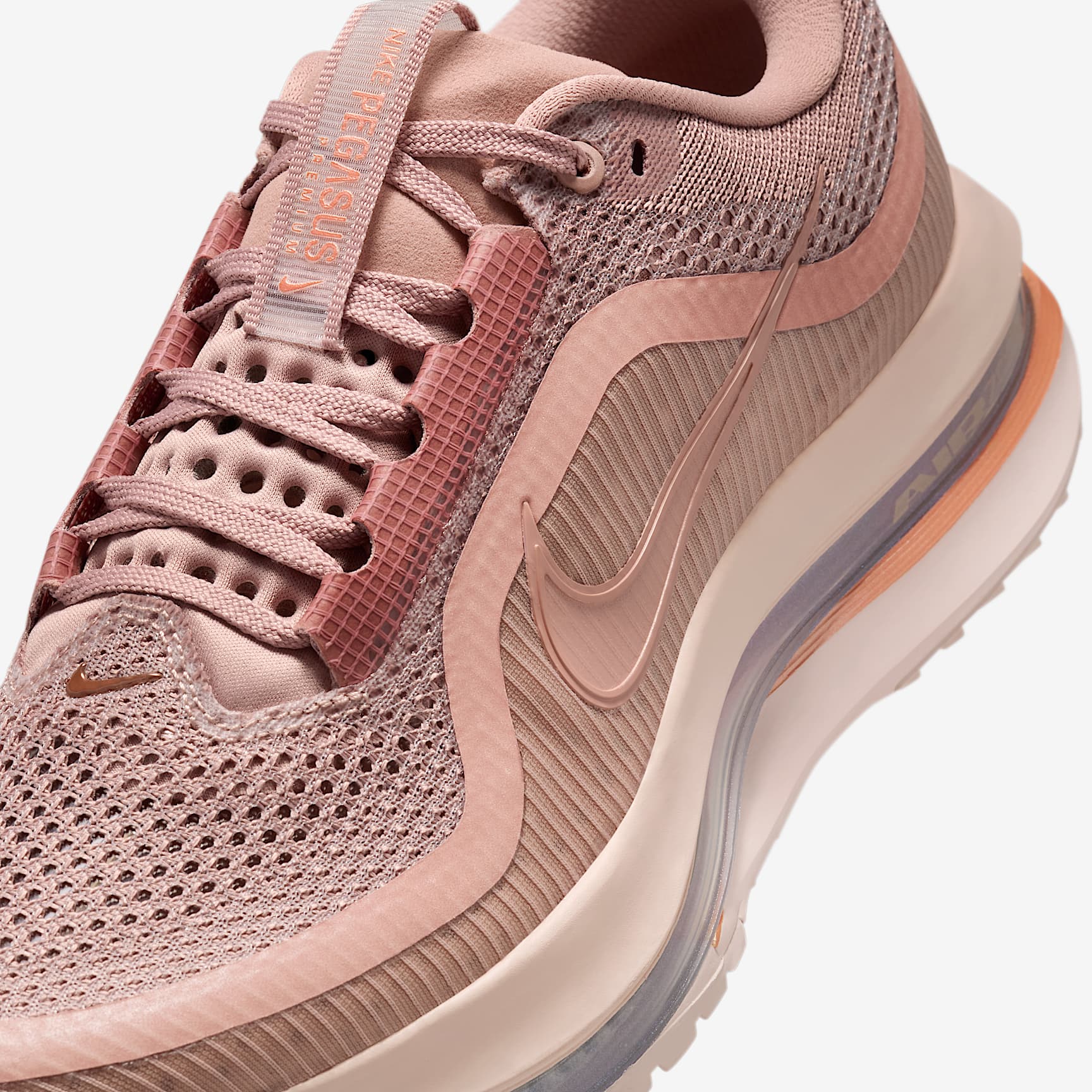 The Pegasus Premium supercharges responsive cushioning with a triple stack of our most powerful running technologies: ZoomX foam, a sculpted Air Zoom unit and ReactX foam. It’s the most responsive Pegasus ever, providing high energy return unlike any other. With a lighter-than-air upper, it decreases weight and increases breathability so you can fly faster. Engineered Mesh on Upper Breathable, lightweight engineered mesh helps keep you contained. ZoomX Foam Your foot sits on top of full-length ZoomX foam, Nike’s most responsive foam. It delivers incredible energy return with each stride. Full-Length Air Zoom Cushioning The full-length Air Zoom unit offers our optimal level of springiness underfoot, unlocking a level of speed and responsiveness that’ll put pep in your miles. ReactX Foam Foundation ReactX foam, 13% more responsive than previous React technology, sits at the bottom of the ZoomX foam and Air Zoom cushioning. It offers a smooth and balanced ride. Modified Waffle Outsole Modified waffle outsole has high-abrasion rubber to provide traction. Product Details * Weight: Approx. 275g/9.7oz (Women's US 8) * Heel-to-toe drop: 10mm * Not intended for use as Personal Protective Equipment (PPE)