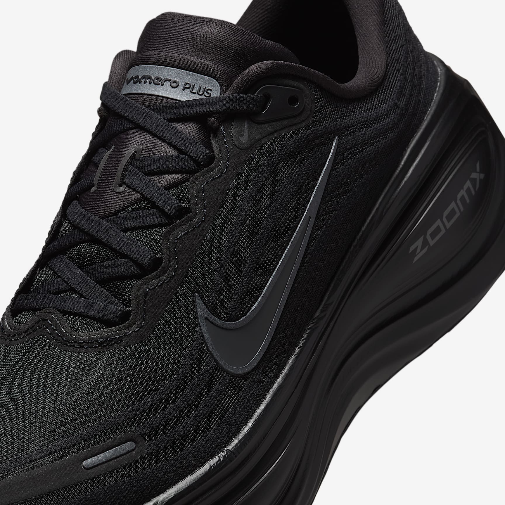 A tall stack of responsive, light foam offers next-level cushioning. Take maximum cushioning to the next level with the Vomero Plus. It provides an ultra-comfortable ride for everyday runs thanks to a mountainous stack of full-length ZoomX foam, the most responsive foam in the industry. Plus, the engineered mesh upper is made from soft, breathable yarn for a comfortable fit. ZoomX foam midsole The ultra-responsive ZoomX foam midsole delivers Nike's highest energy return. Soft upper An engineered mesh upper provides soft breathability. Durable Traction The high-abrasion rubber outsole offers durable traction. Product Details * Weight: 292g approx. (men's size 9) * Heel-to-toe drop: 10mm * Webbed lace loops for an adjustable fit * Reflective design details * Not intended for use as personal protective equipment (PPE)