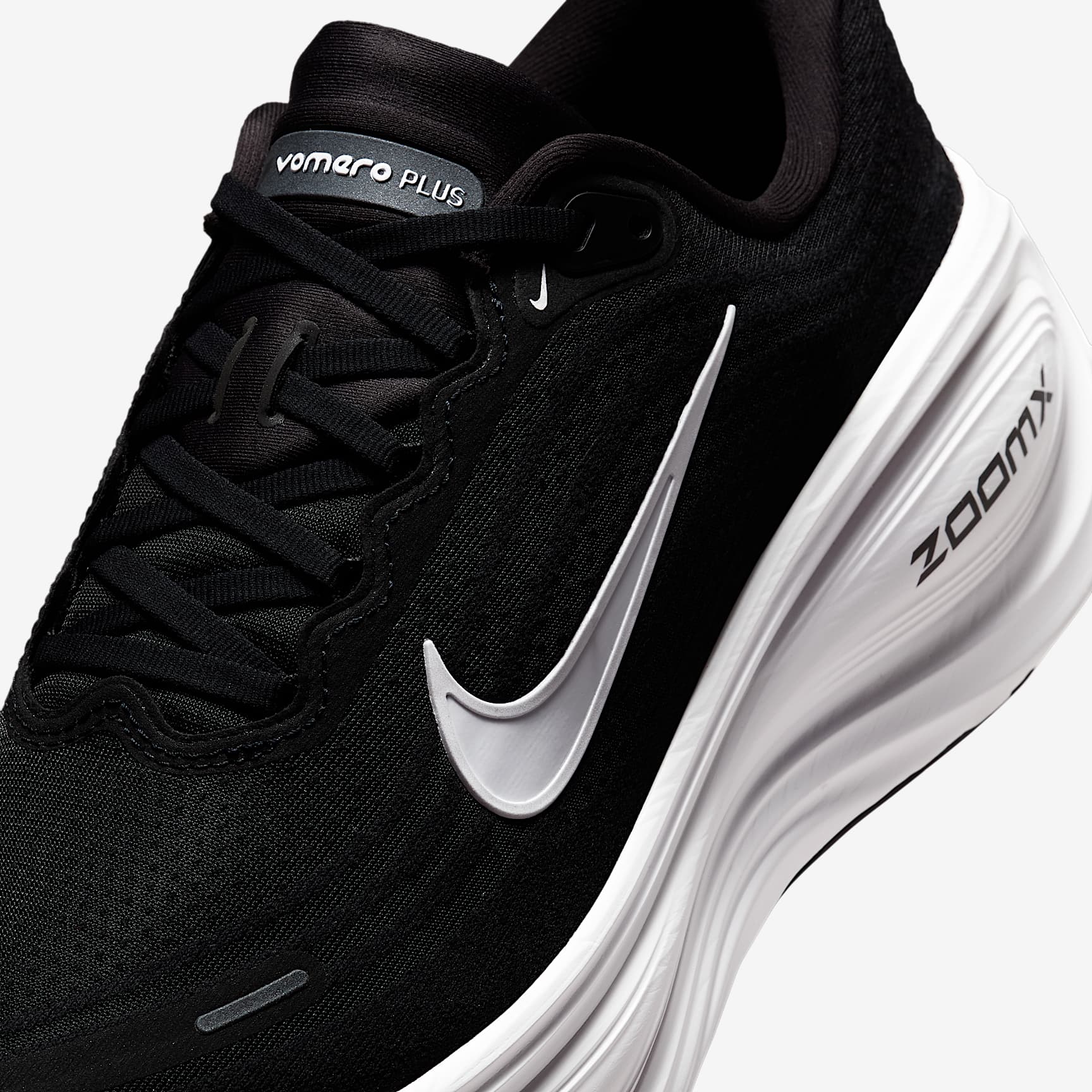 A tall stack of responsive, light foam offers next-level cushioning. Take maximum cushioning to the next level with the Vomero Plus. It provides an ultra-comfortable ride for everyday runs thanks to a mountainous stack of full-length ZoomX foam, the most responsive foam in the industry. Plus, the engineered mesh upper is made from soft, breathable yarn for a comfortable fit. ZoomX foam midsole The ultra-responsive ZoomX foam midsole delivers Nike's highest energy return. Soft upper An engineered mesh upper provides soft breathability. Durable traction The high-abrasion rubber outsole offers durable traction. Product details * Weight: approx. 273g (Men's size 9) * Heel-to-toe drop: 10mm * Webbed lace loops for an adjustable fit * Reflective design details * Not intended for use as personal protective equipment (PPE)