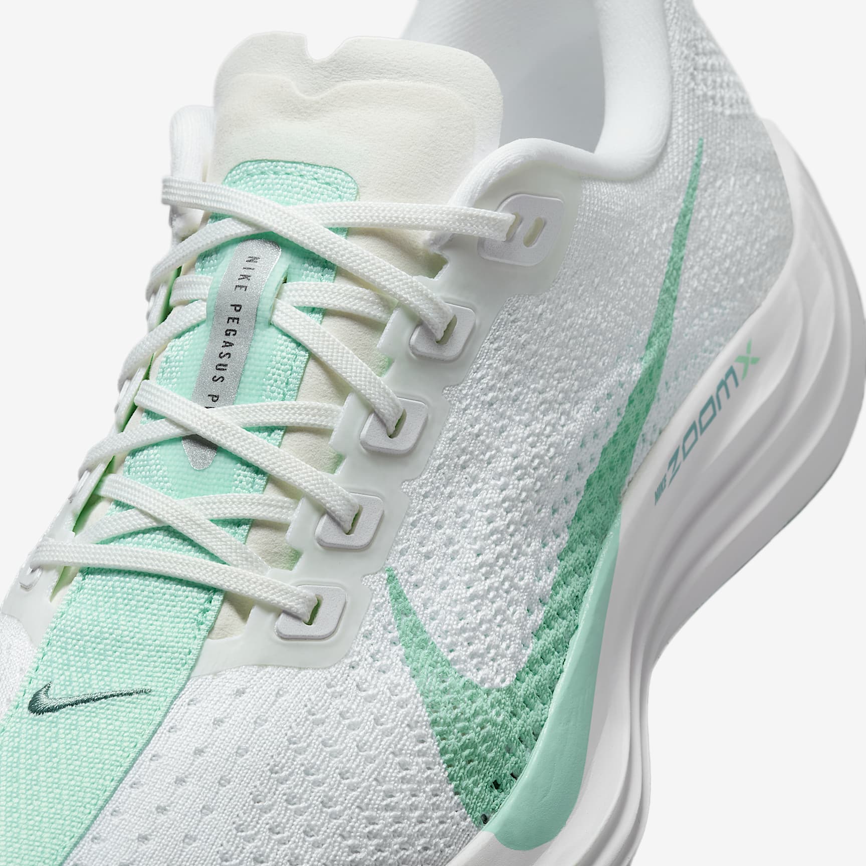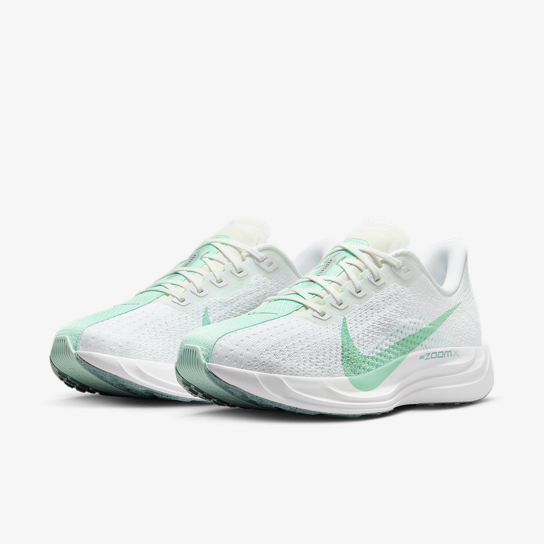 Ultra-responsive, light foam offers next-level energy return. Take responsive cushioning to the next level with the Pegasus Plus. It energizes your ride with full-length, superlight ZoomX foam to give you a high level of energy return for everyday runs. And a stretchy Flyknit upper conforms to your foot for a seamless fit. Flyknit Upper The Flyknit upper has perforations to help reduce the weight of the shoe and make it more breathable. ZoomX Midsole Ultra-responsive ZoomX foam midsole delivers Nike's highest energy return. Reliable Traction High-abrasion rubber on outsole provides traction. Product Details * Weight: Approx. 205g/7.2oz (Women’s US 8) * Heel-to-toe drop: 10mm * Midfoot band for containment * Reflective details * Not intended for use as Personal Protective Equipment (PPE)
