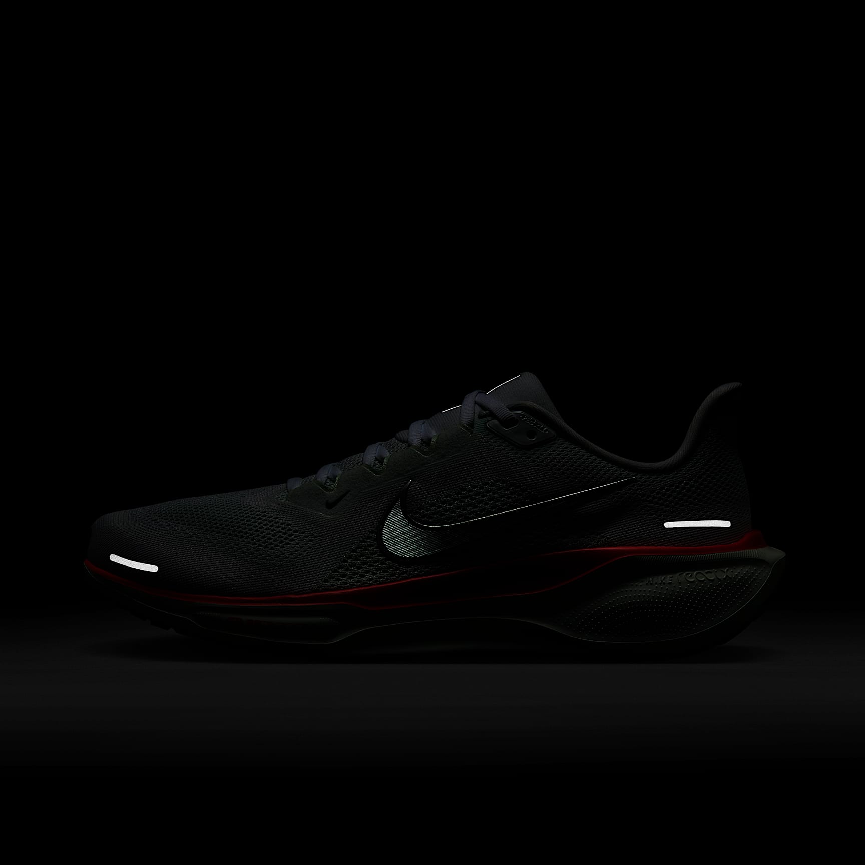 Springy foam plus snappy Air Zoom units equals our most energized ride. Responsive cushioning in the Pegasus provides an energized ride for everyday road running. Experience lighter-weight energy return with dual Air Zoom units and a ReactX foam midsole. Plus, improved engineered mesh on the upper decreases weight and increases breathability. Responsive Ride ReactX foam midsole surrounds forefoot and heel Air Zoom units for an energized ride. It's 13% more responsive than previous React technology. Waffle-Inspired Traction Signature waffle-inspired rubber outsole provides traction and flexibility. Plush Padding Plush collar, tongue and sockliner provide a secure and comfortable fit. What's New? * ReactX foam midsole * Lighter, more breathable engineered mesh upper Product Details * Weight: Approx. 297g/10.5oz (Men's US 10) * Heel-to-toe drop: 10mm * MR-10 Last - Our best, most consistent fit (same as Pegasus 40) * Reflective details * Not intended for use as Personal Protective Equipment (PPE)