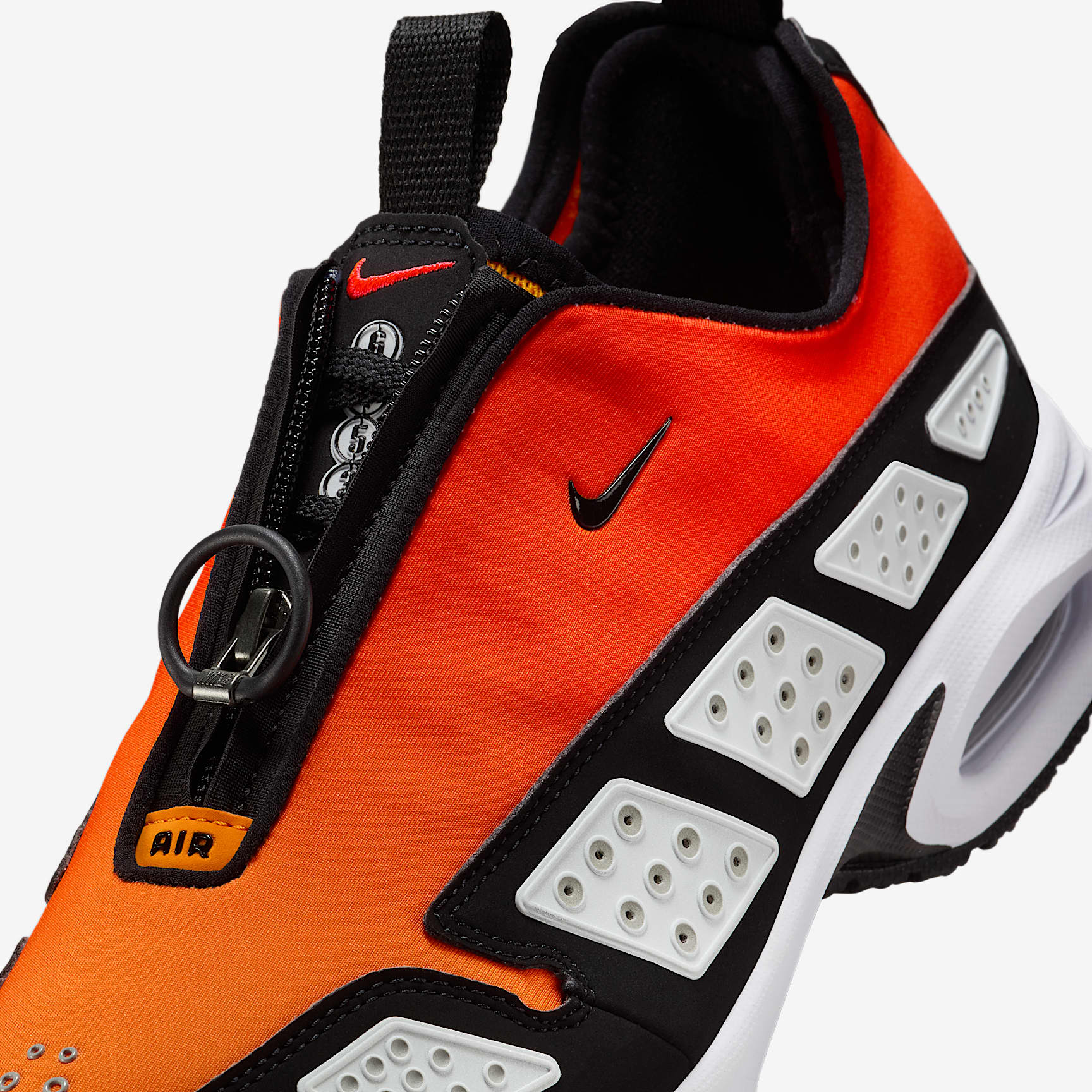 Ahead of its time in '99, the innovative Air Max SNDR is back and louder than ever. From the secure fit around the heel to the zip-up shroud, this legendary sneaker continues to break the mold. Unzip the shroud to reveal "6453," a nod to the last 4 numbers of Nike's office numbers around the world, which spell out N-I-K-E on the keypad. Benefits * Neoprene-like upper feels smooth and stretchy. * Zip-up shroud covers your laces for a sleek look. * Reflective vented panels create a breathable feel. * Max Air cushioning in heel and forefoot add exceptional bounce and comfort. Product Details * Pull tabs * Foam midsole * Rubber outsole * Not intended for use as Personal Protective Equipment (PPE) Max Air Visual stunner. Window to the sole. Legendary designer Tinker Hatfield took cues from inside-out Parisian architecture to reestablish Air technology as a leader in cushioning. Plush and comfortable, Max Air has just the right amount of support.
