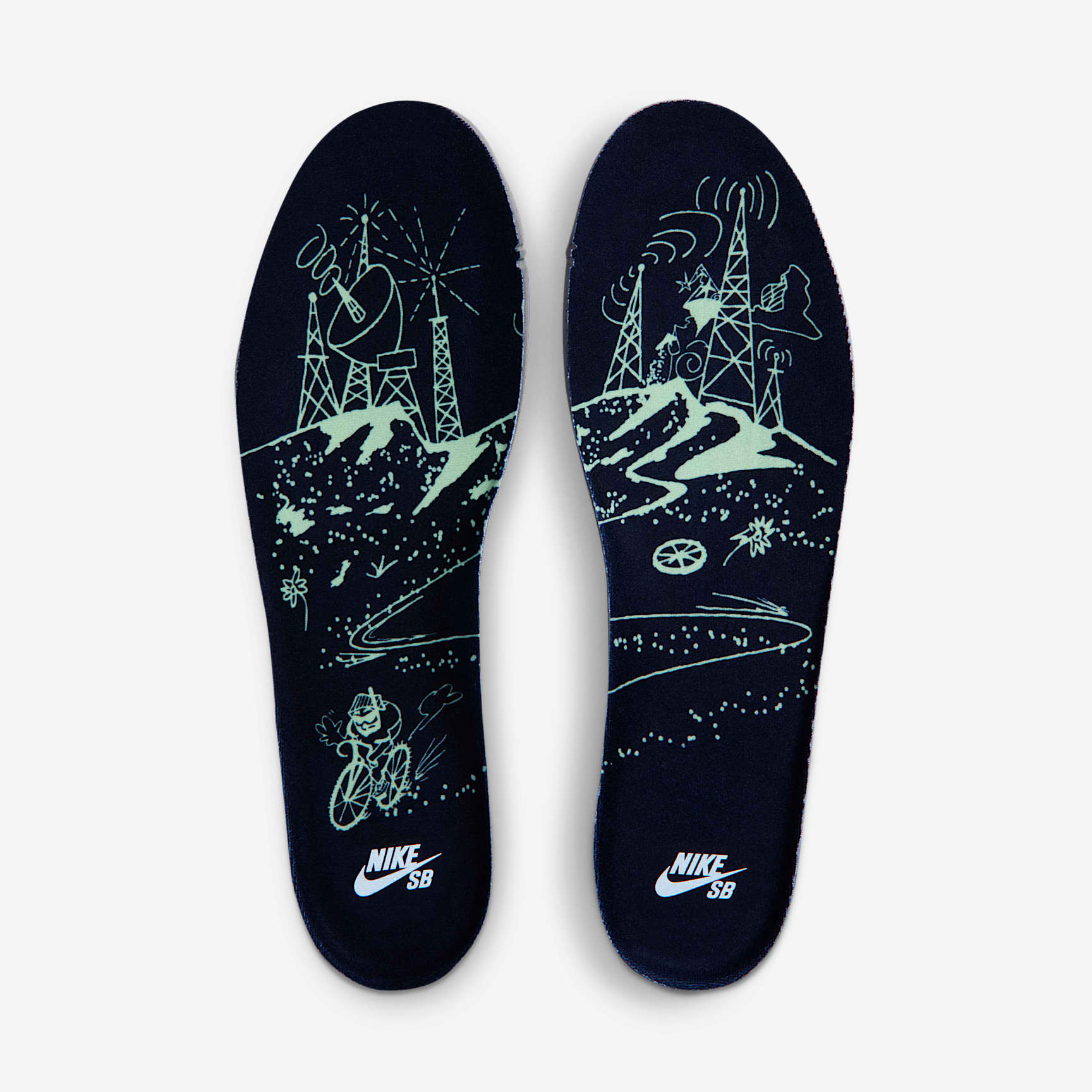 Drawing inspiration from California's Verdugo Mountains, this Nike SB Dunk Low comes crafted for the pedal-pushers and wheel-spinners alike. It celebrates the recreational mountain range that rises east of Los Angeles County's San Fernando Valley and is famous for its hiking and mountain-biking adventures. A padded tongue and low-cut collar provide plush comfort, while the Air Zoom heel unit adds responsive cushioning. Inner tongue labels depict a map and mountain-bike illustration. Custom-graphic insoles feature the satellite dish and communication towers stationed at the top of the Verdugo Mountains. Climb your mountain … then enjoy the ride down. Benefits * The leather and suede upper softens and gains vintage character with wear. * The foam midsole offers lightweight, responsive cushioning. * The rubber outsole with classic pivot circle adds durable traction and heritage style. Product details * Foam midsole * Rubber outsole Nike Dunk Born from a series of mash-ups, hacks and tight deadlines, the Nike Dunk landed on university basketball courts during the '85–'86 season. While the original 'College Colours' designs helped you stay true to your school, the Dunk didn't prove to be popular. But it was this humble sneaker's lack of popularity—and flat, grippy soles—that helped it jump the rails to captivate skateboarders. Decades later, this everyday favourite continues to be snatched up in countless colourways, proving its influence is undeniable.