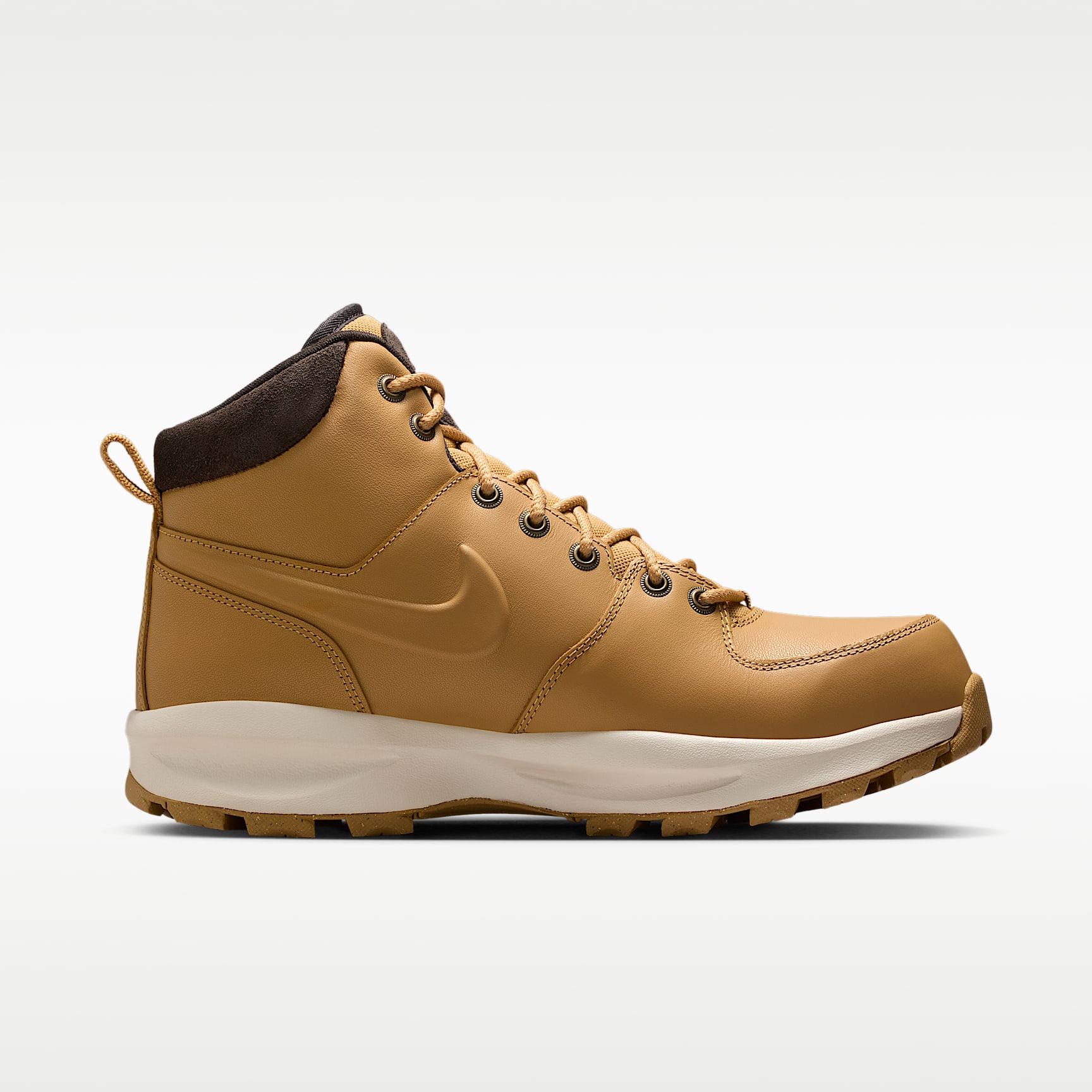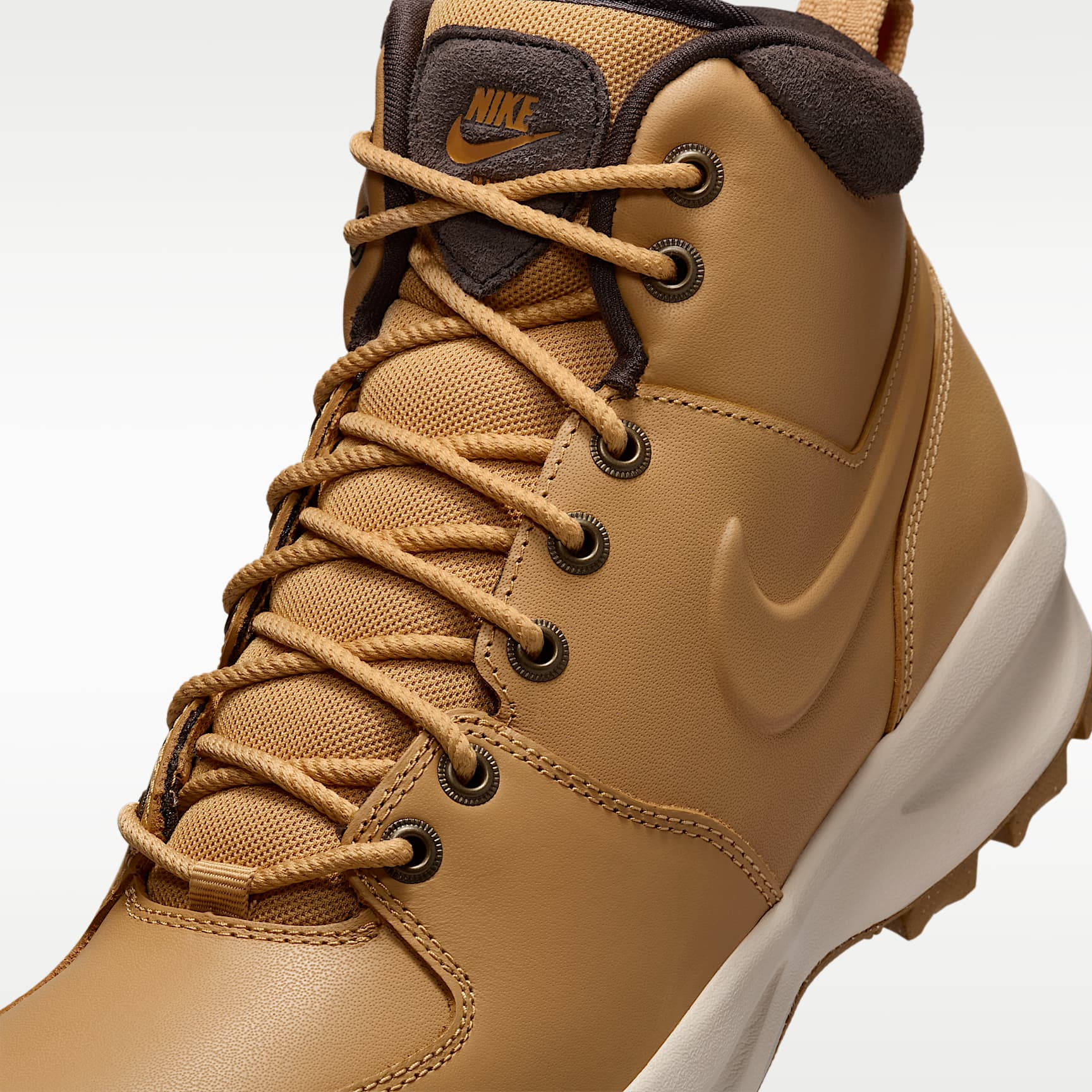 Featuring crisp leather on the upper, a thick padded collar and rugged tread, the Nike Manoa helps keep you warm while still looking sleek. A gusseted tongue is designed to help keep debris out of the boot while letting you mix up how you wear them—laced or unlaced. Benefits * Genuine leather in the upper is durable and is designed to help keep out the cold. * Foam midsole provides lightweight cushioning that lasts. * Rugged rubber outsole with large lugs delivers long-lasting durability and traction. Product Details * Foam midsole * Rubber outsole