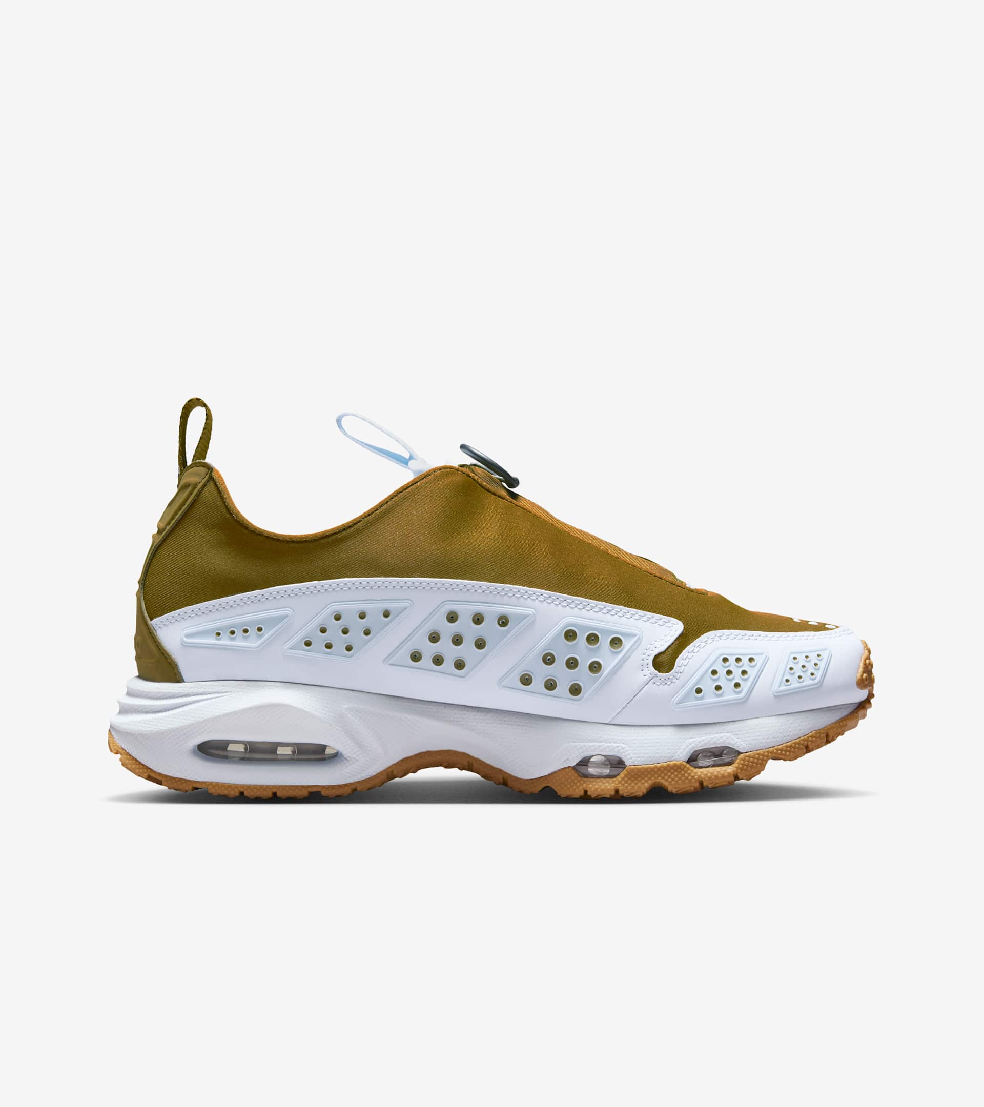 Way ahead of its time in '99, the Air Max SNDR returns. Pushing the boundaries even further into the future, the Olive Flak and Blue Tint design comes equipped with Max Air cushioning in the heel and Nike Air in the forefoot for exceptional bounce and comfort. From its reflective panels to the zip closure, this innovative sneaker continues to break the mould. Unzip the shroud to reveal "6453", a nod to the last 4 digits of Nike's office numbers around the world, which spell out N-I-K-E on the keypad. SKU: FZ2068-301