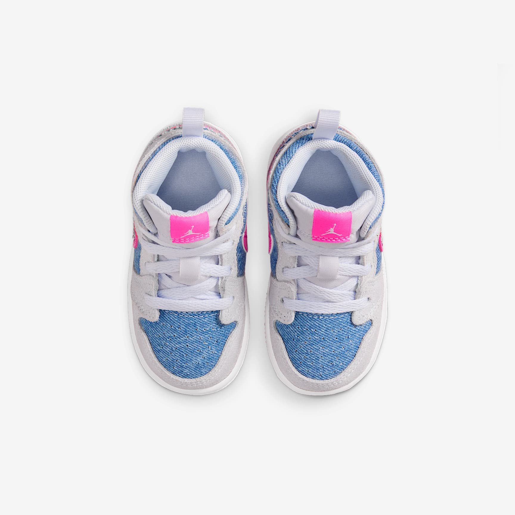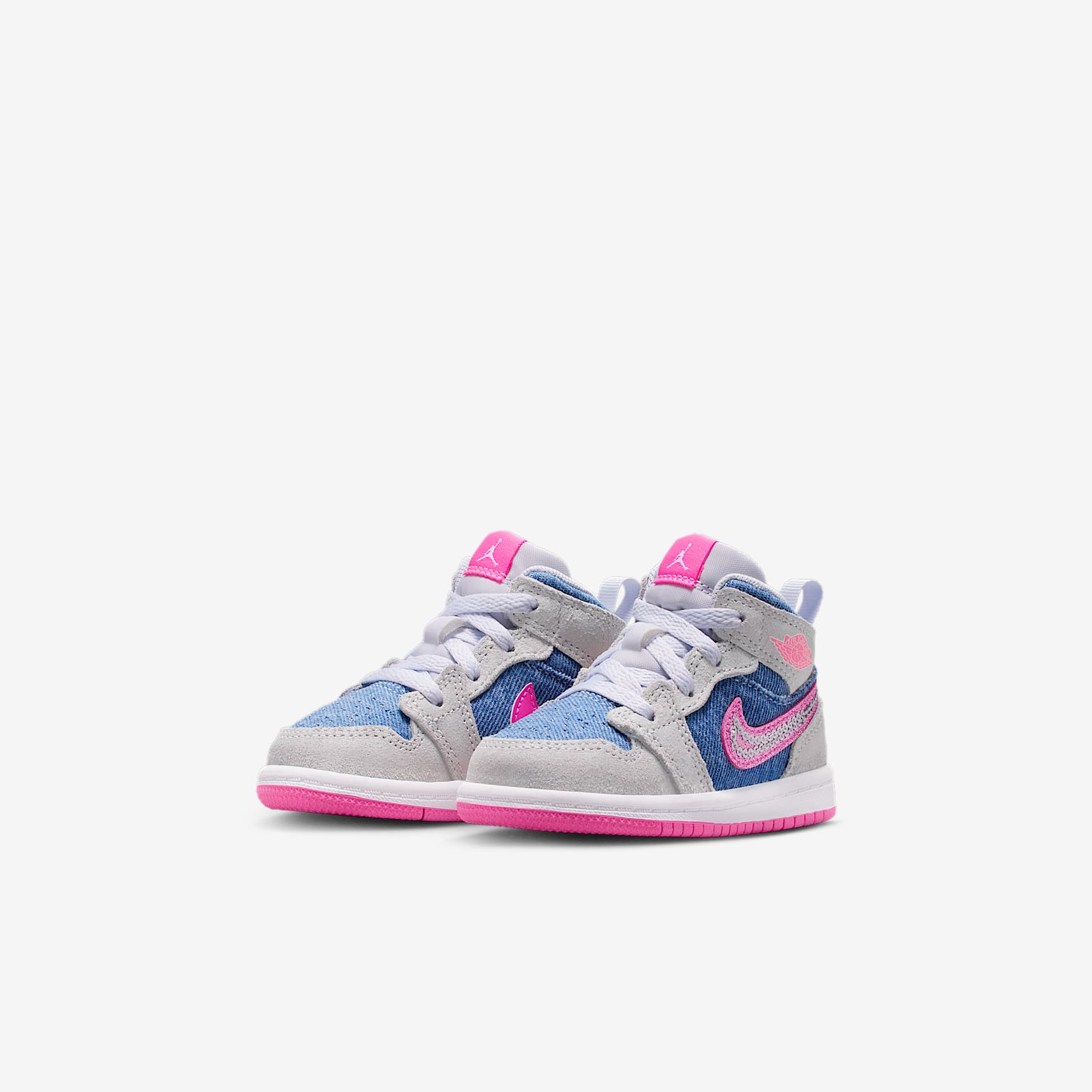 These special-edition Jordans come through with serious sparkle. Soft suede and sturdy denim mix with pops of pink and a sequin Swoosh logo for fun style your little one can wear every day. Benefits * The real and synthetic leather work with denim to provide durability and support. * The soft foam underfoot helps cushion little feet. * The rubber outsole gives kids durable traction. Product details * Classic laces * Pull tab on heel