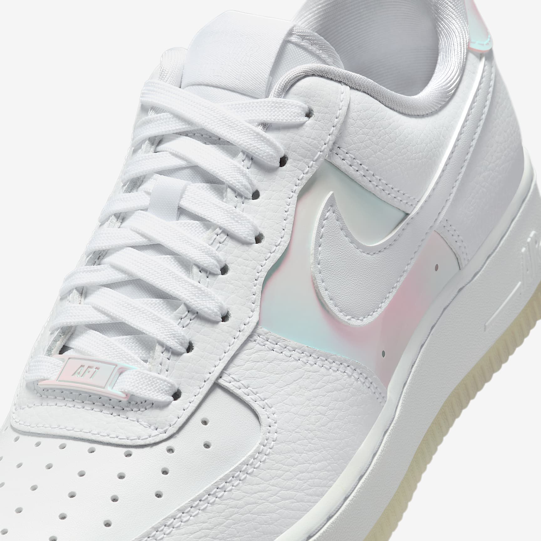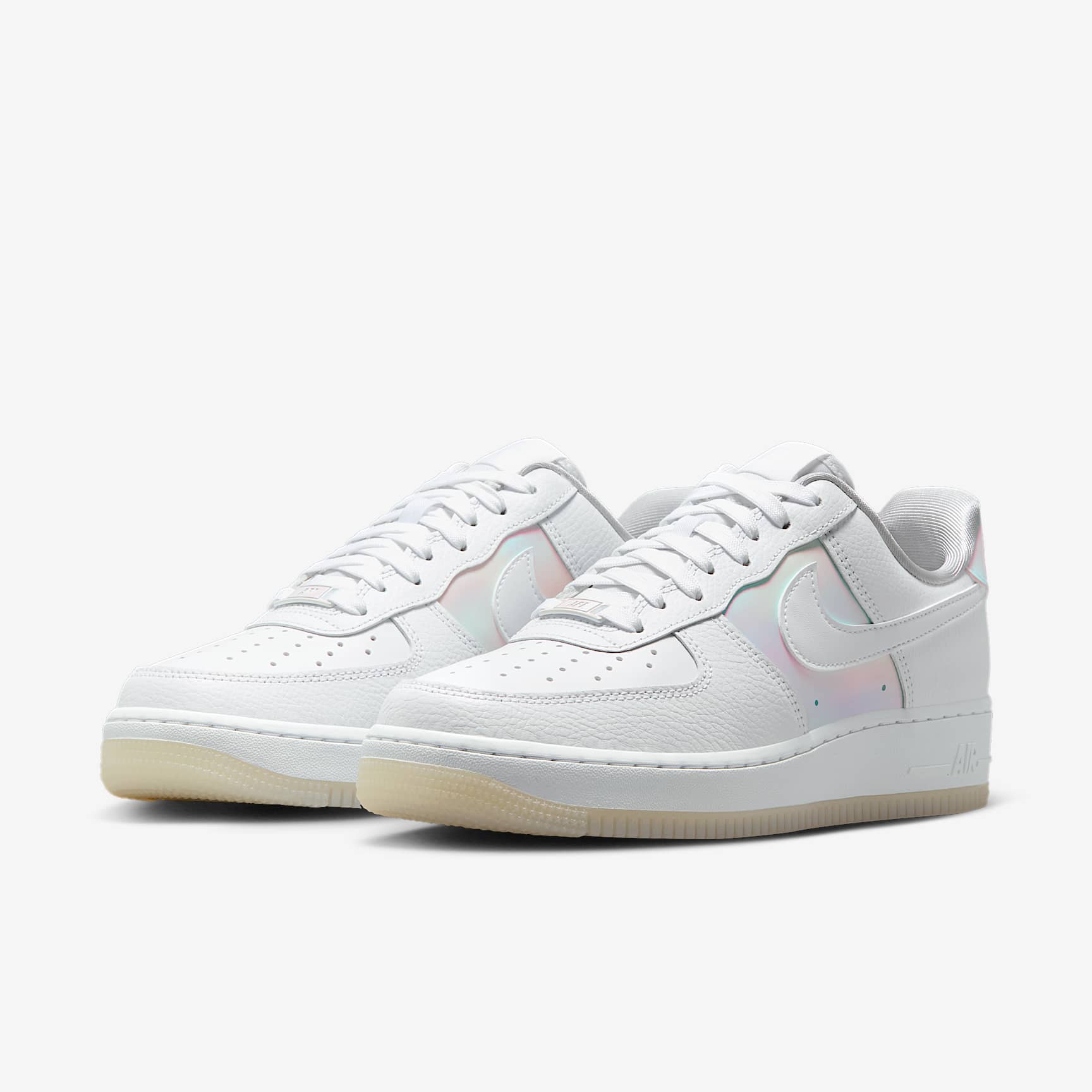 Comfortable, durable and timeless—it's number one for a reason. The Air Force 1 '07 pairs premium leather with pearlised accents and a translucent outsole for a crisp, clean look. Benefits * The leather upper with a perforated toe box is breathable and comfortable. * Nike Air unit provides lightweight cushioning. * The rubber outsole with heritage hoops pivot circles delivers traction and durability. Product details * Padded collar * Foam midsole