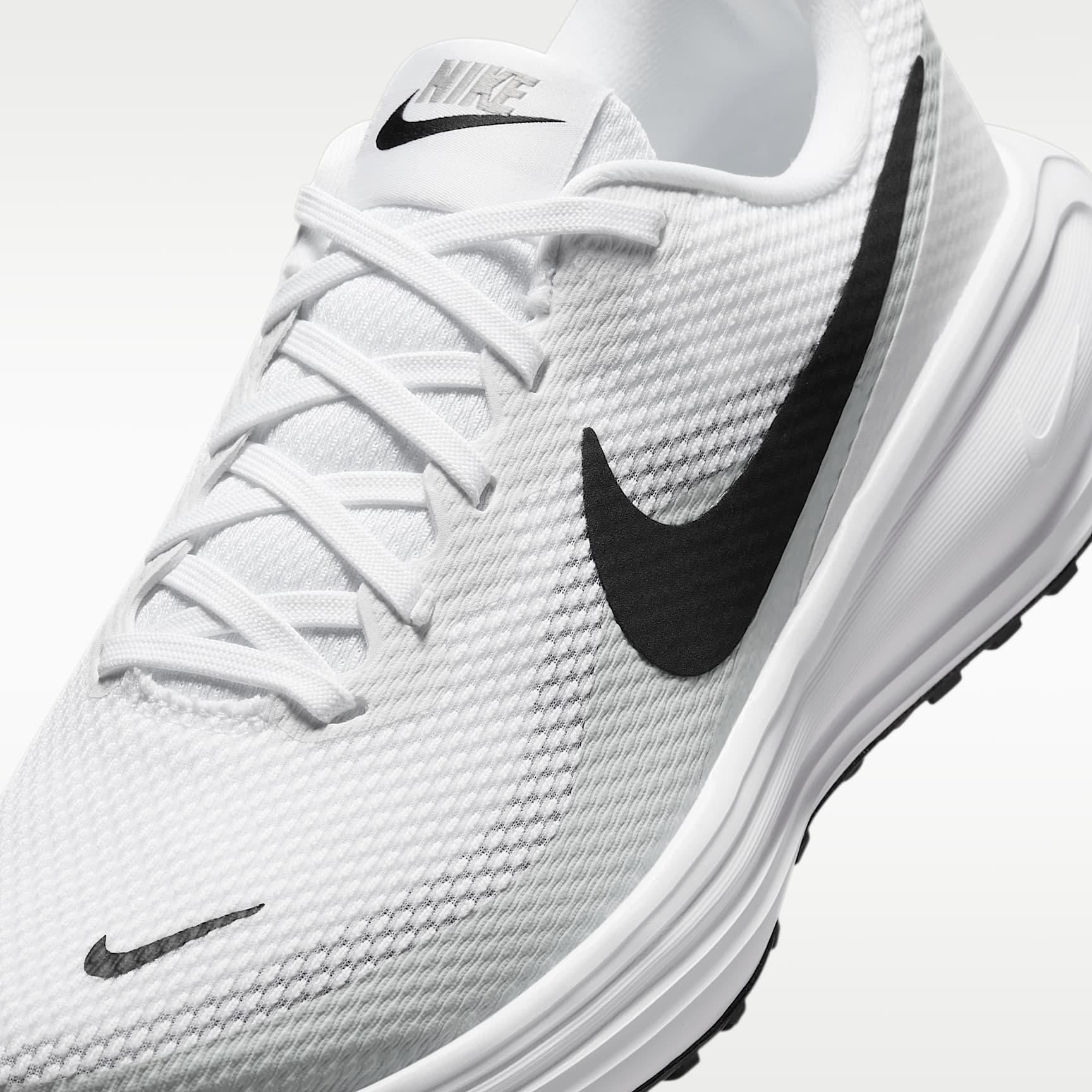 The Revolution 8 is an evolution of your faithful favourite. Every stride is cushioned thanks to a foam midsole and a flexible forefoot that makes your steps soft. Plus, the mesh upper is even more breathable than the previous iteration, so you can run in cool, collected comfort. Mesh upper The mesh upper offers a comfortable, breathable feel. Foam midsole The foam midsole delivers intuitive cushioning through comfort-focused rocker geometry. Cushioned outsole The outsole has an intuitive Nike design and flex grooves in the forefoot that create a comfortable and cushioned effect as you run. Touch points Touch points at the heel and tongue create a natural feel as you get the shoes on and off. What's new? The mesh on the upper is more breathable than the Revolution 7, helping keep you cool. Product details * Weight: 236g (approx.) (women's size 6) * Heel-to-toe drop: 10mm